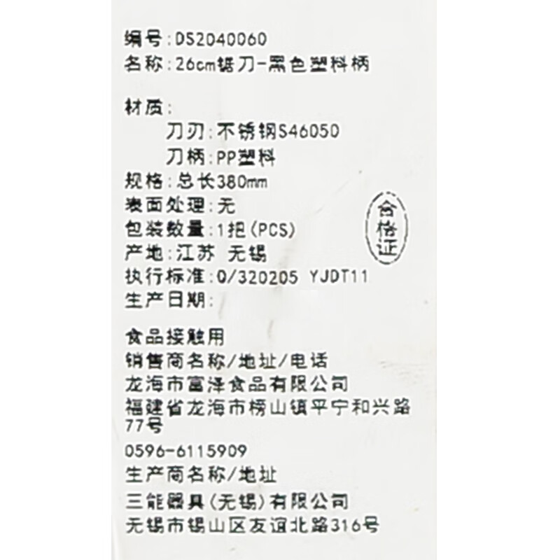 富泽-26cm锯刀-黑色塑料柄