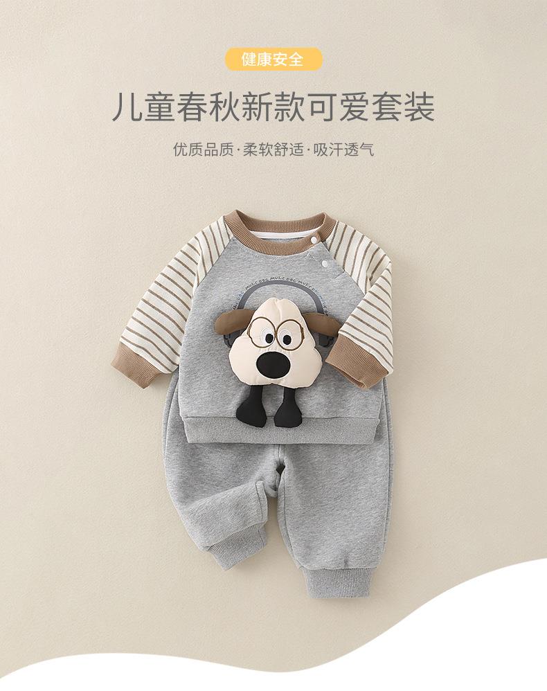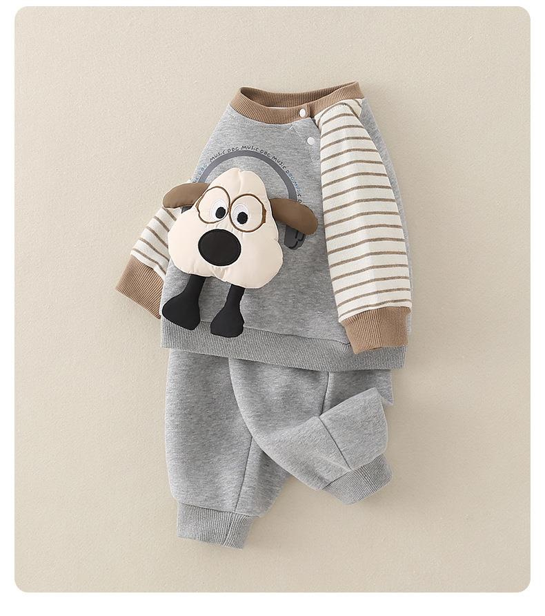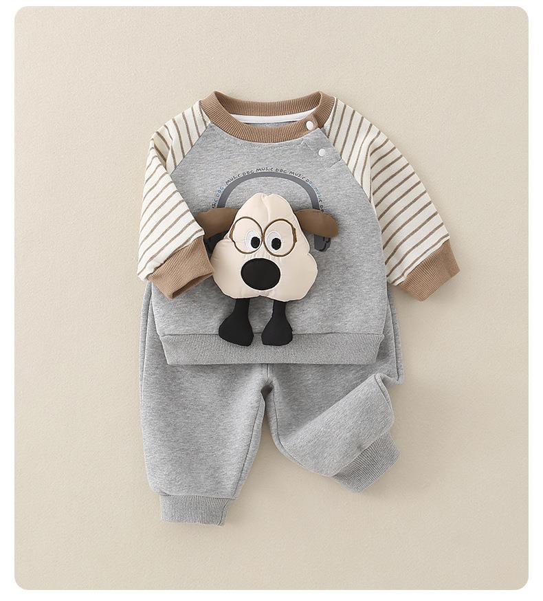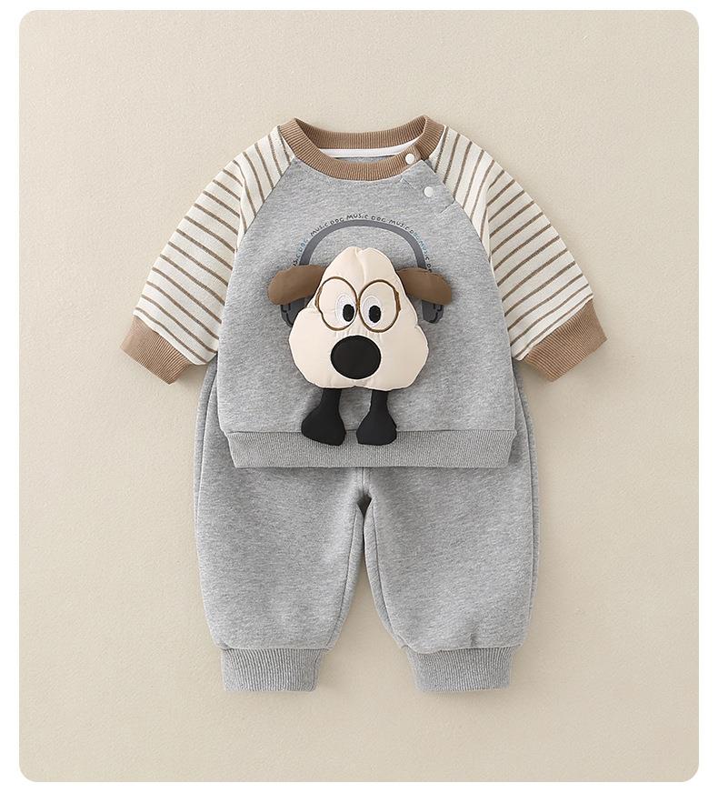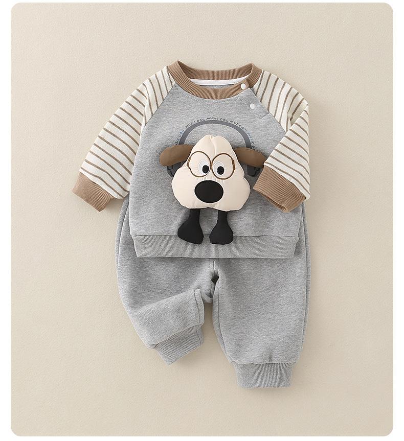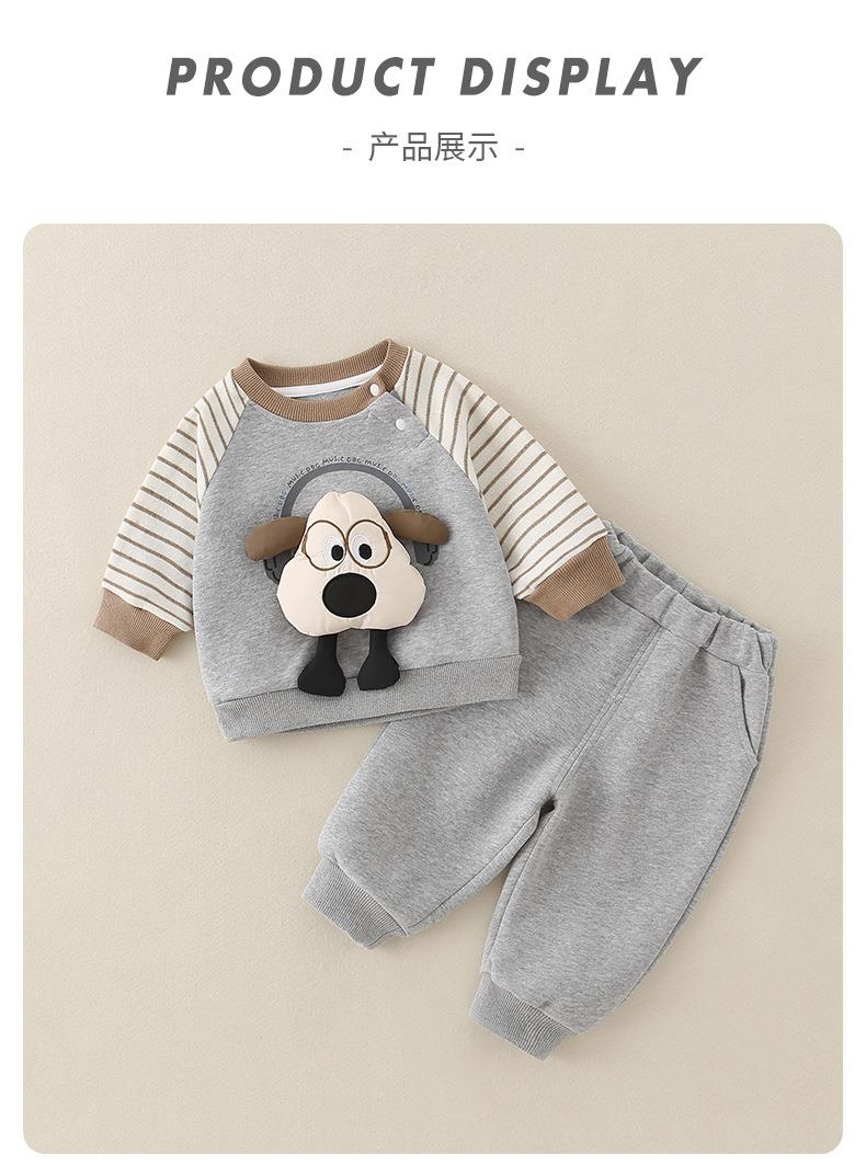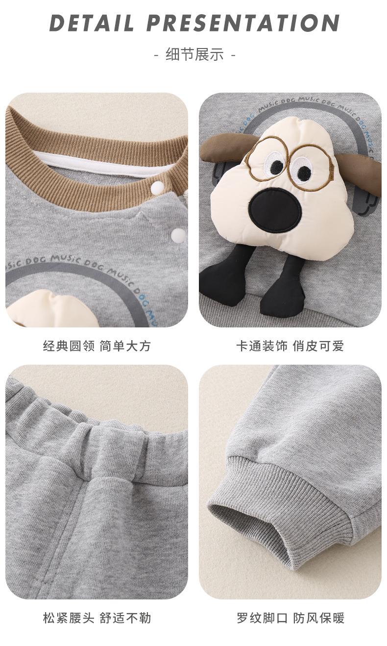 秋冬新款宝宝加绒卫衣套装男童儿童婴儿童装秋季衣服分体两件套男