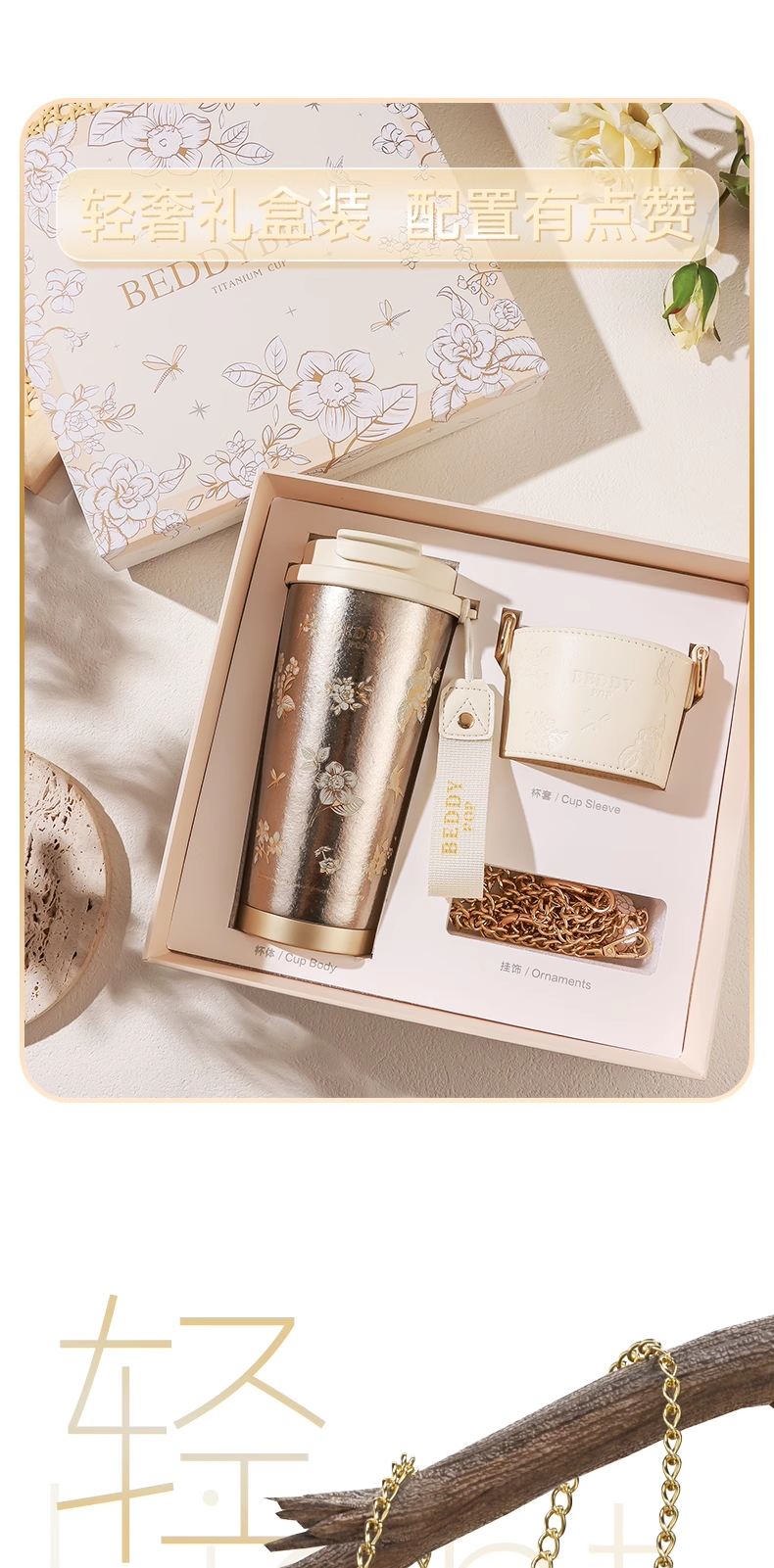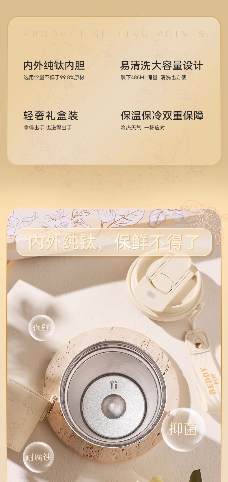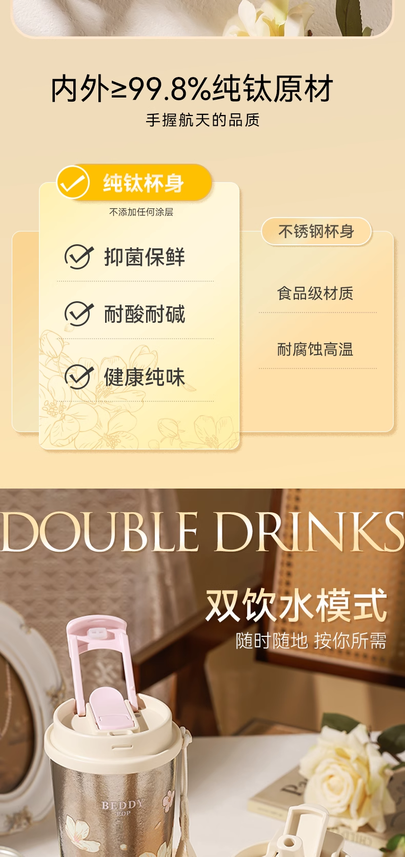 杯具熊纯钛保温杯 高颜值礼盒双饮咖啡杯钛杯新款水杯