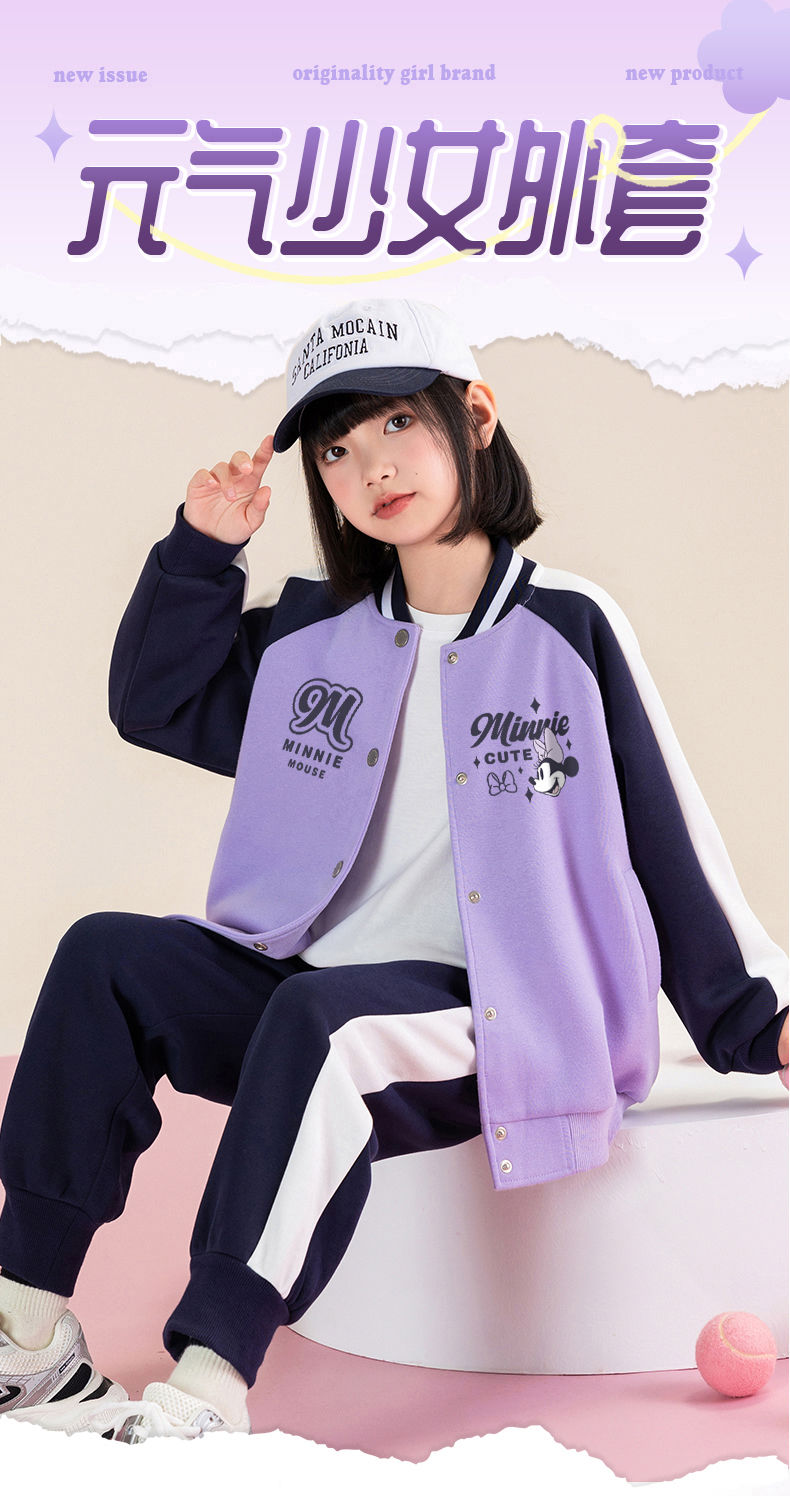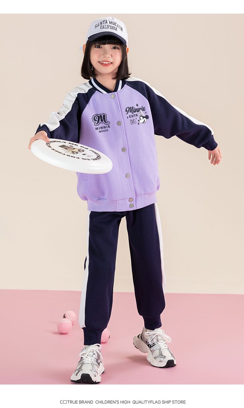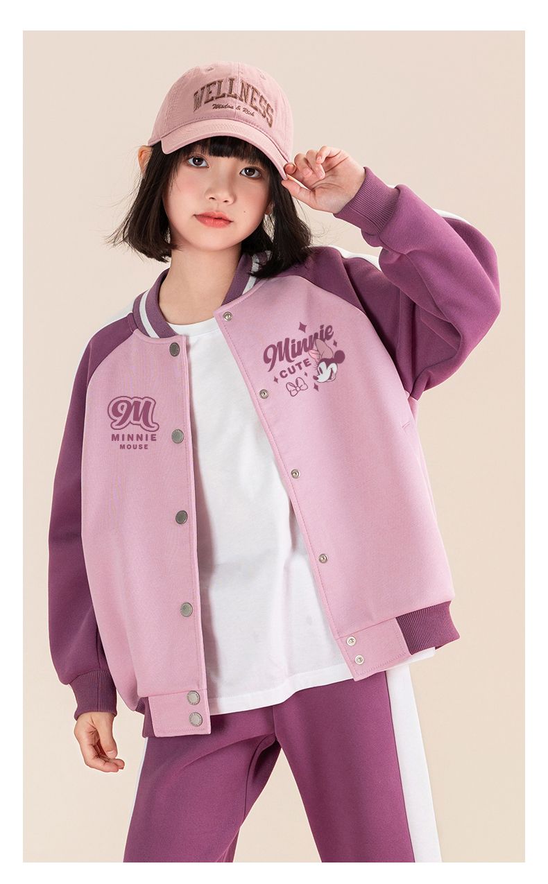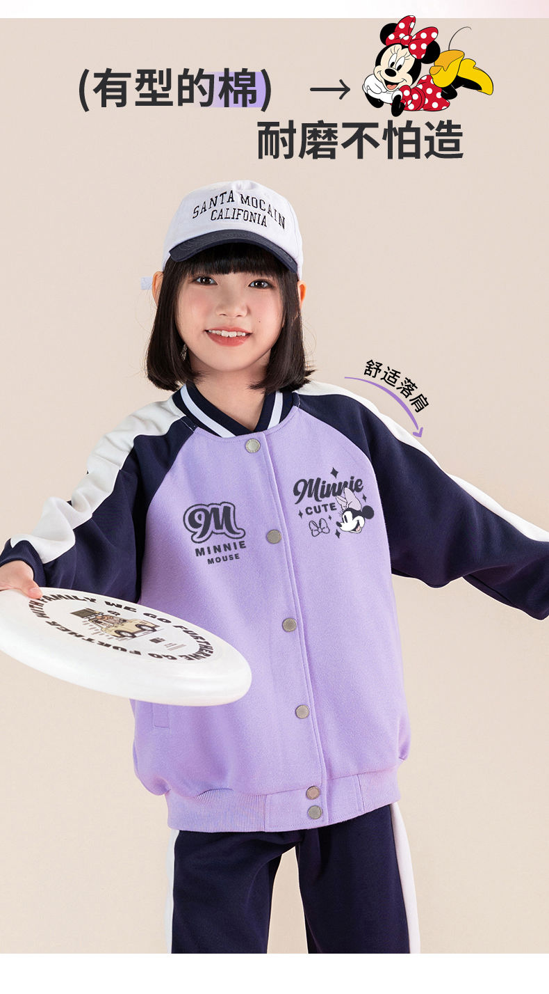 迪士尼女童棒球服外套春秋薄款儿童春季上衣女大童春装洋气运动服