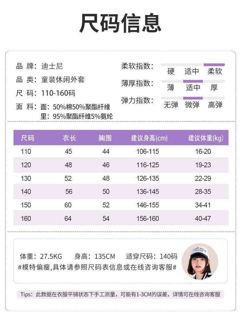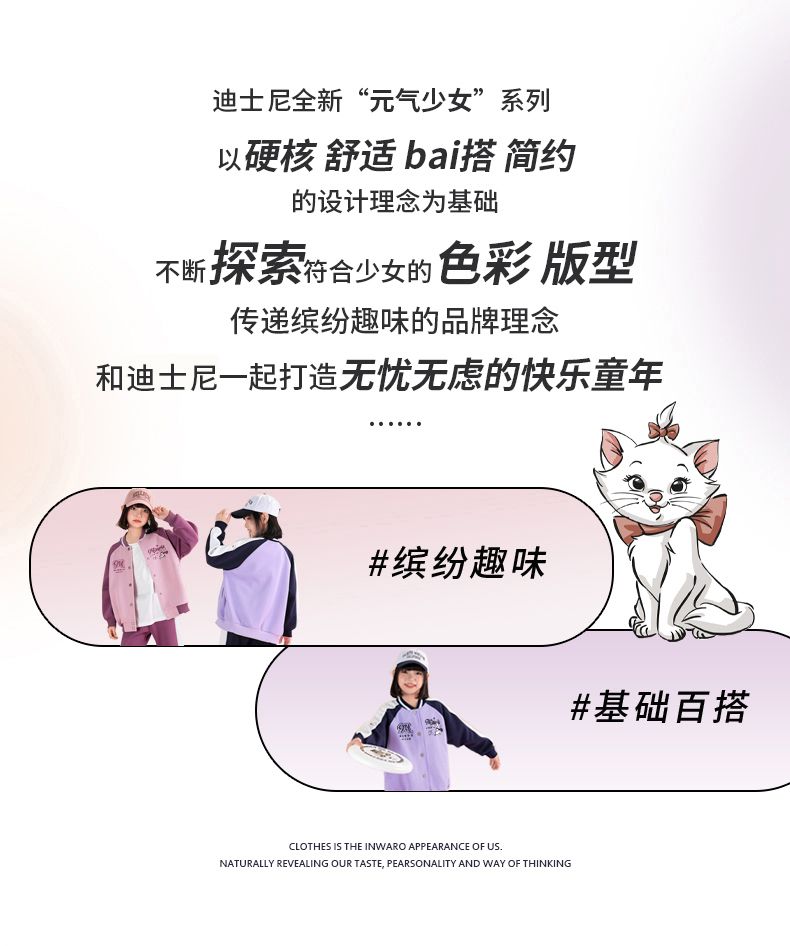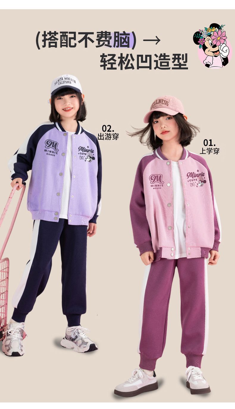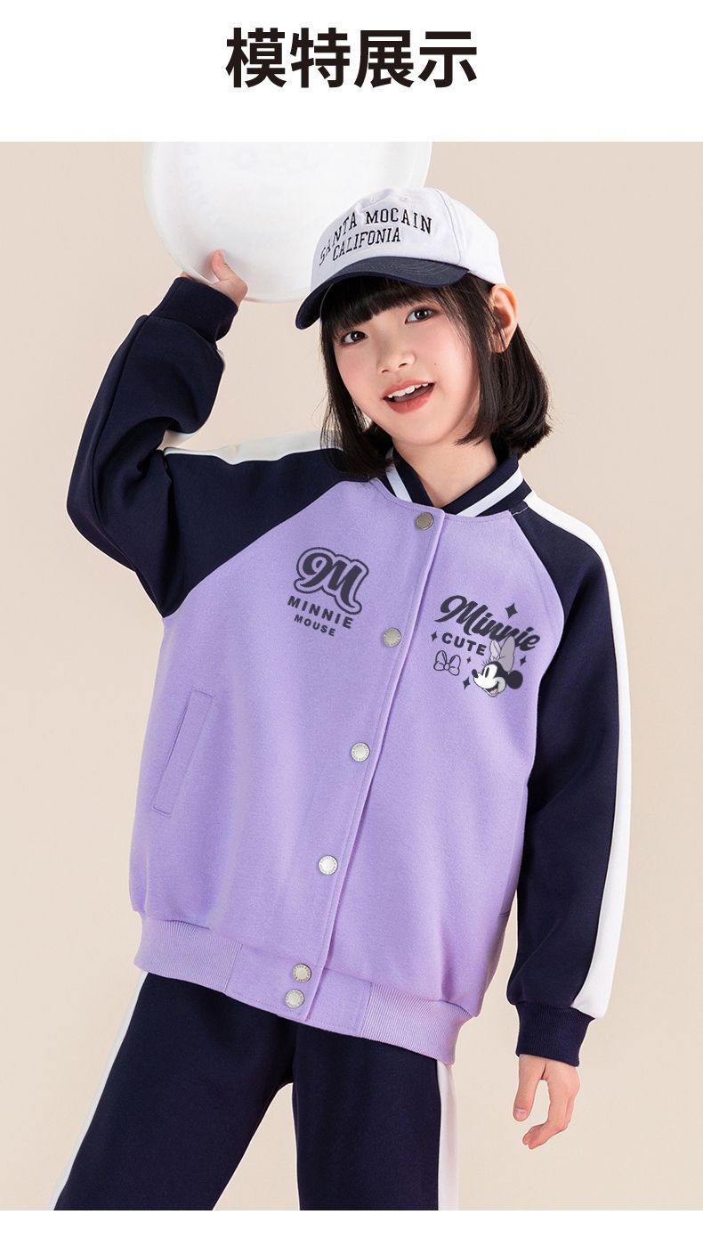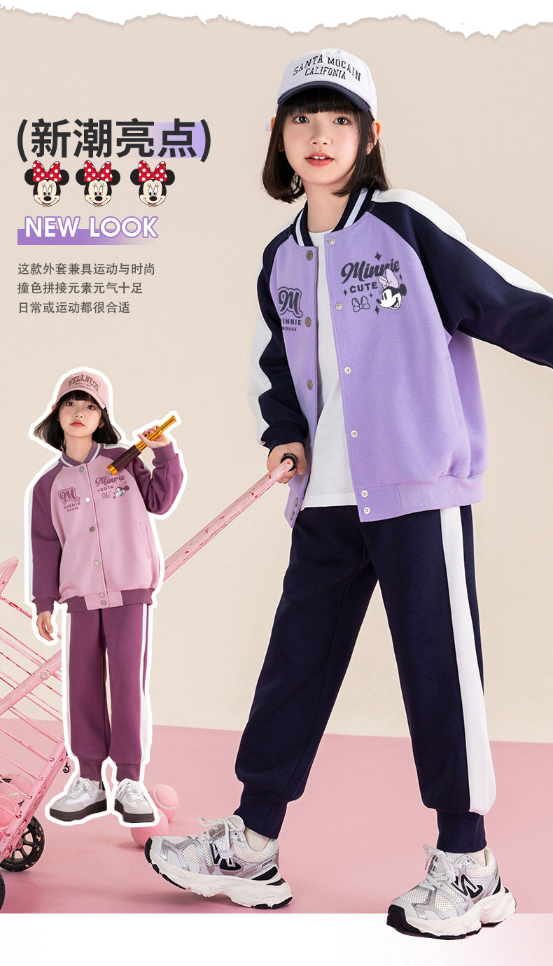 迪士尼女童棒球服外套春秋薄款儿童春季上衣女大童春装洋气运动服