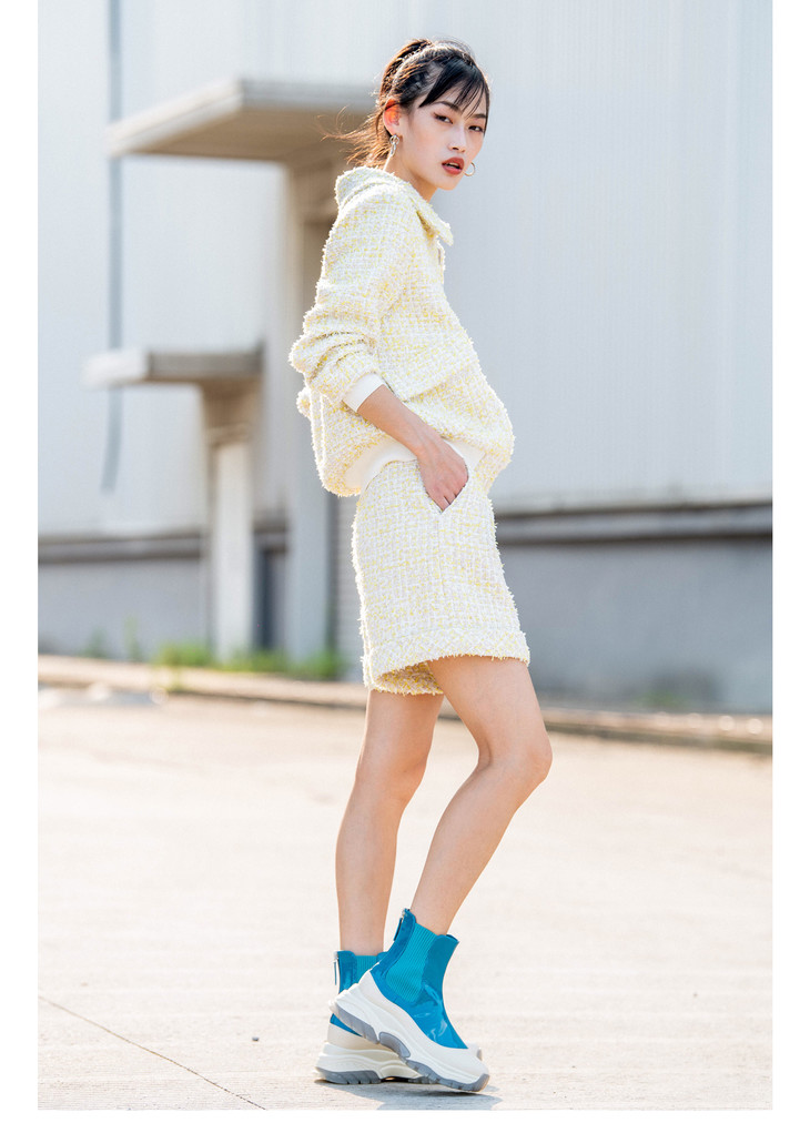 lost in echo2019秋季上新厚底切尔西运动短靴 蓝绿色时尚运动鞋拉链女靴