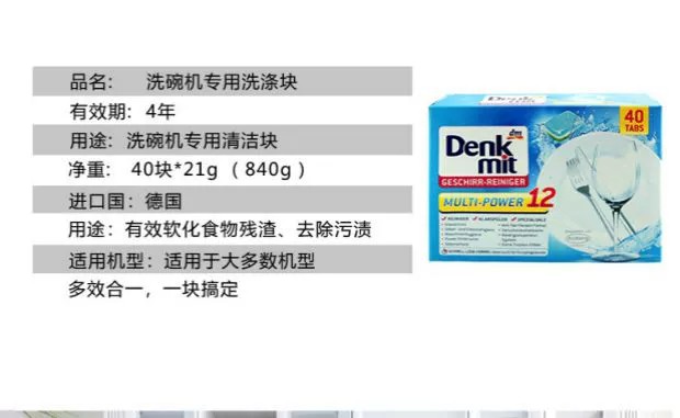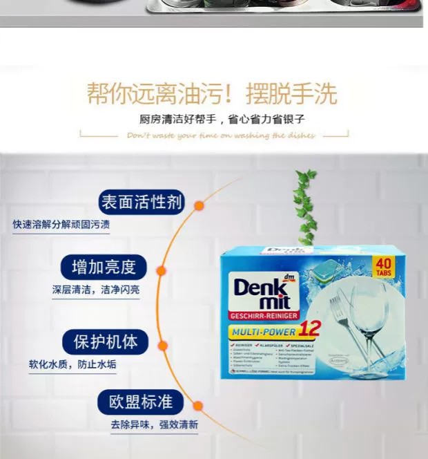 【中欧班列精选】德国进口dm denkmit洗碗块粉洗碗机洗涤亮碟剂清洗 40块/盒