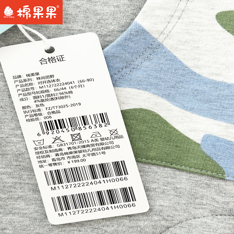 棉果果专柜同款春季新品男童纯棉对开连体衣M112722224041