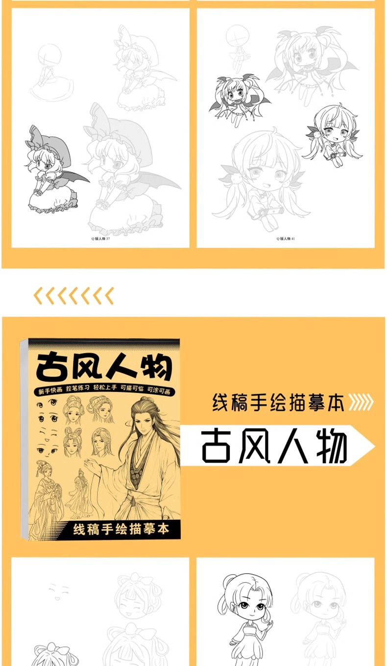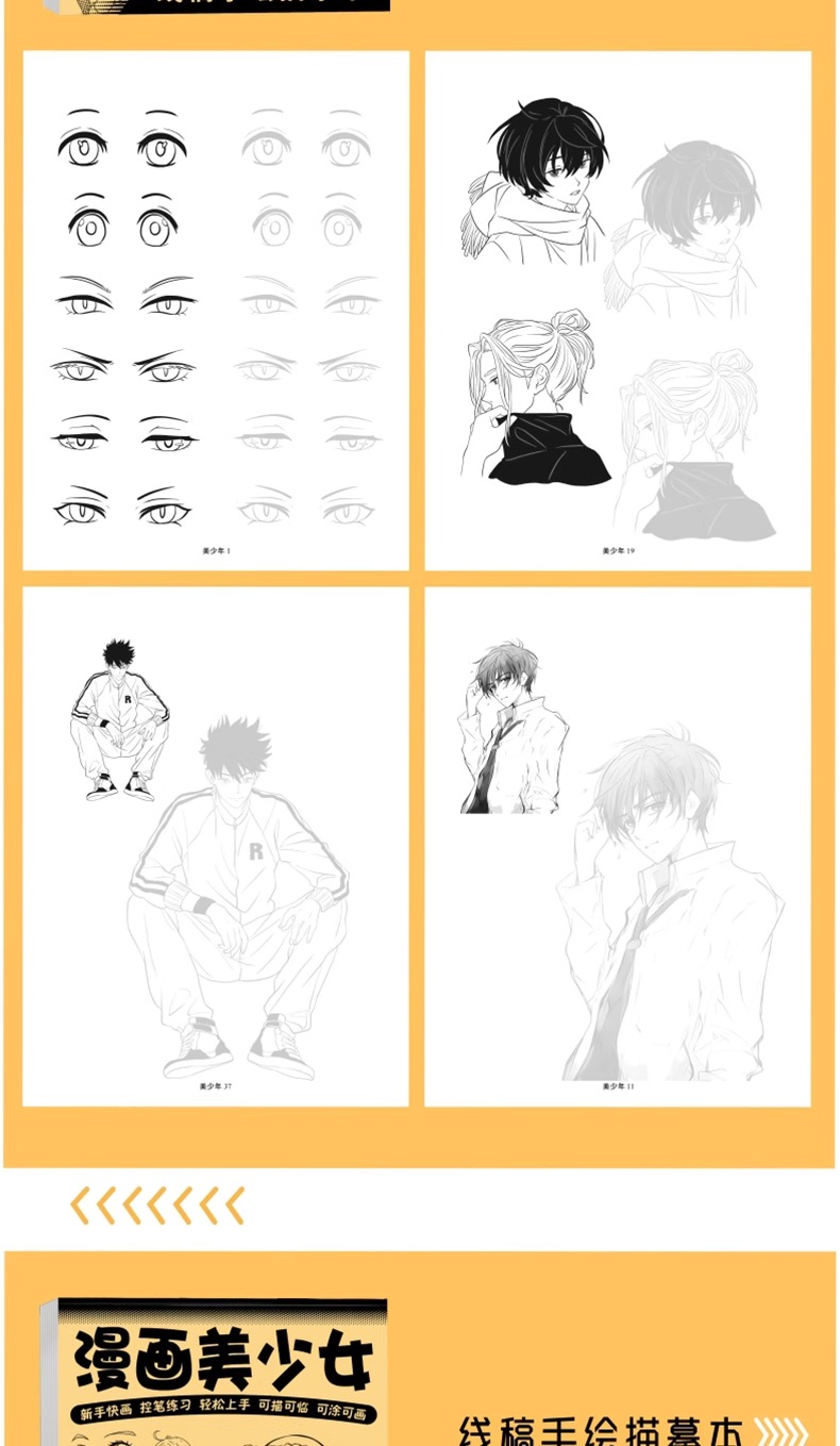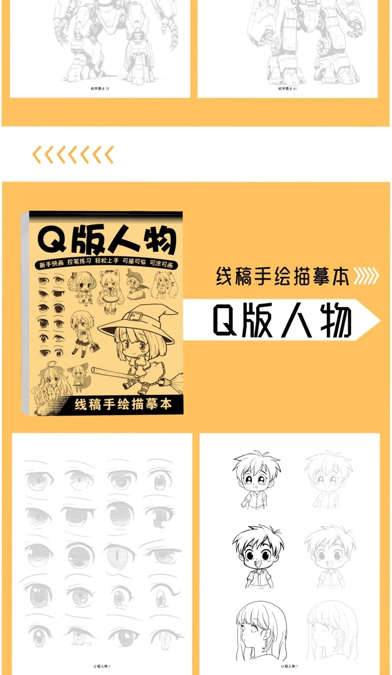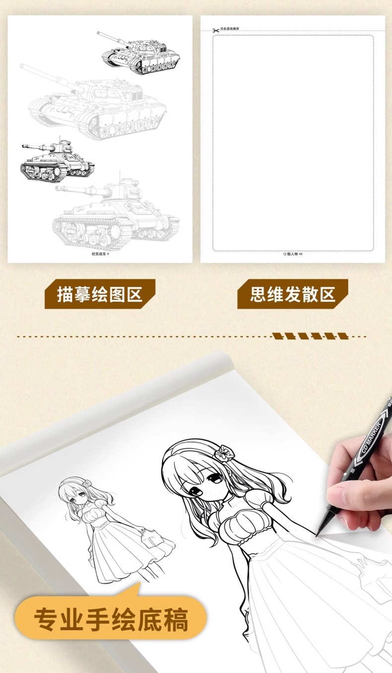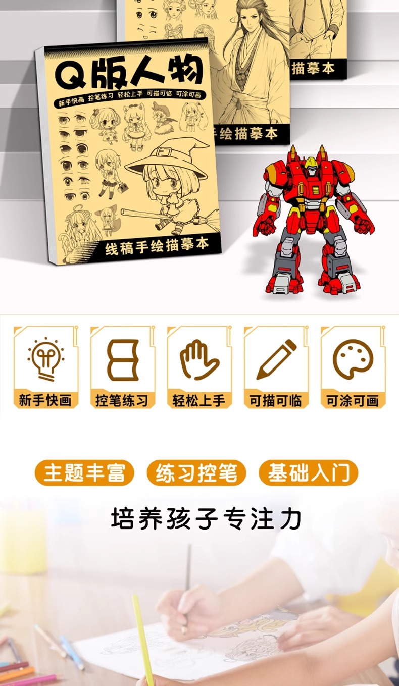 开学季福利!4本装【启蒙绘画+控笔训练 培训专注力和想象力】8大主题画画描摹本动漫人物漫画入门手绘练习册美少女Q版古风线稿描绘本