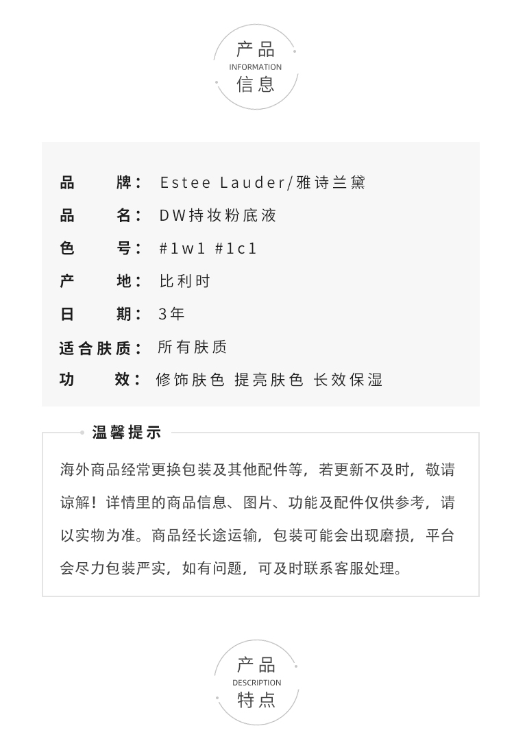 雅诗兰黛DW持妆粉底液 油皮亲妈持久不脱妆遮瑕控油防晒中小样15ml/7ml