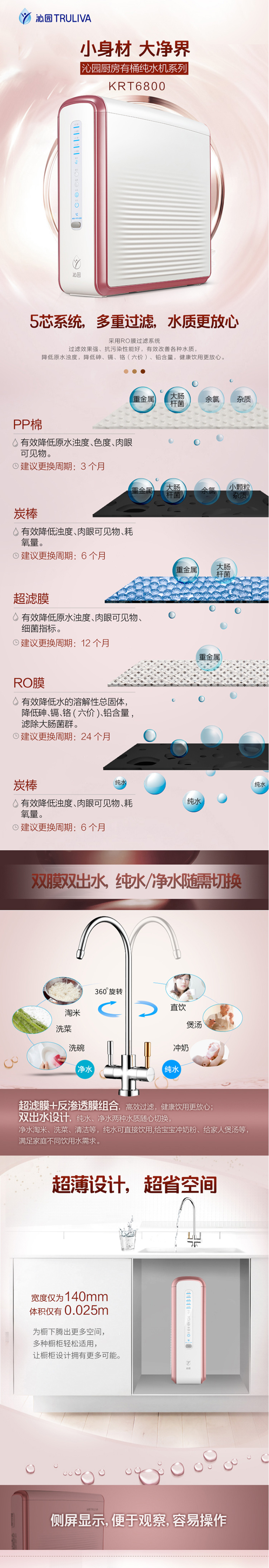 沁园(508435) KRT6800 双膜双出水 净水器 多重过滤 白色