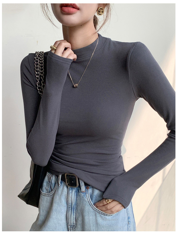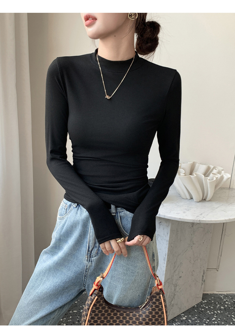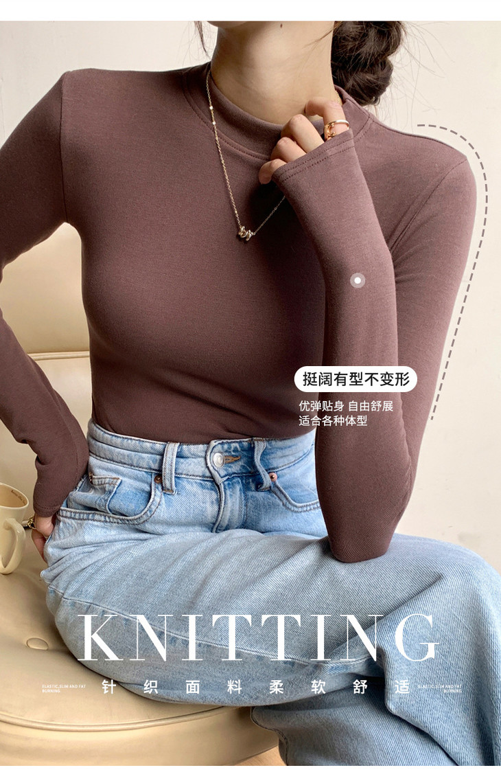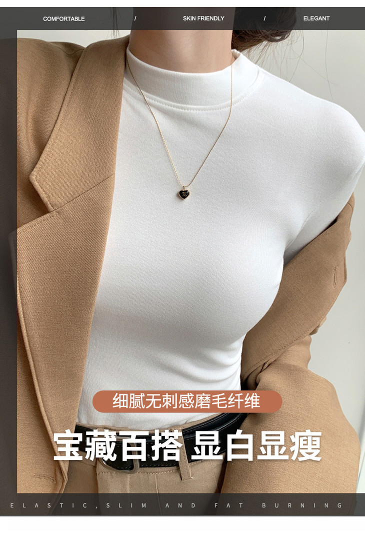 【买1送1 半高领打底衫女】秋冬季加绒加厚内搭高级感修身磨毛白色长袖上衣