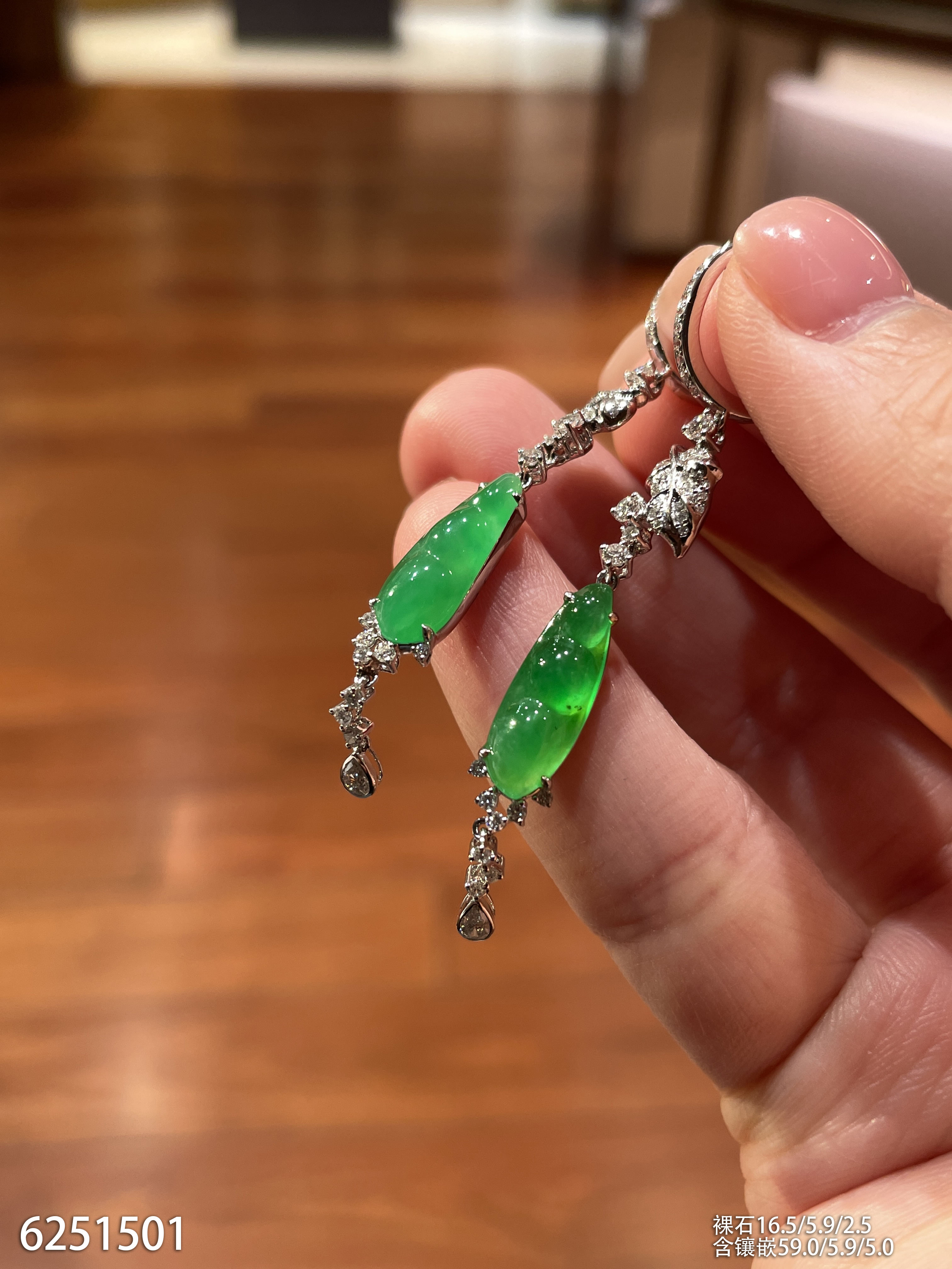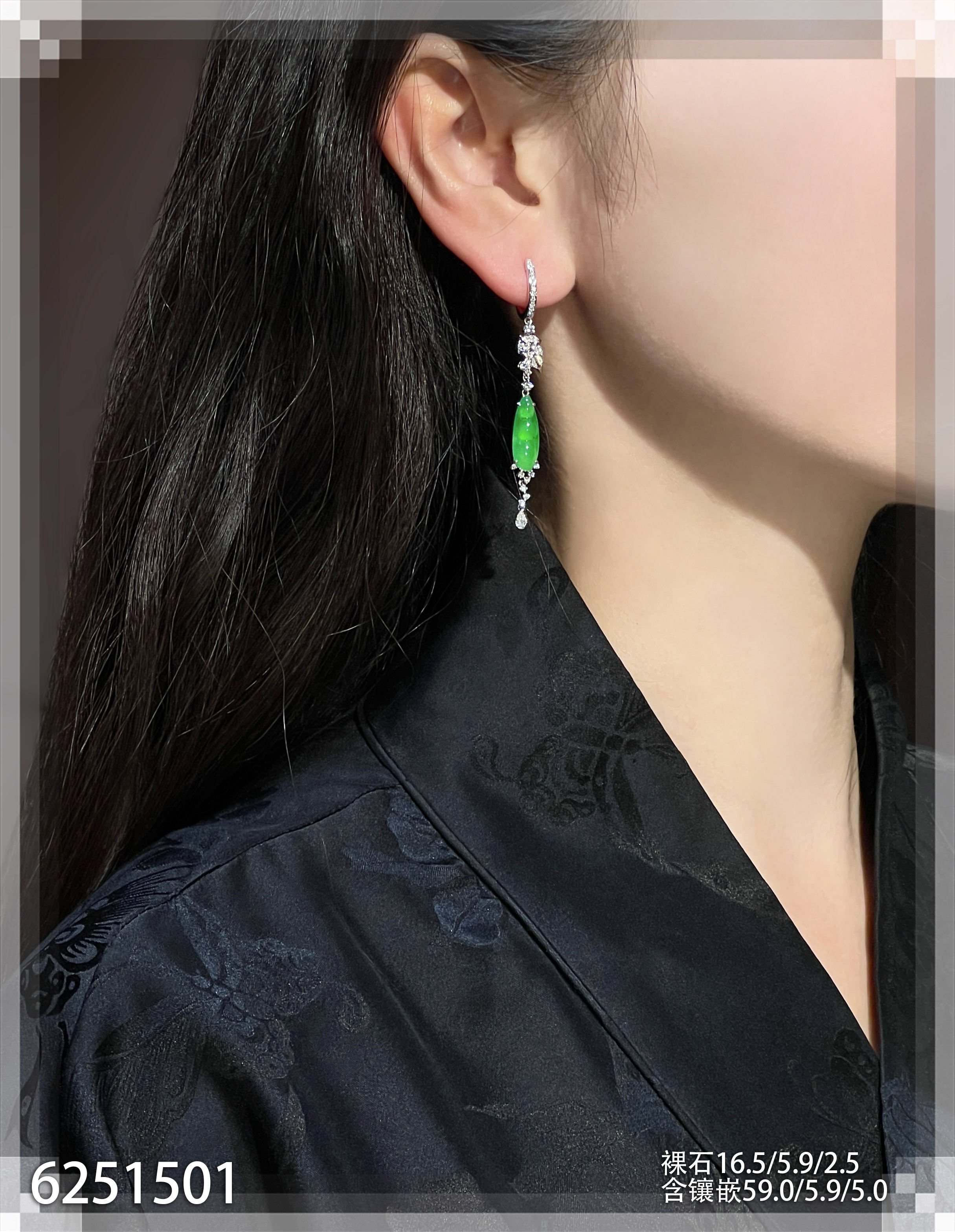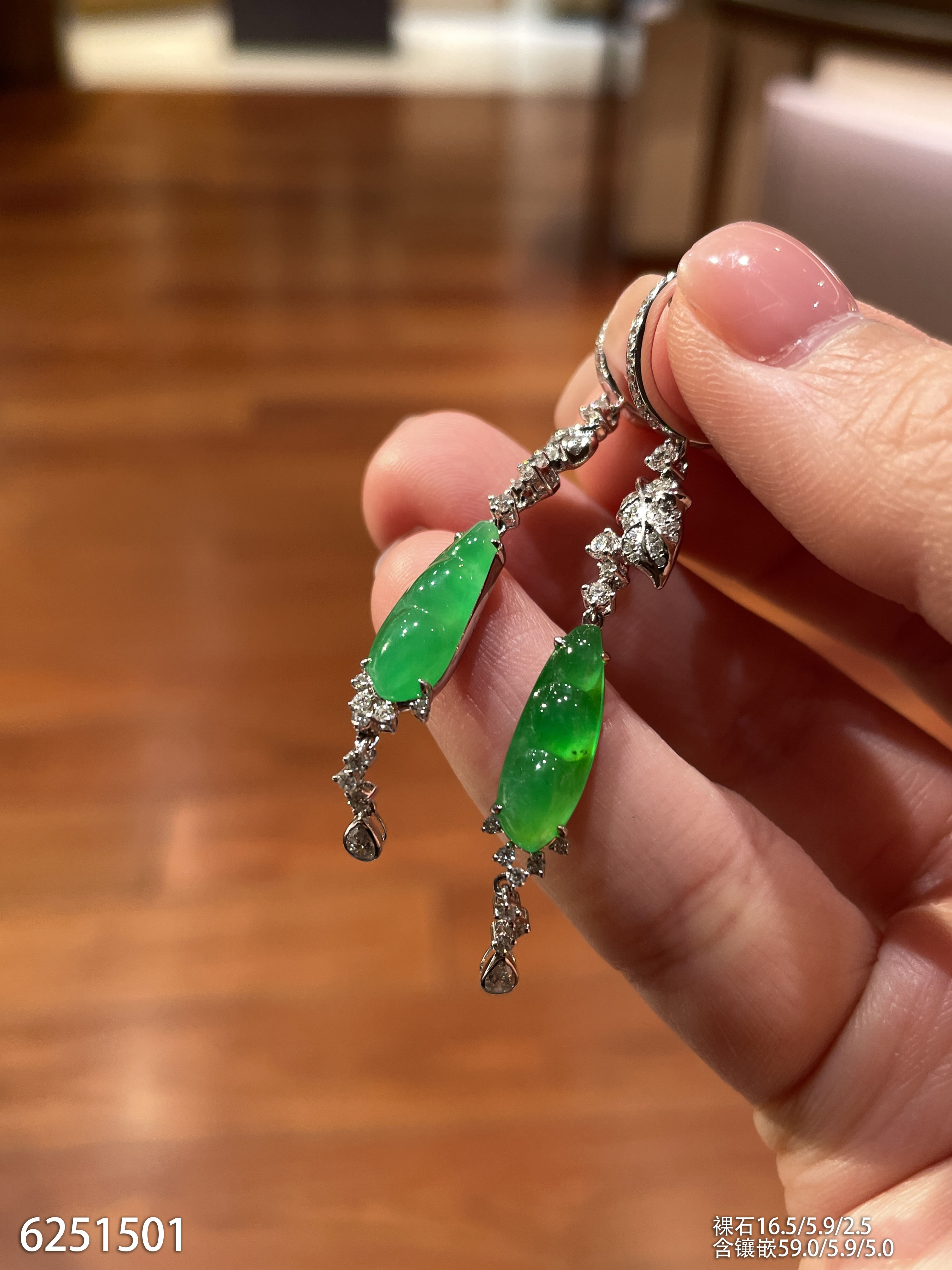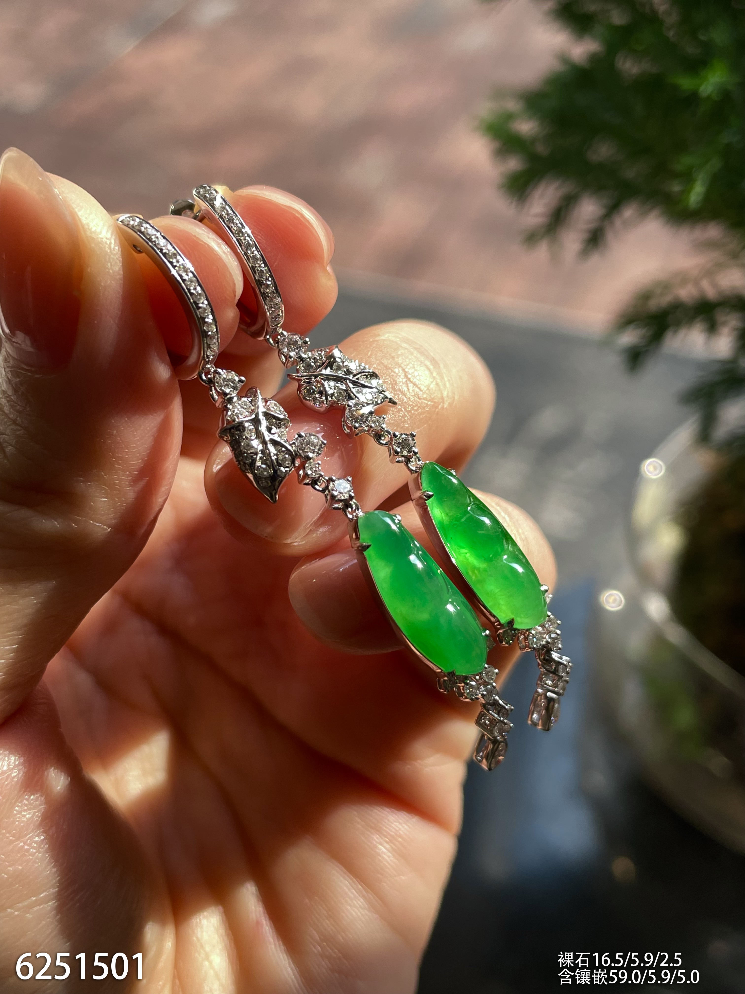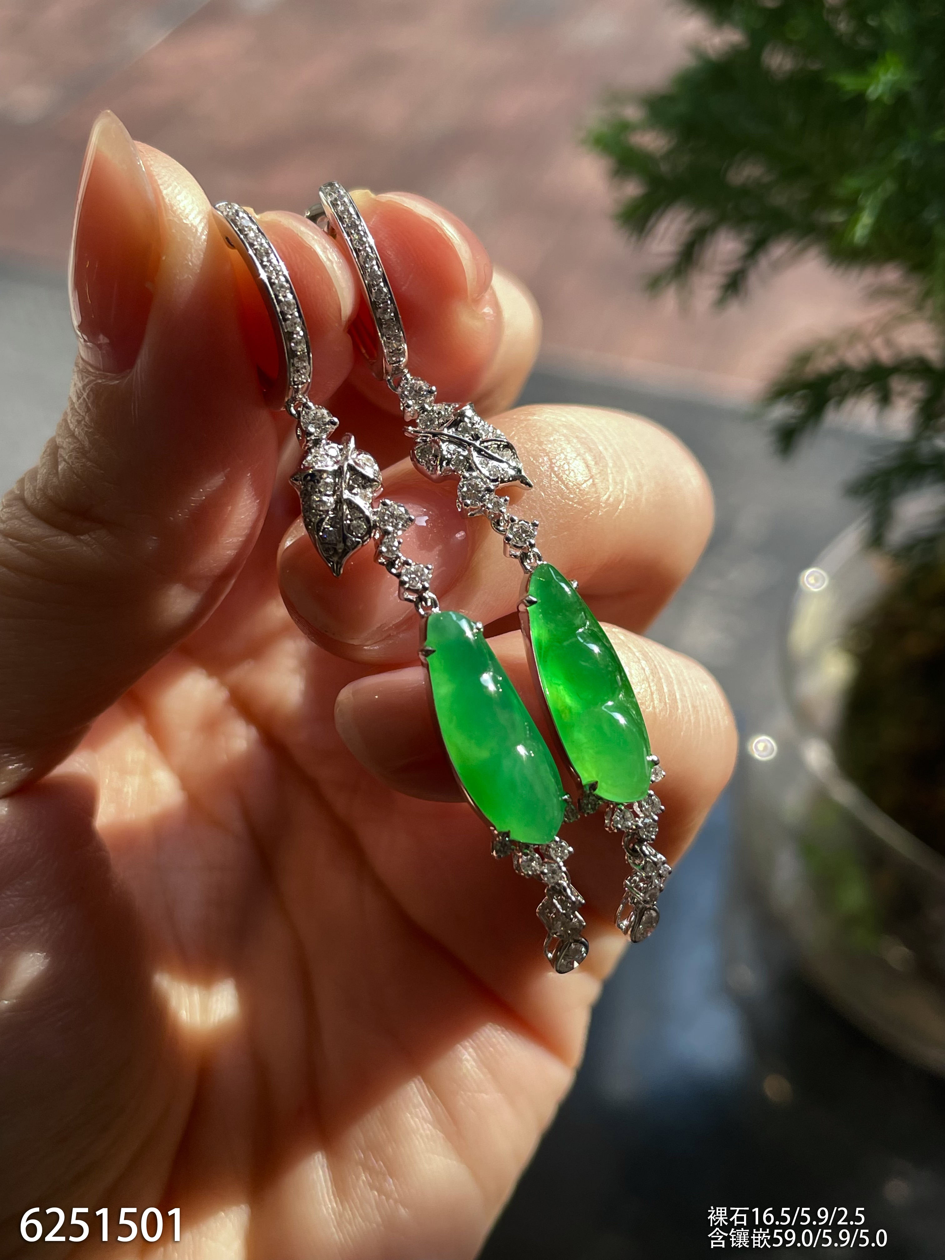 玻璃种帝王绿蛋面耳坠【6023104】具体价格微信咨询