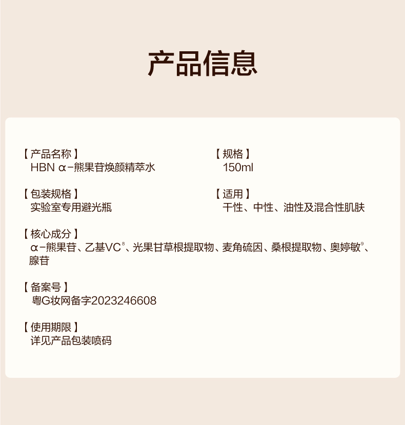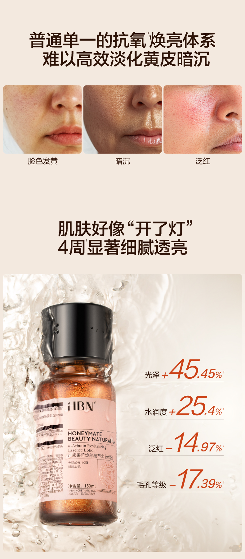 【品牌直发】HBN发光水α-熊果苷精粹水2.0美白特证版发光水α-熊果苷精粹水淡斑去黄提亮肤色保湿爽肤水湿敷护肤精华水