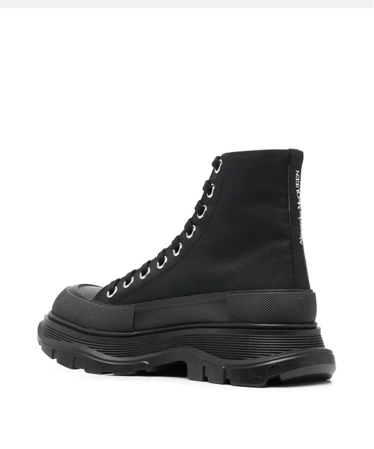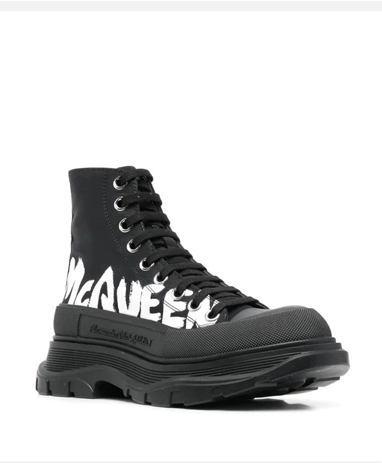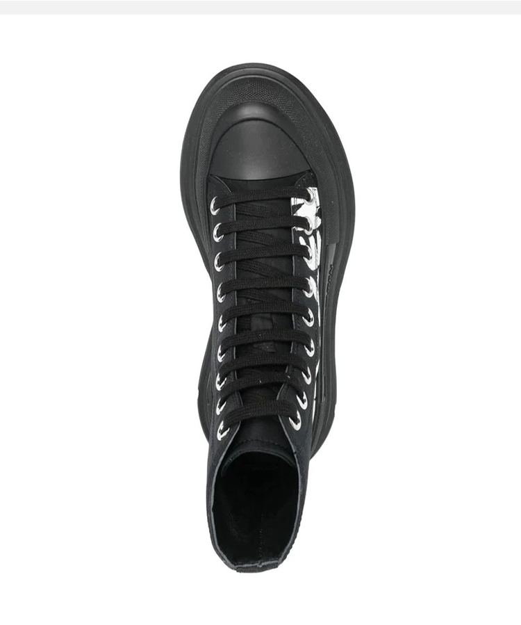 ALEXANDER MCQUEEN 亚历山大.麦昆 女士棉质字母涂鸦印花高帮 Tread Slick 休闲鞋 黑色 708752 W4RQ2 1006