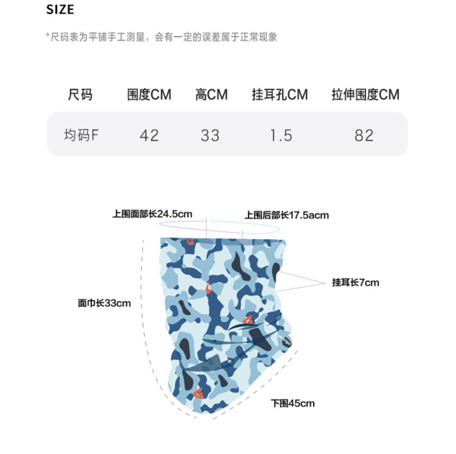 oribigo运动凉感面巾/无缝面巾 UPF50+ A类品质 健康亲肤轻薄防晒 3A抗菌多次水洗效果不减 挂耳设计 运动不易掉【3月运动服清仓专场】