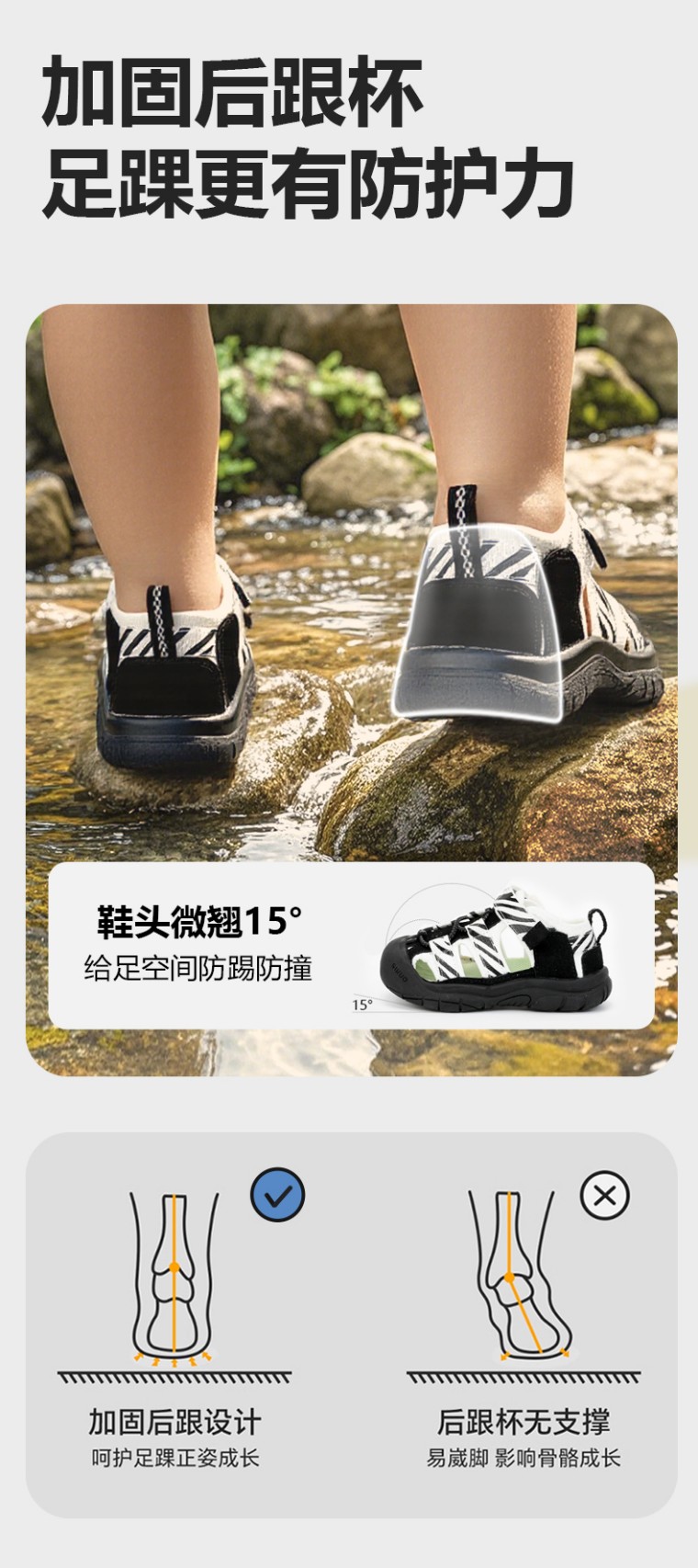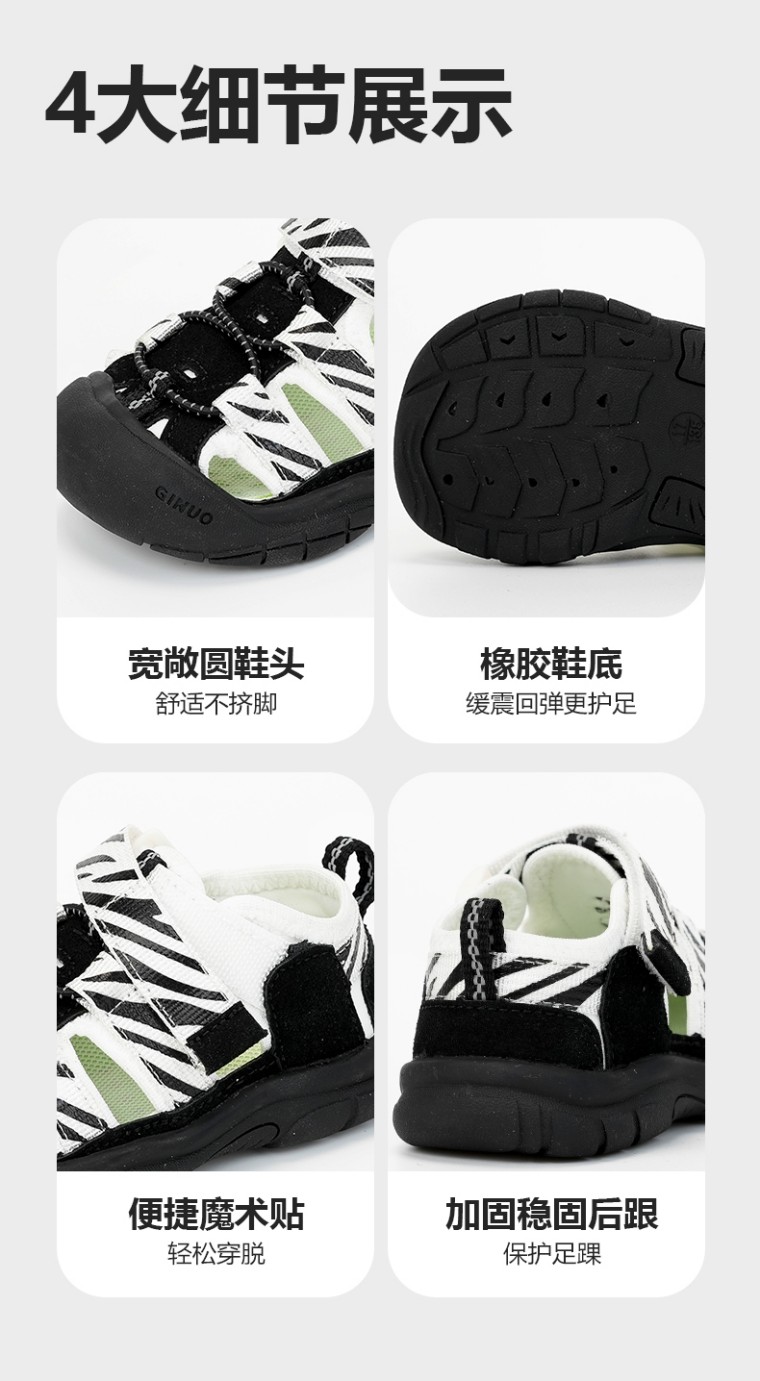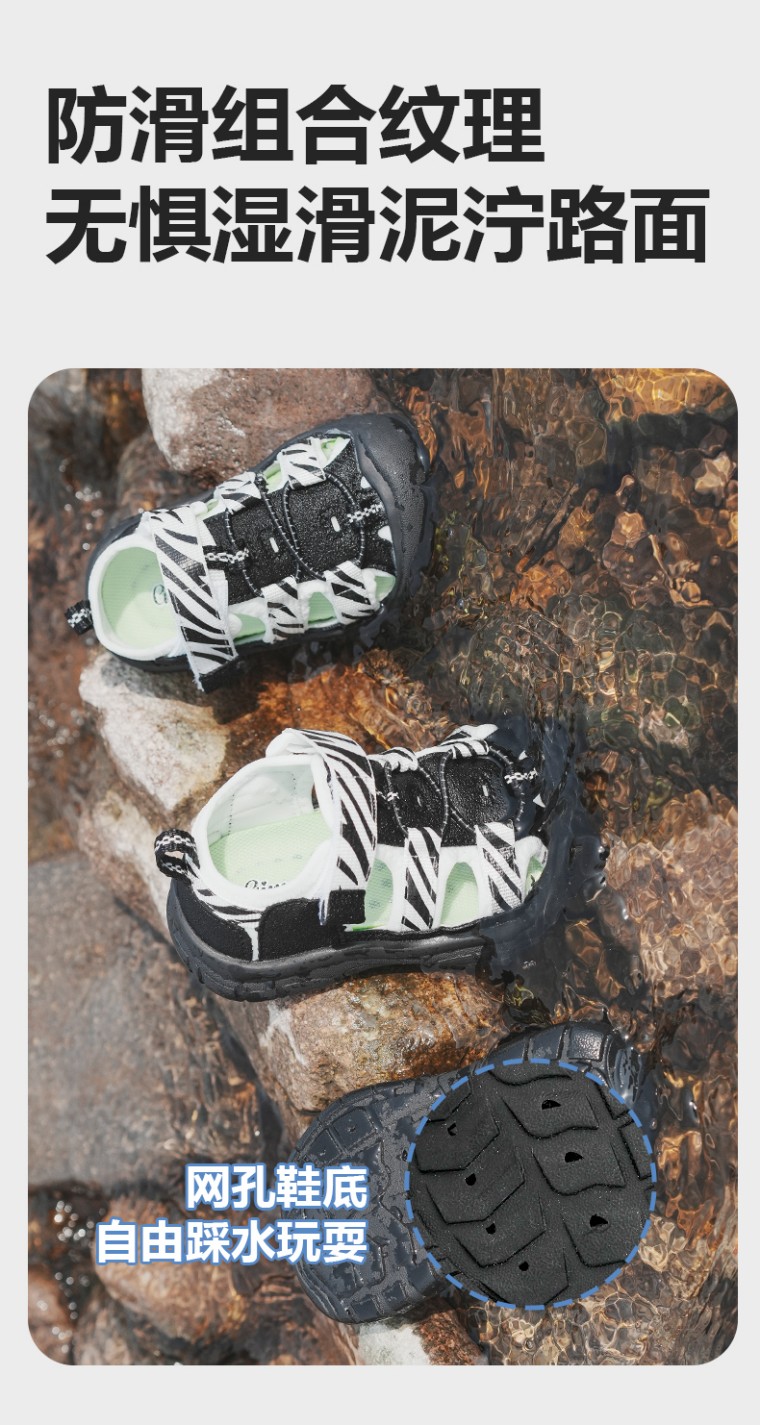 升级版!GINUORAT溯溪鞋婴儿软底学步鞋包头机能凉鞋斑马沙滩鞋