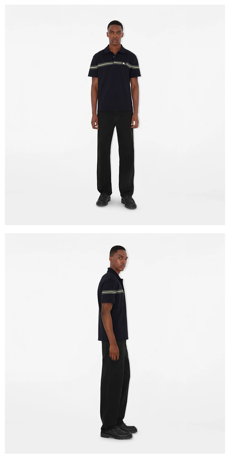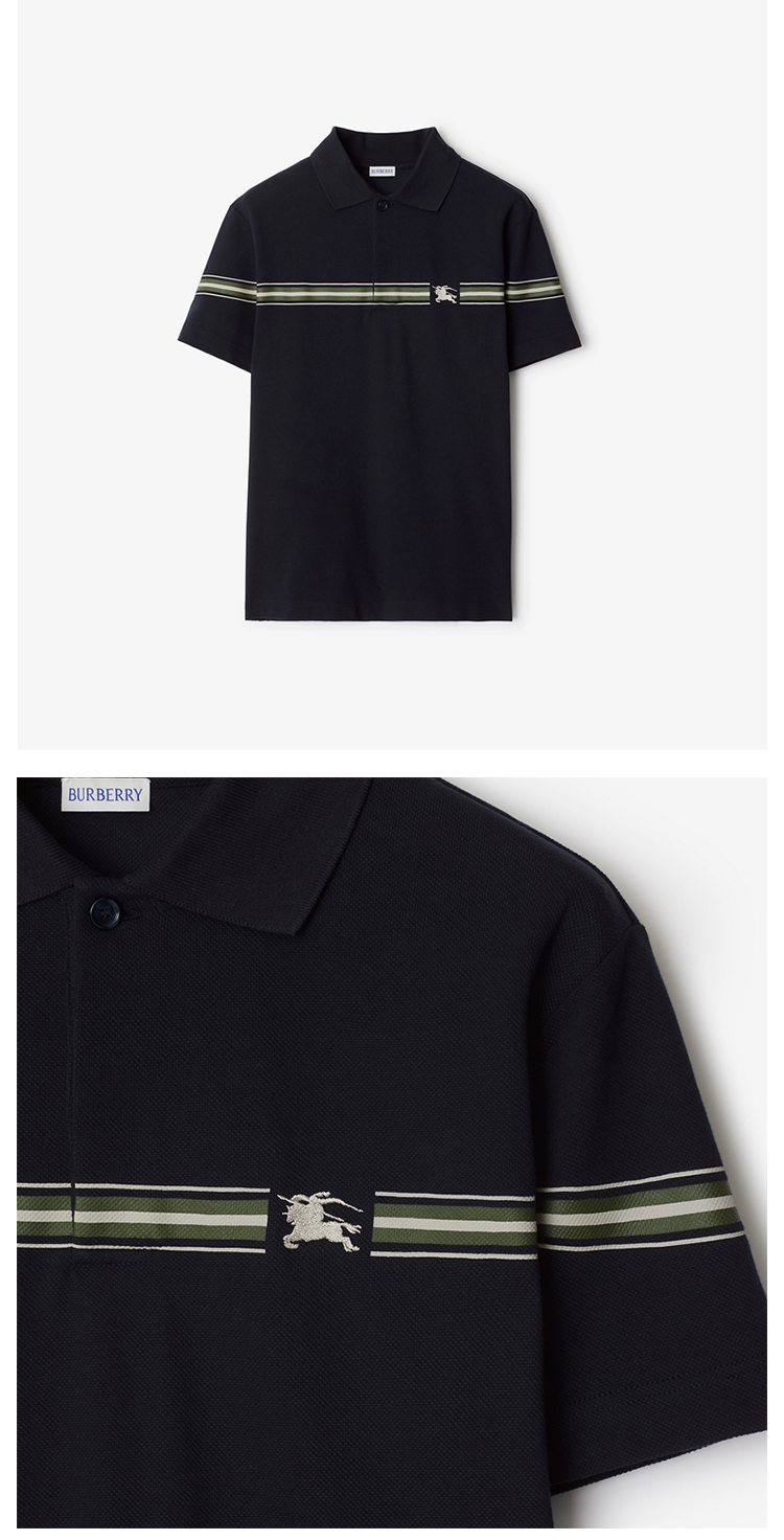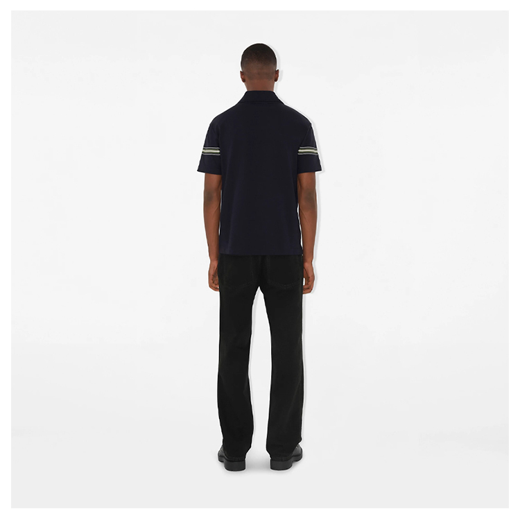 BURBERRY 巴宝莉 男士马术骑士徽标刺绣条纹棉质短袖 Polo 衫 深蓝色 8105139 C1765