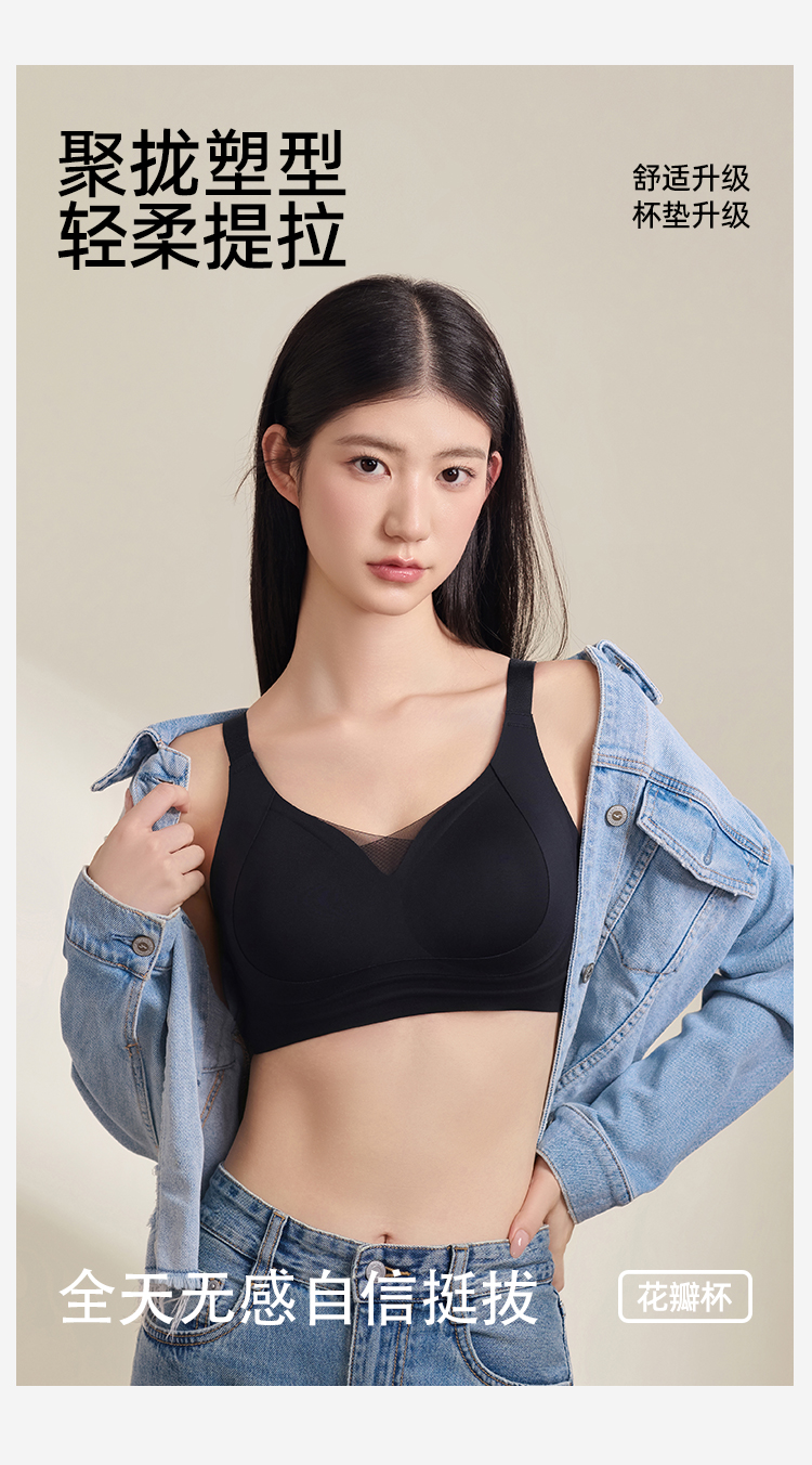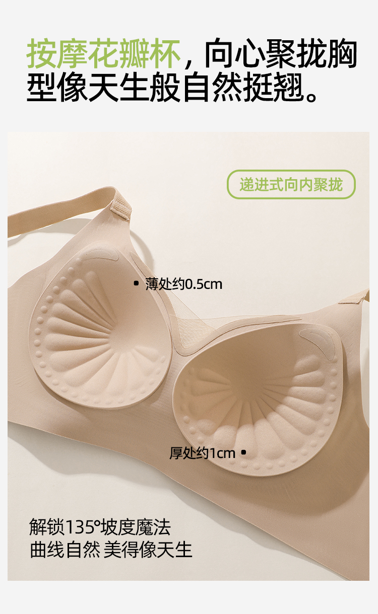 熳洁儿 提拉聚拢无痕内衣百搭光面聚拢防下垂文胸按摩花瓣杯25761505