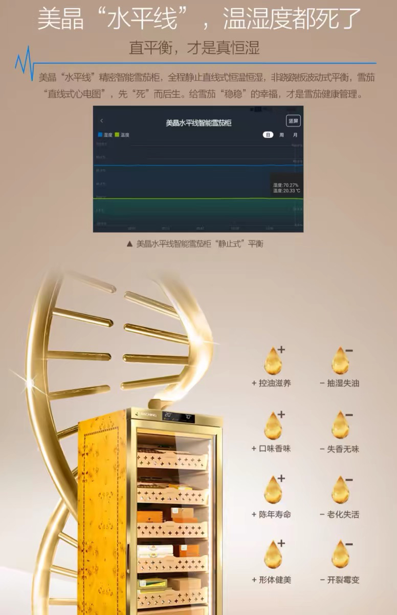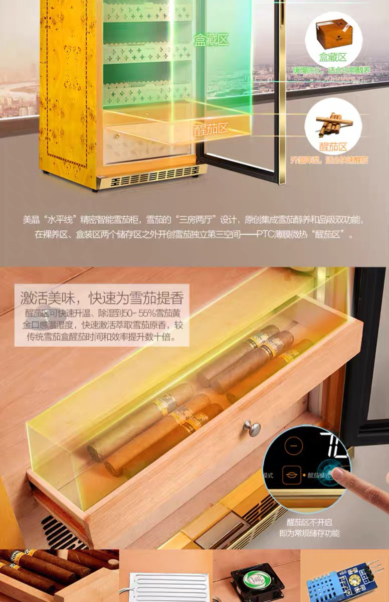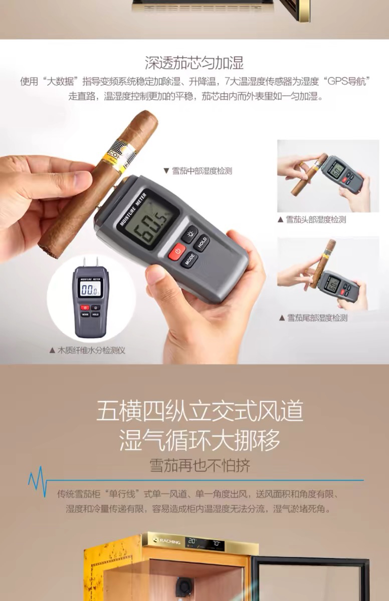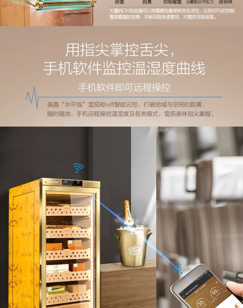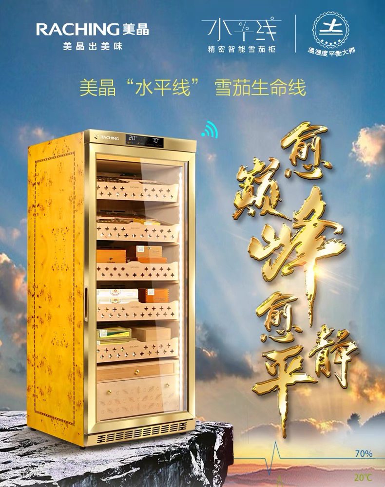 raching/美晶雪茄柜MON1800A智能水平线实木恒温恒湿雪茄保湿烟柜