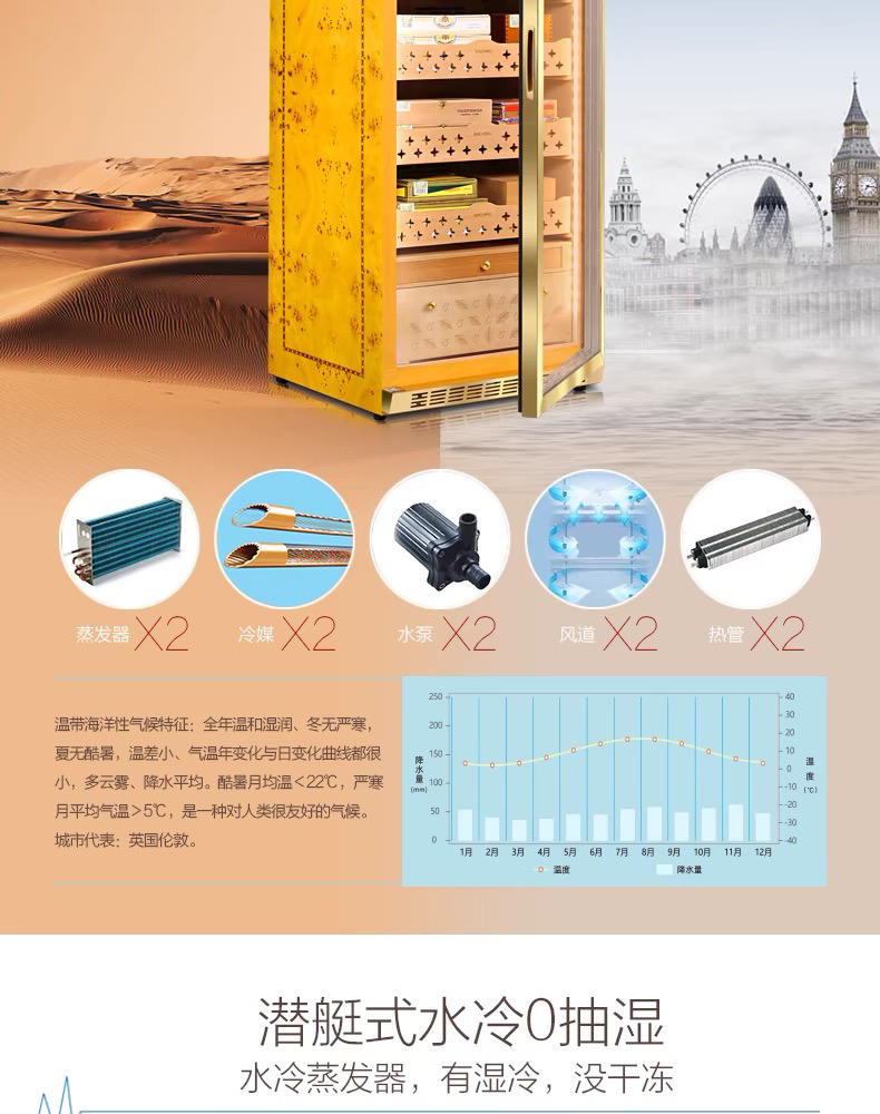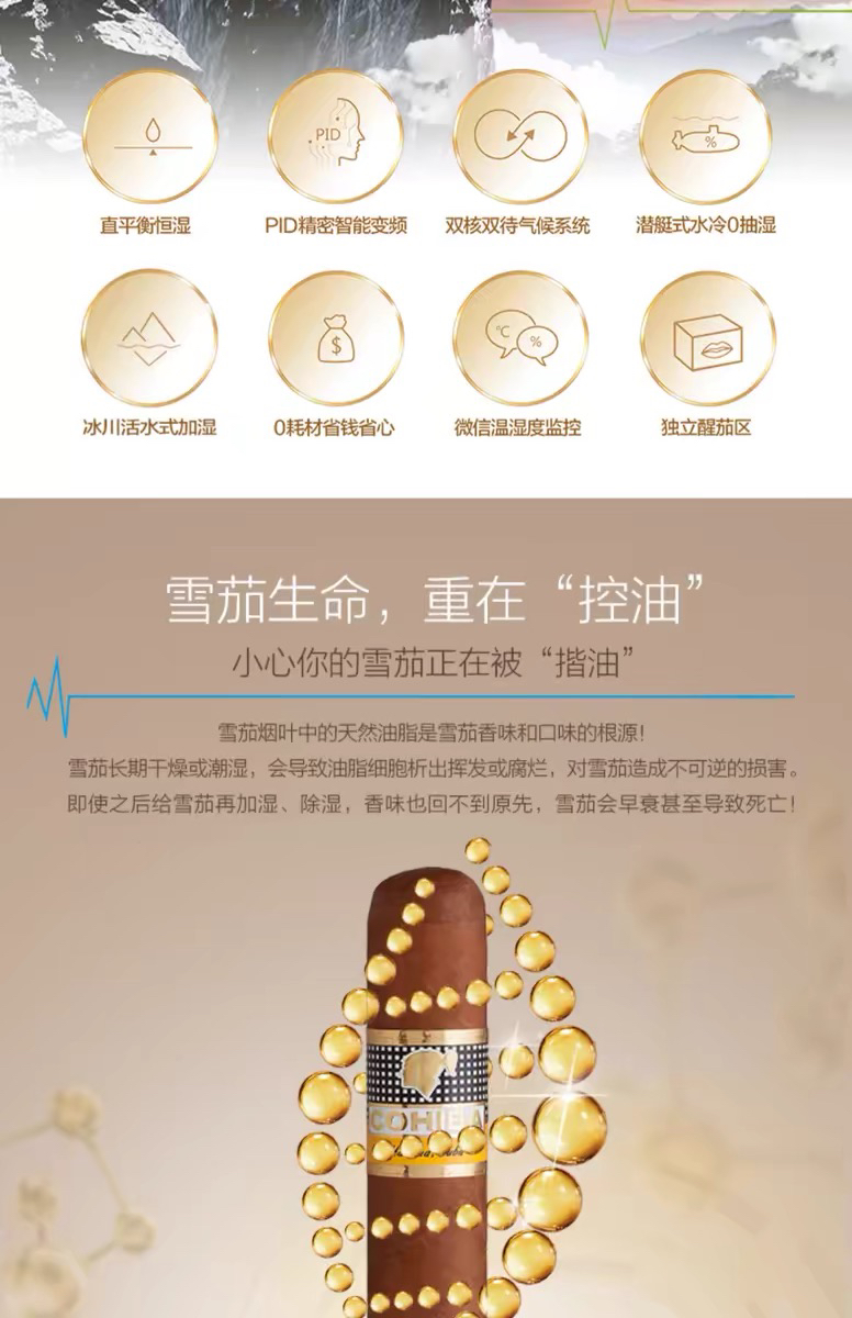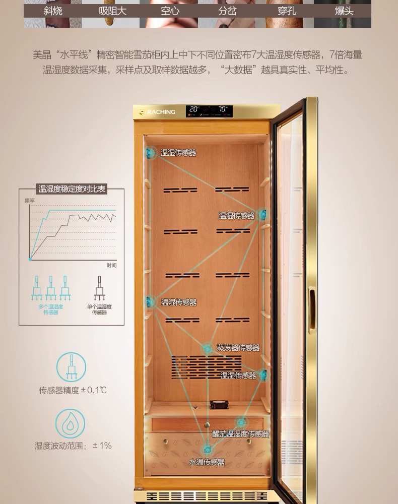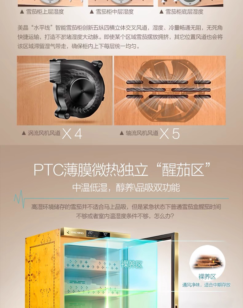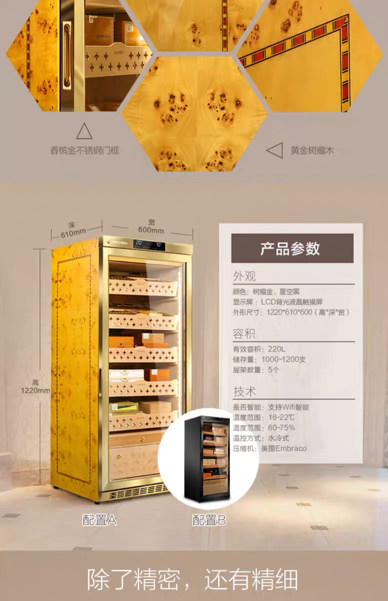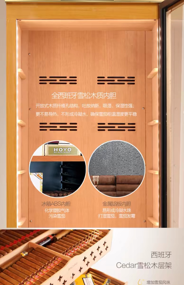 raching/美晶雪茄柜MON1800A智能水平线实木恒温恒湿雪茄保湿烟柜