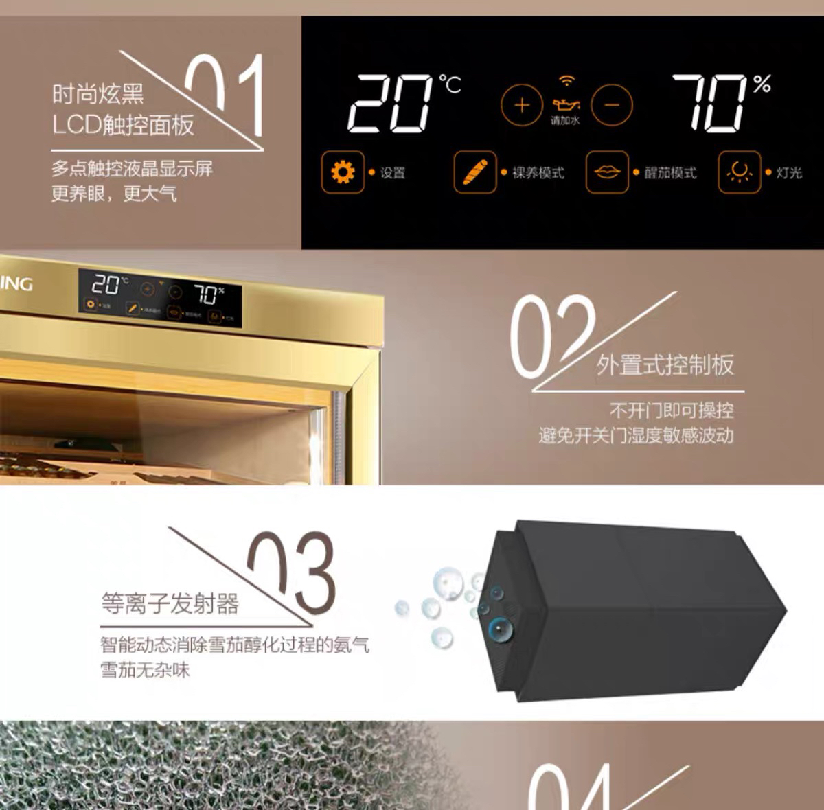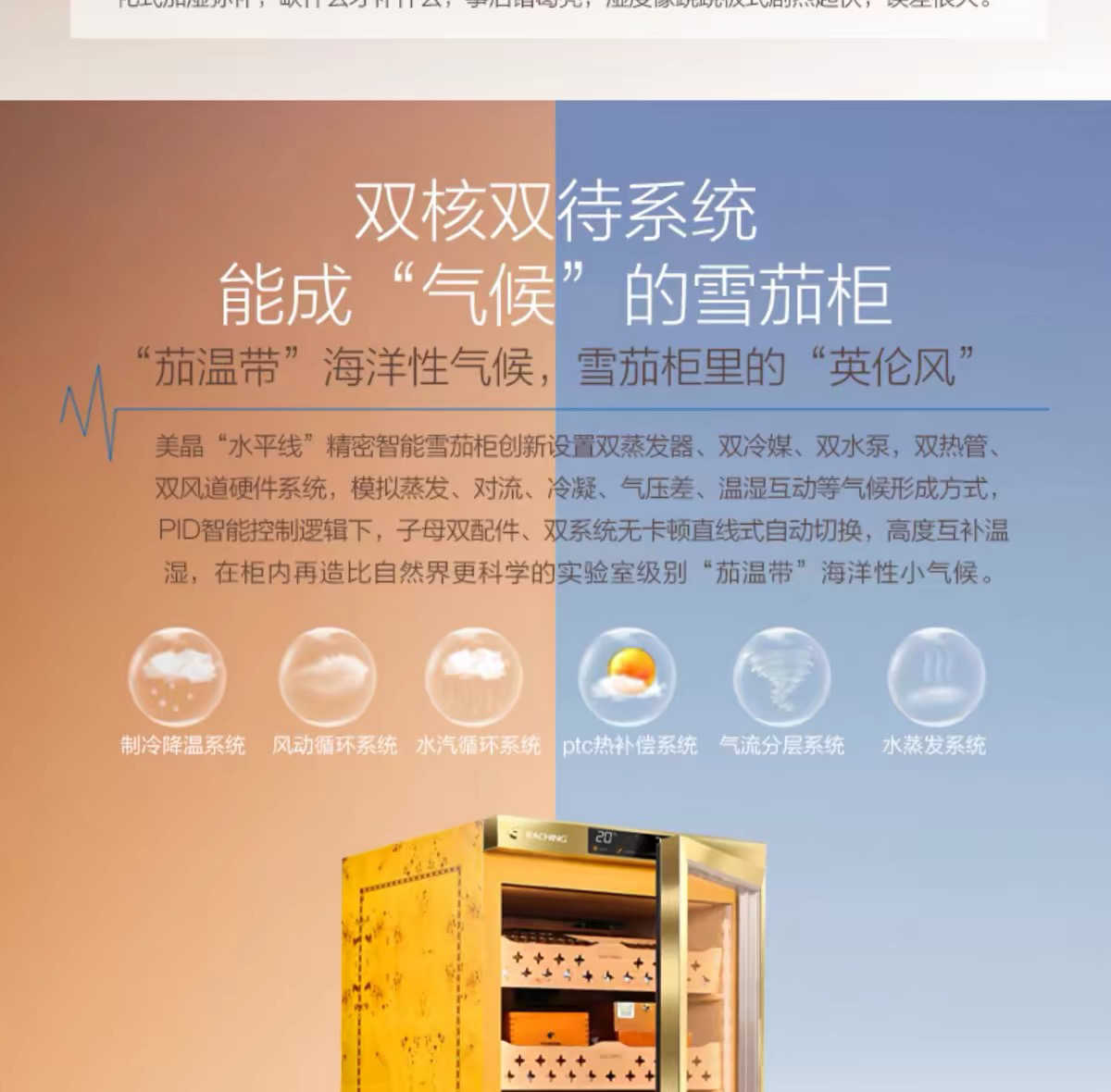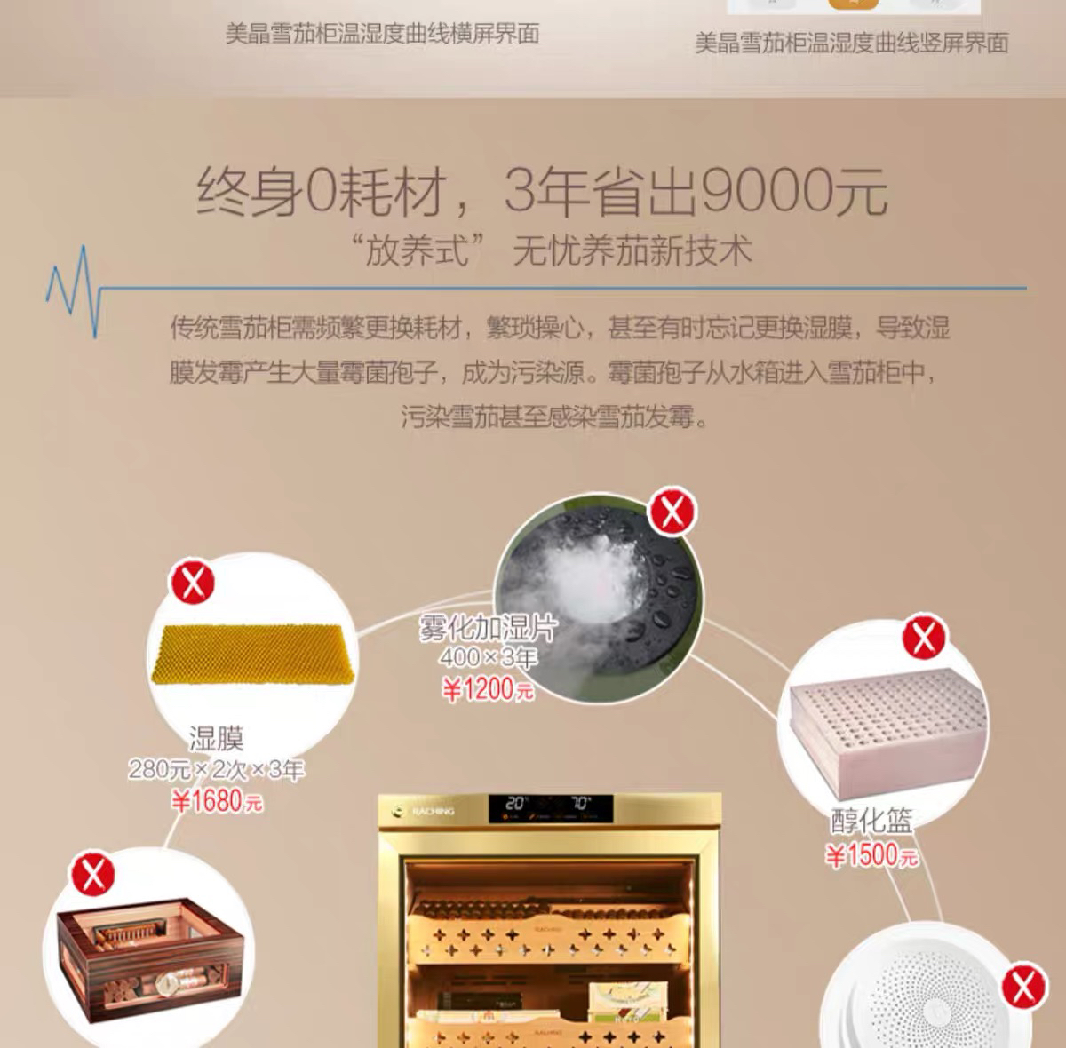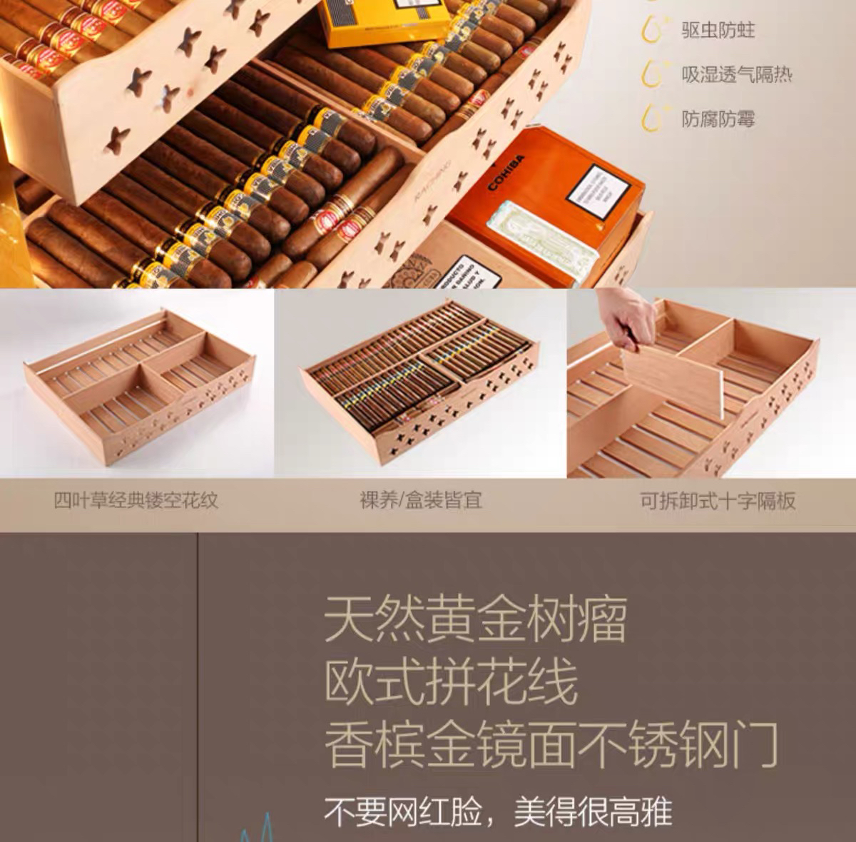 raching/美晶雪茄柜MON1800A智能水平线实木恒温恒湿雪茄保湿烟柜