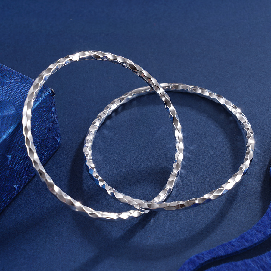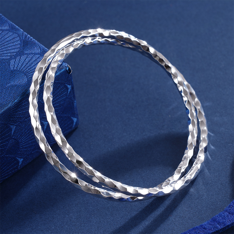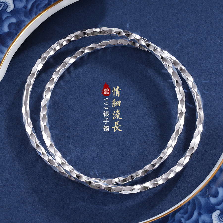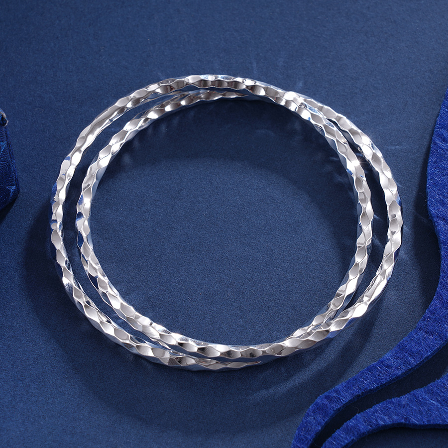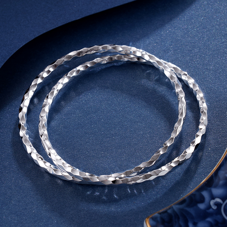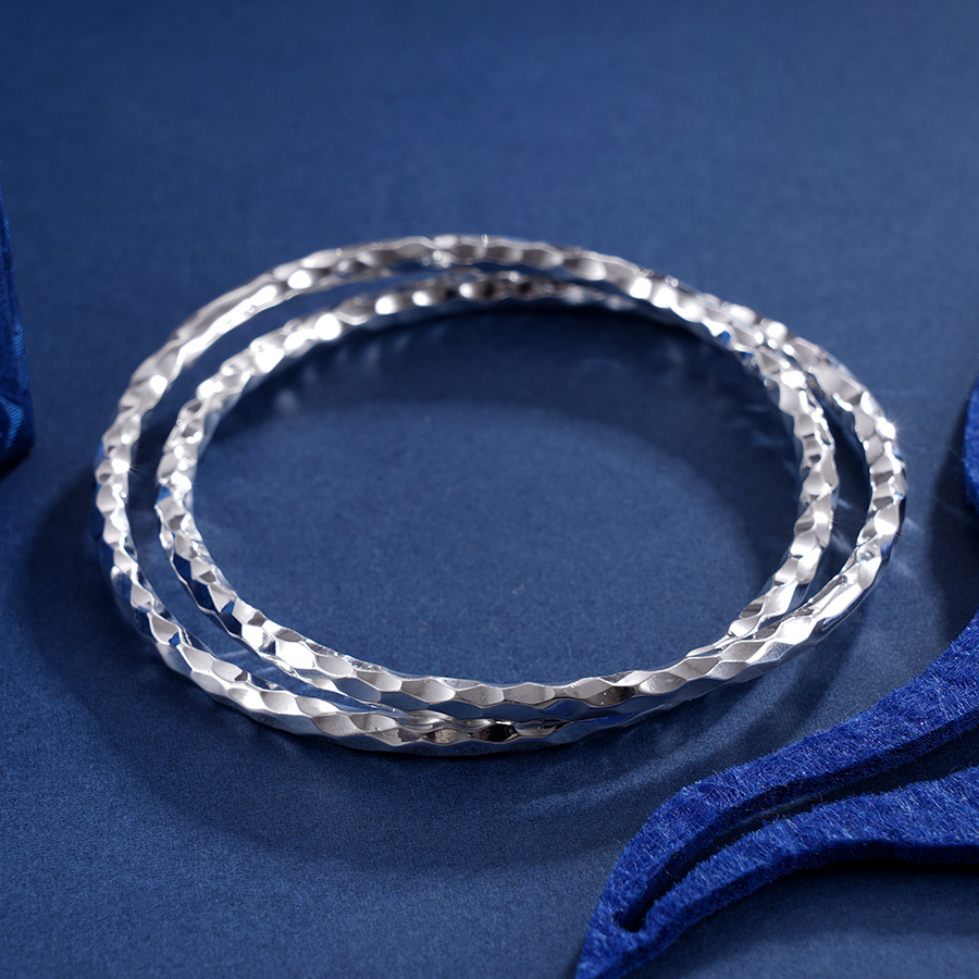 【寓意】:利用锤纹工艺打造的双圈手镯,似天边银河,闪闪发光,也似涓涓水流,细腻悠长。迎接2025的这一天,执子之手,让爱细水长流。