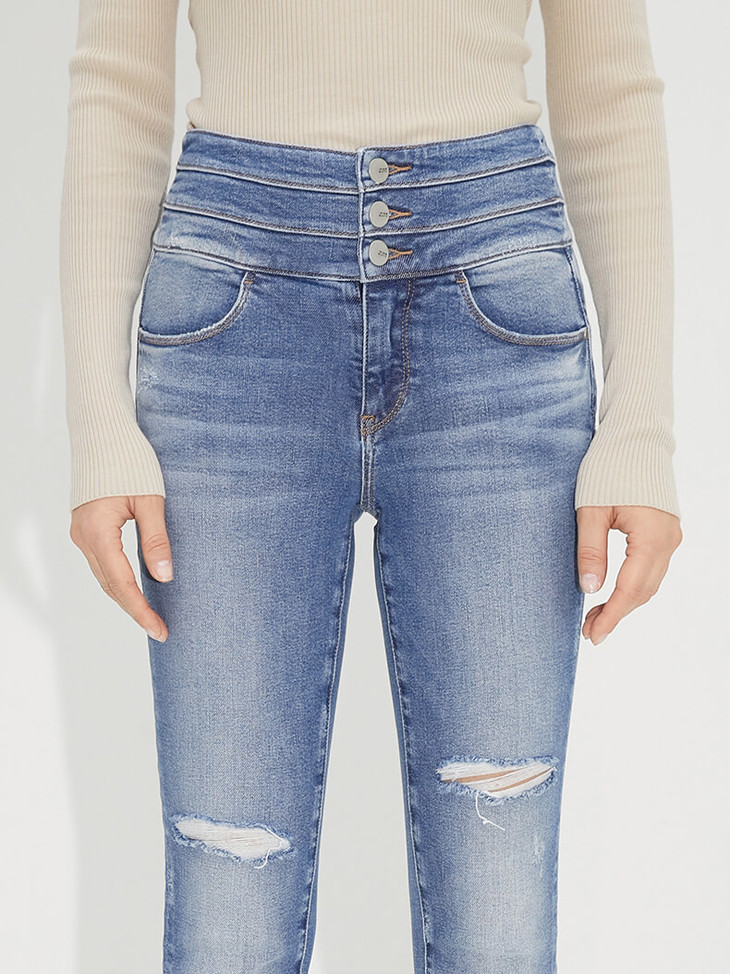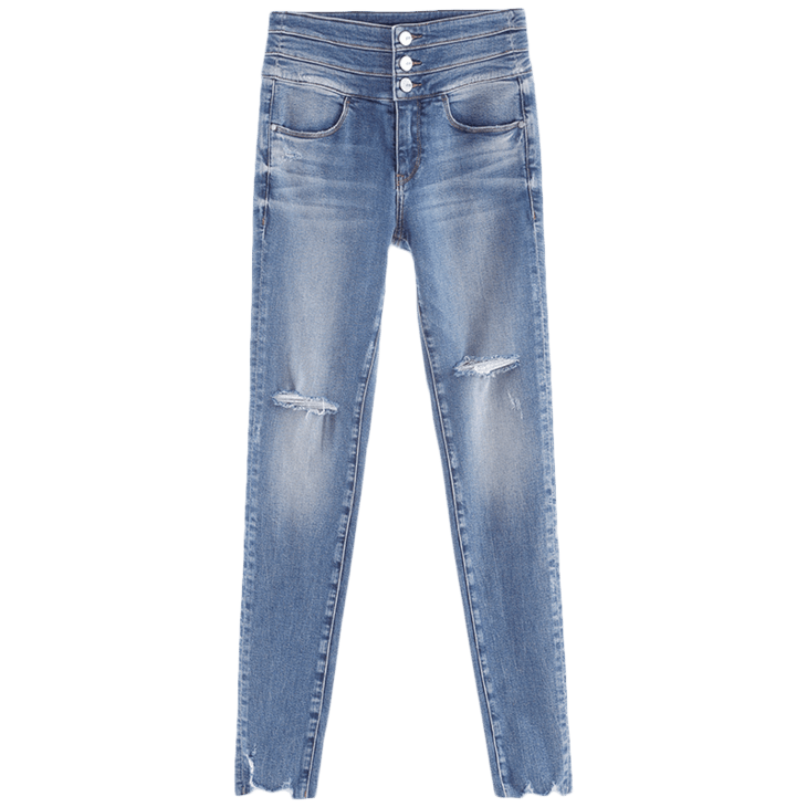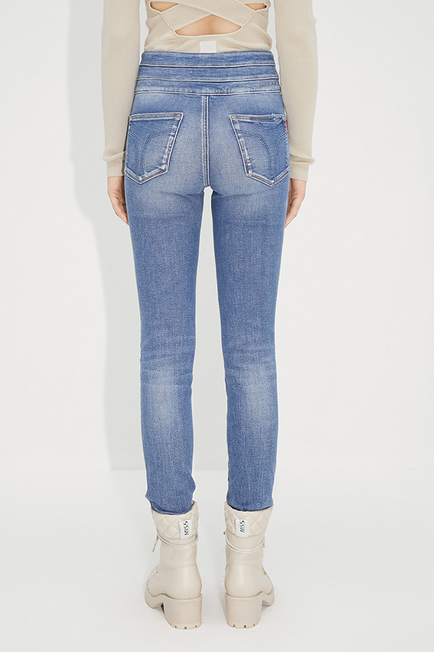 Miss Sixty2021秋季新款牛仔裤女三环高腰破洞毛边紧身修身九分裤6N3JJ2330800