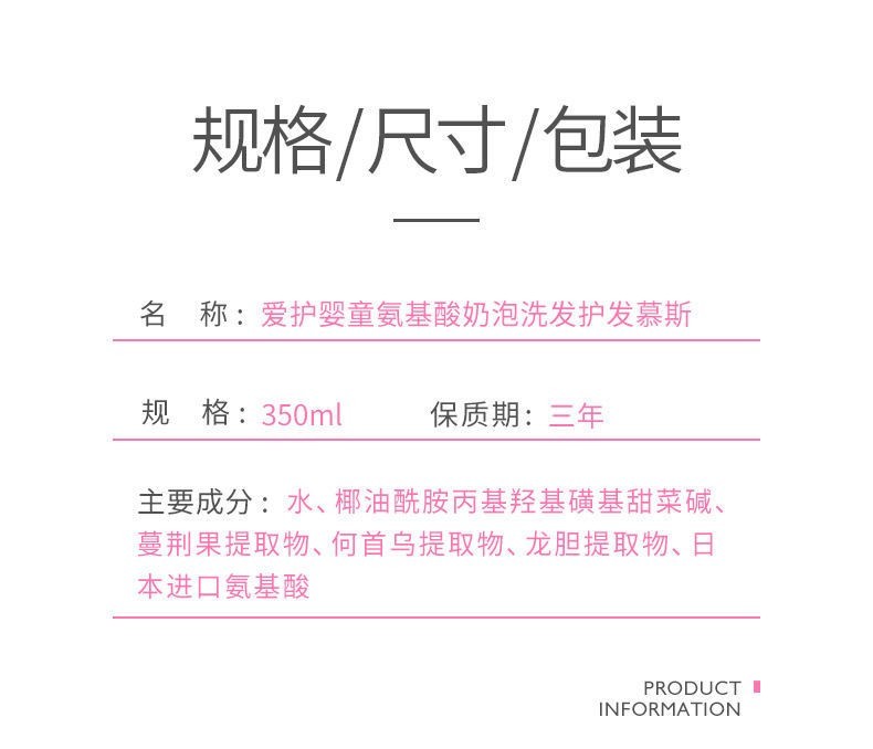 爱护婴童氨基酸奶泡洗发护发慕斯350ml