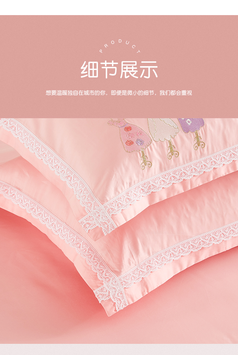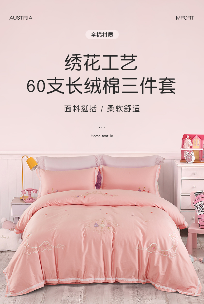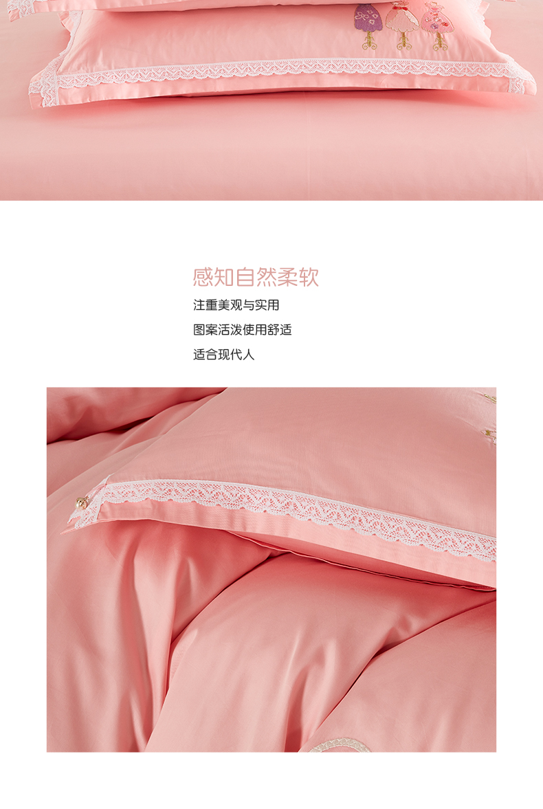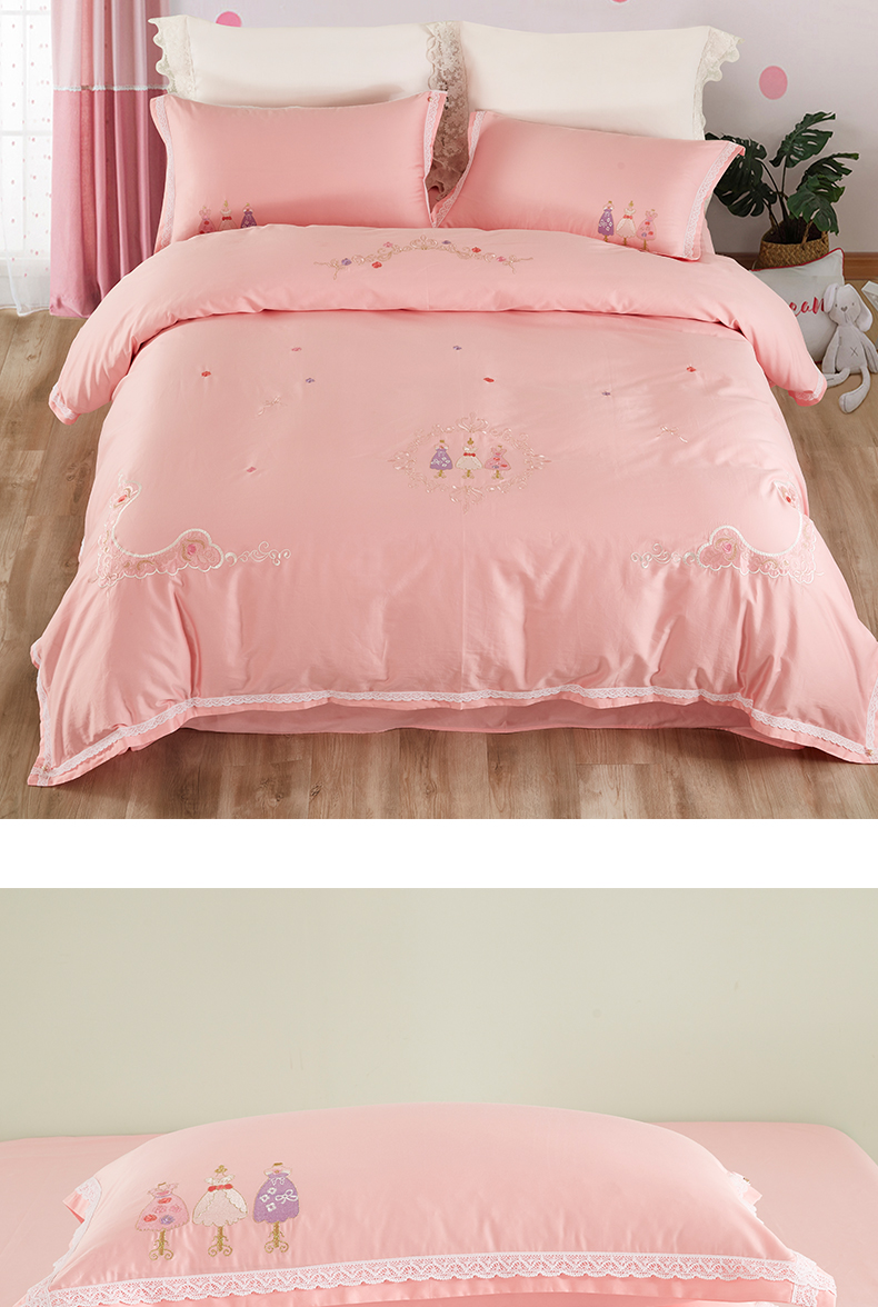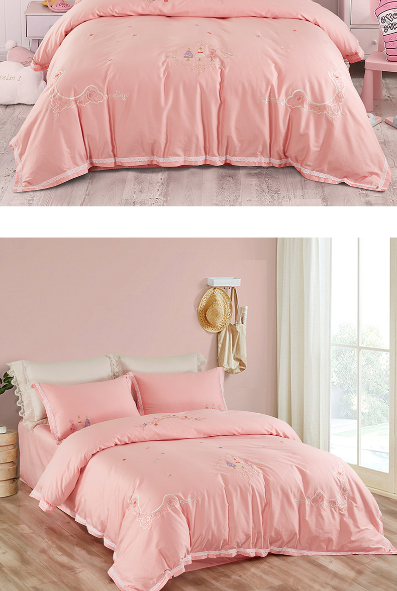 利路米60支长绒棉纯真粉色绣花四件套