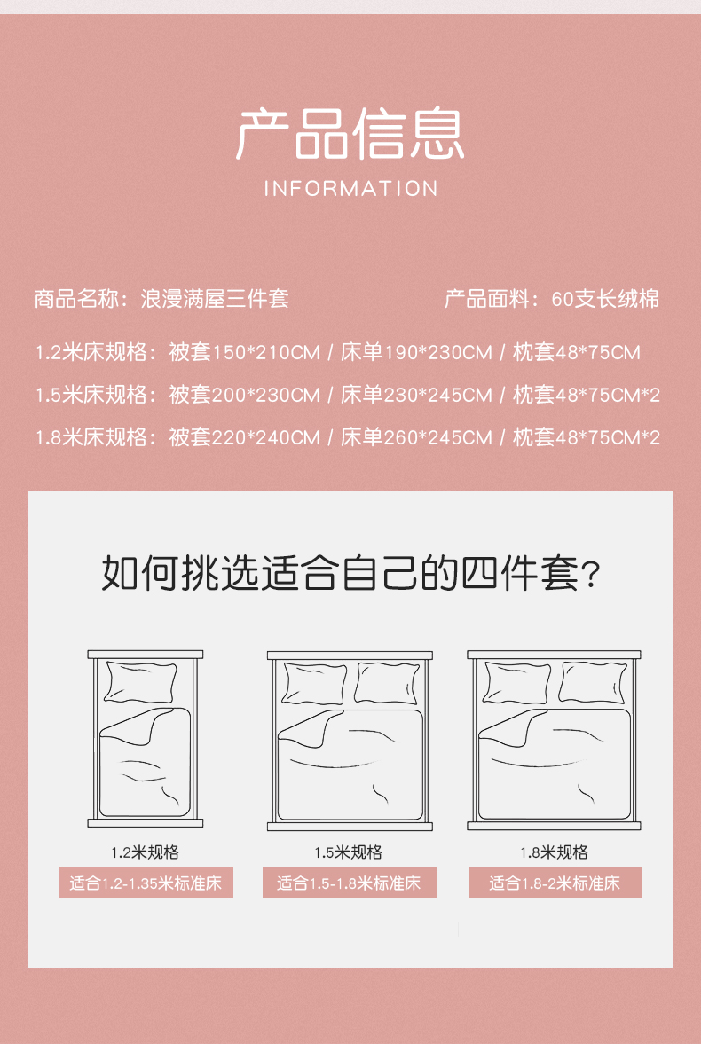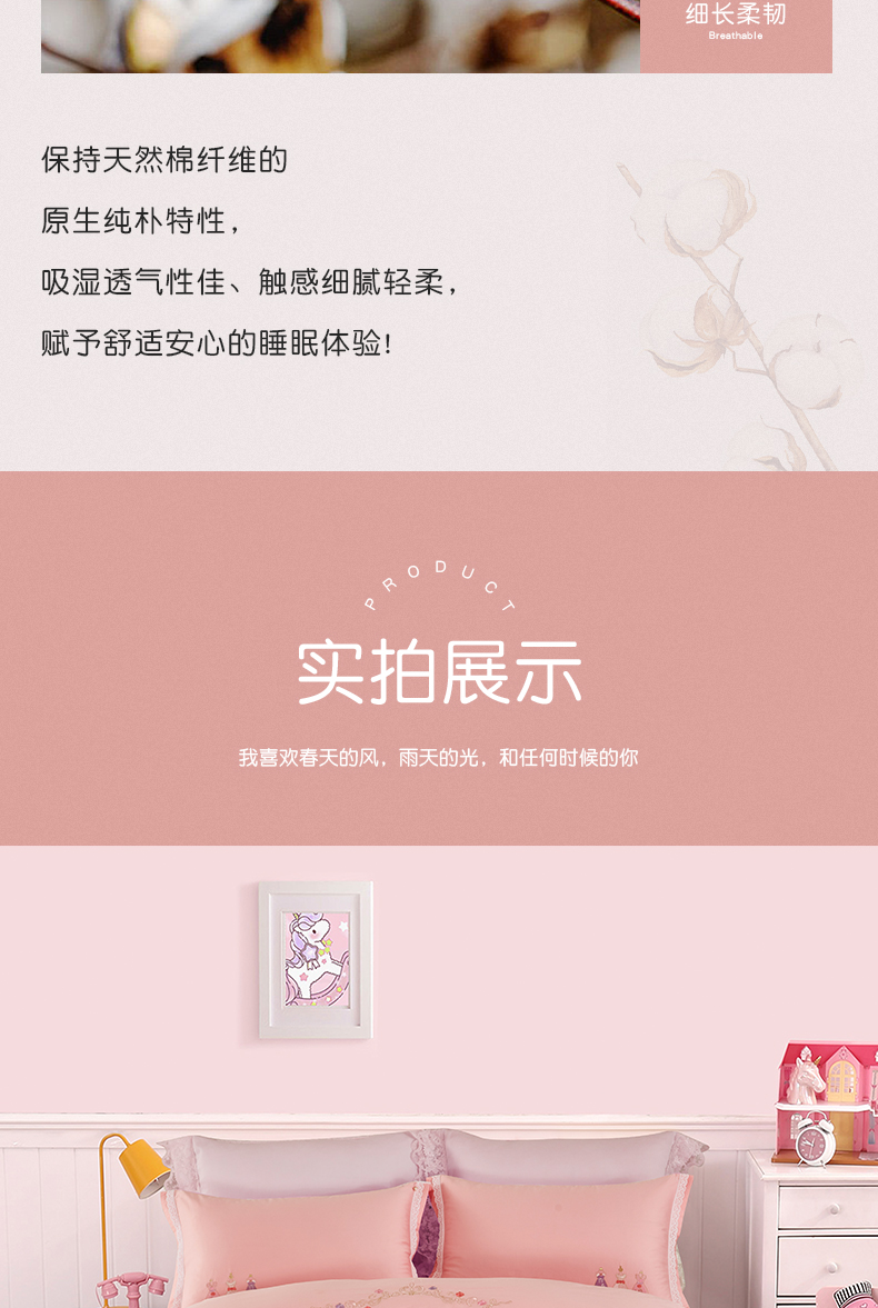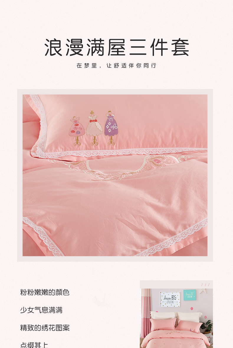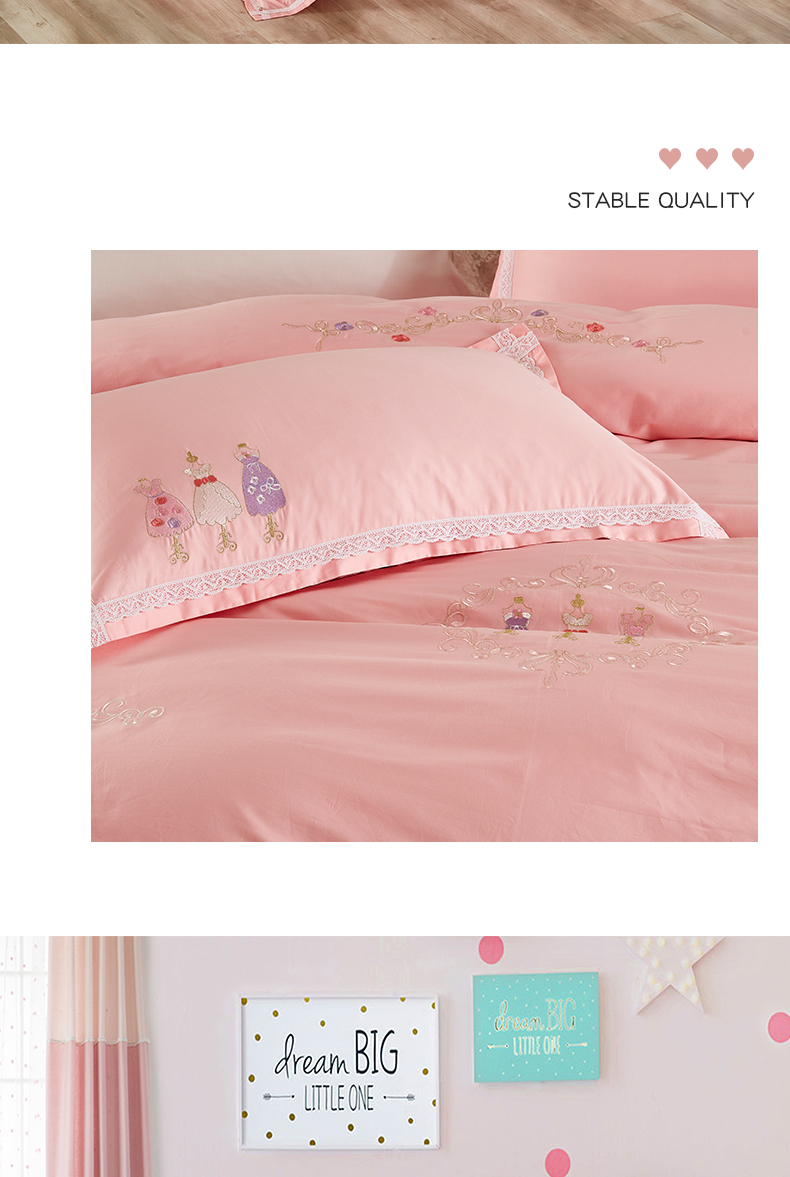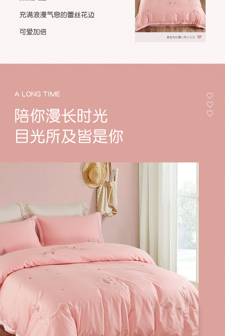 利路米60支长绒棉纯真粉色绣花四件套