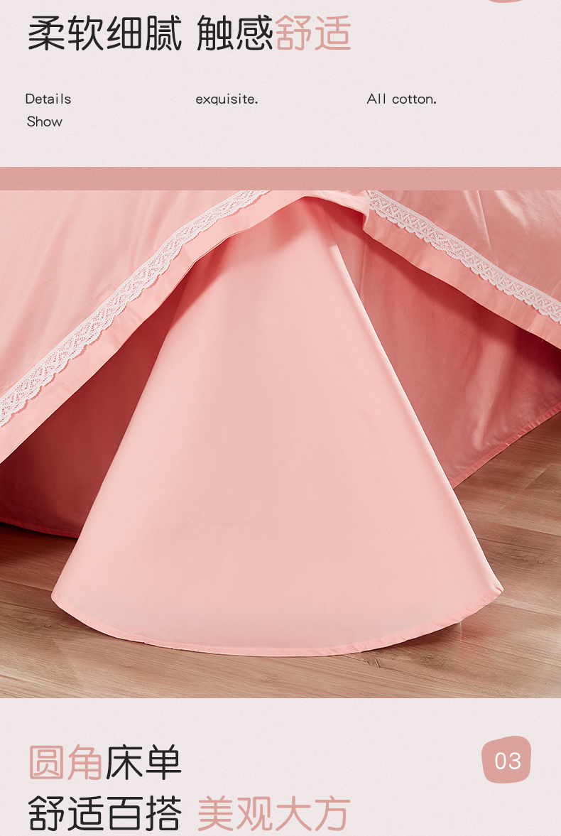 利路米纯色镂空边设计百支双股加密厚实缎纹四件套