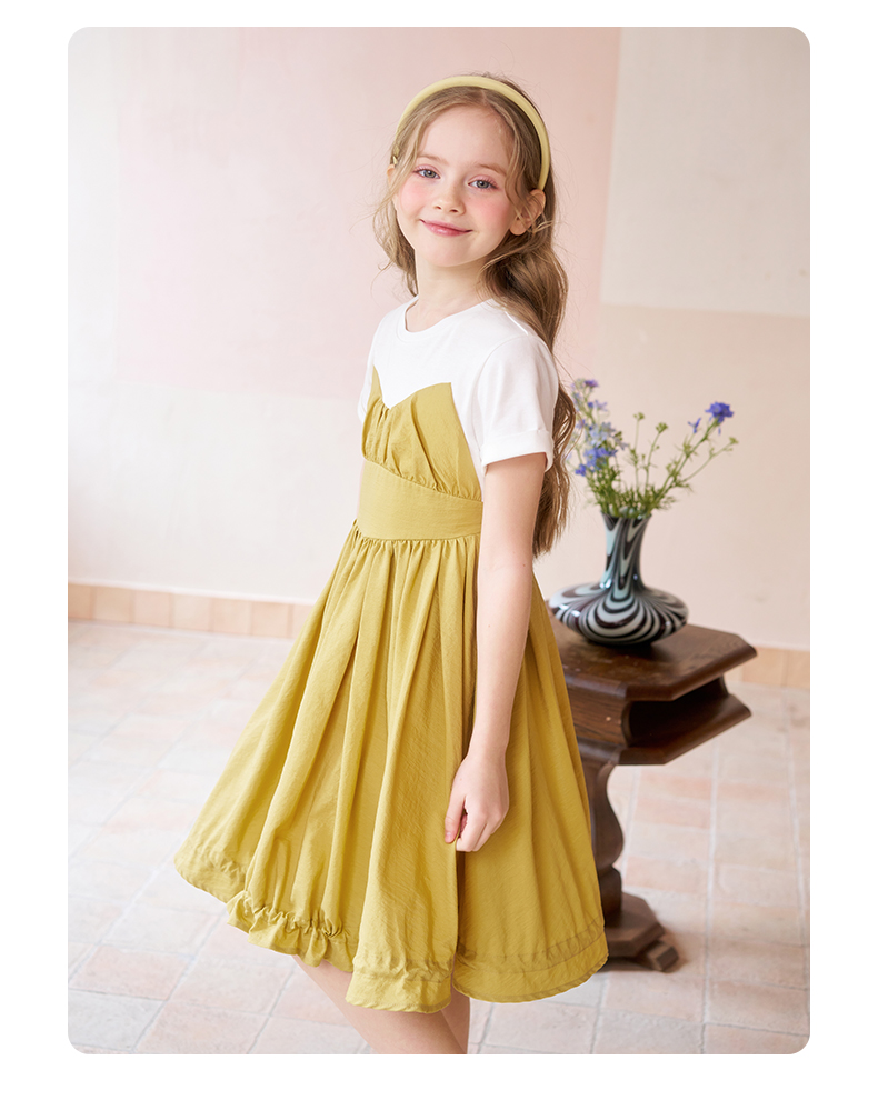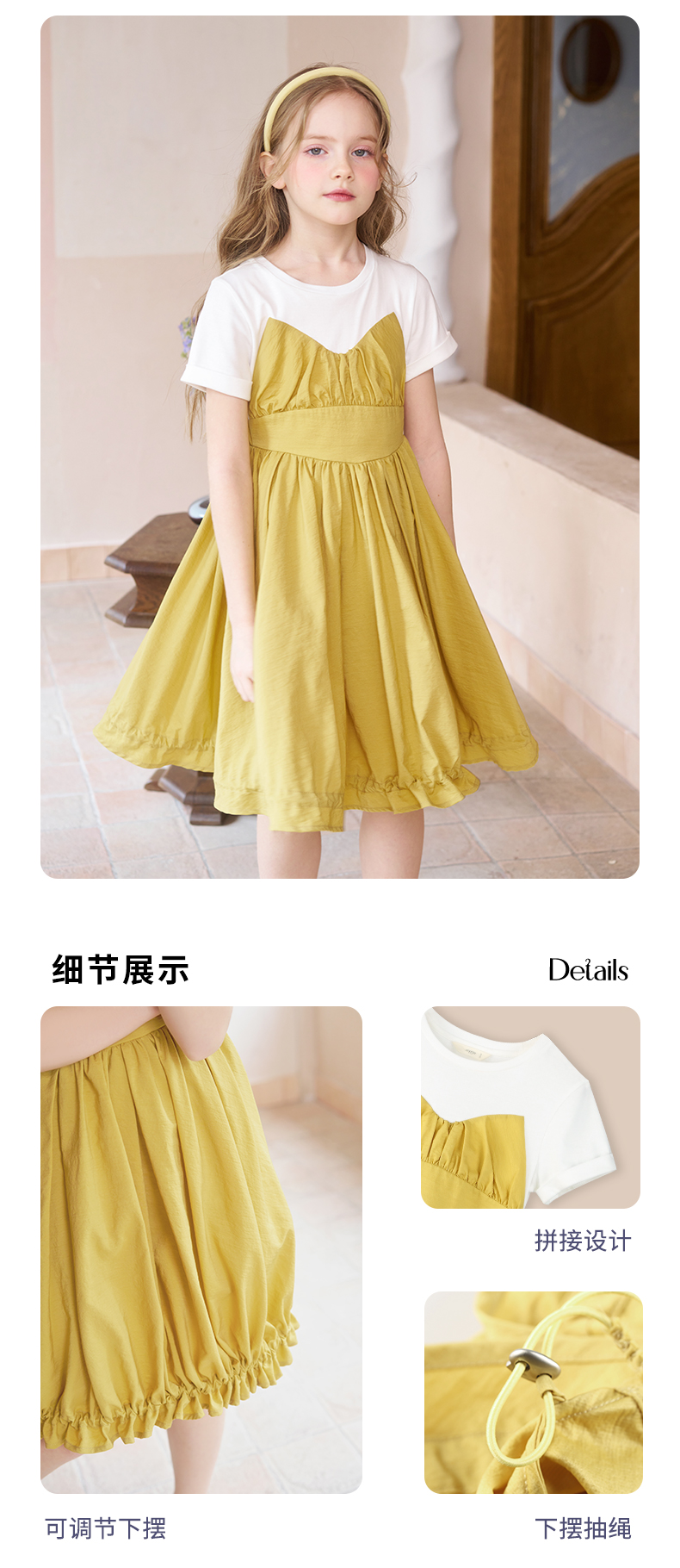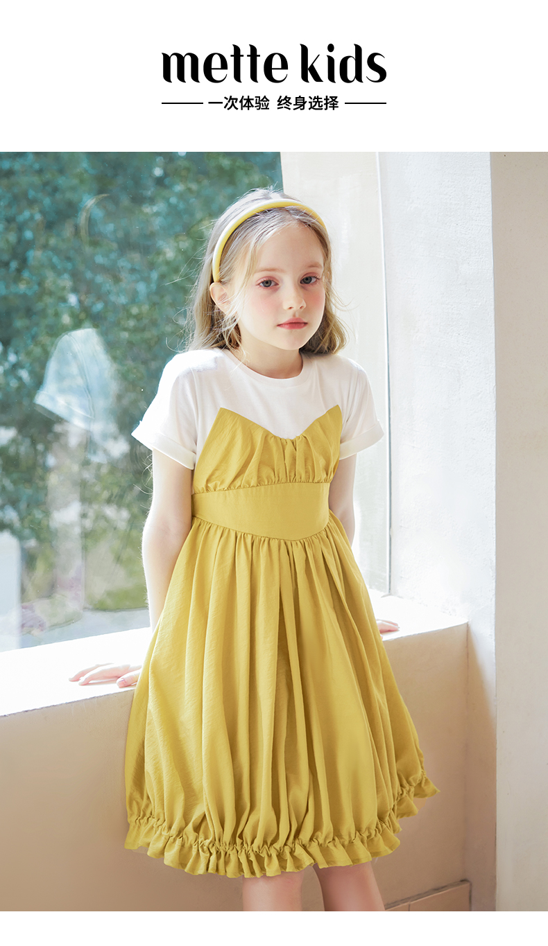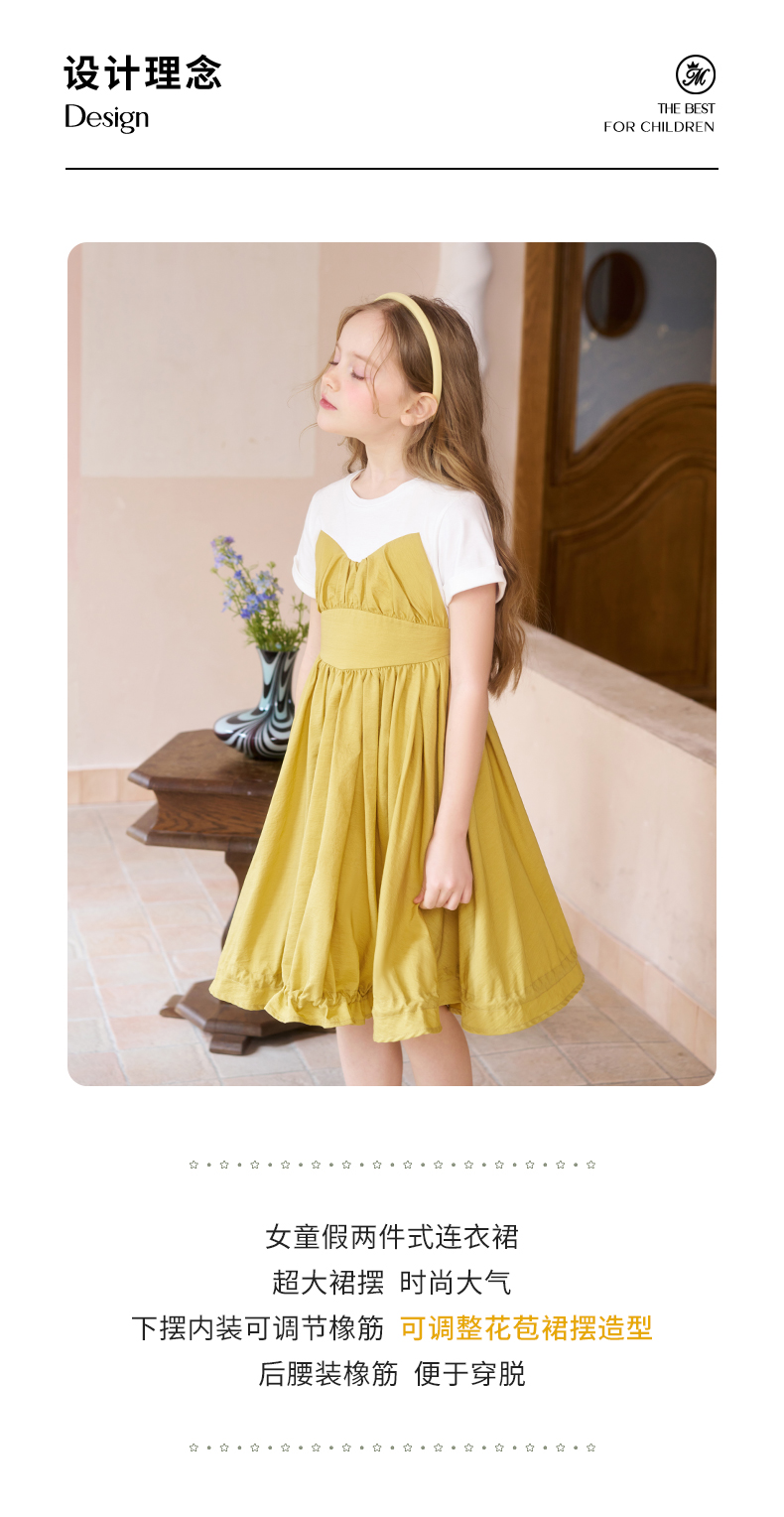 mettekids女童连衣裙儿童夏季新款洋气公主裙中大童假两件裙子