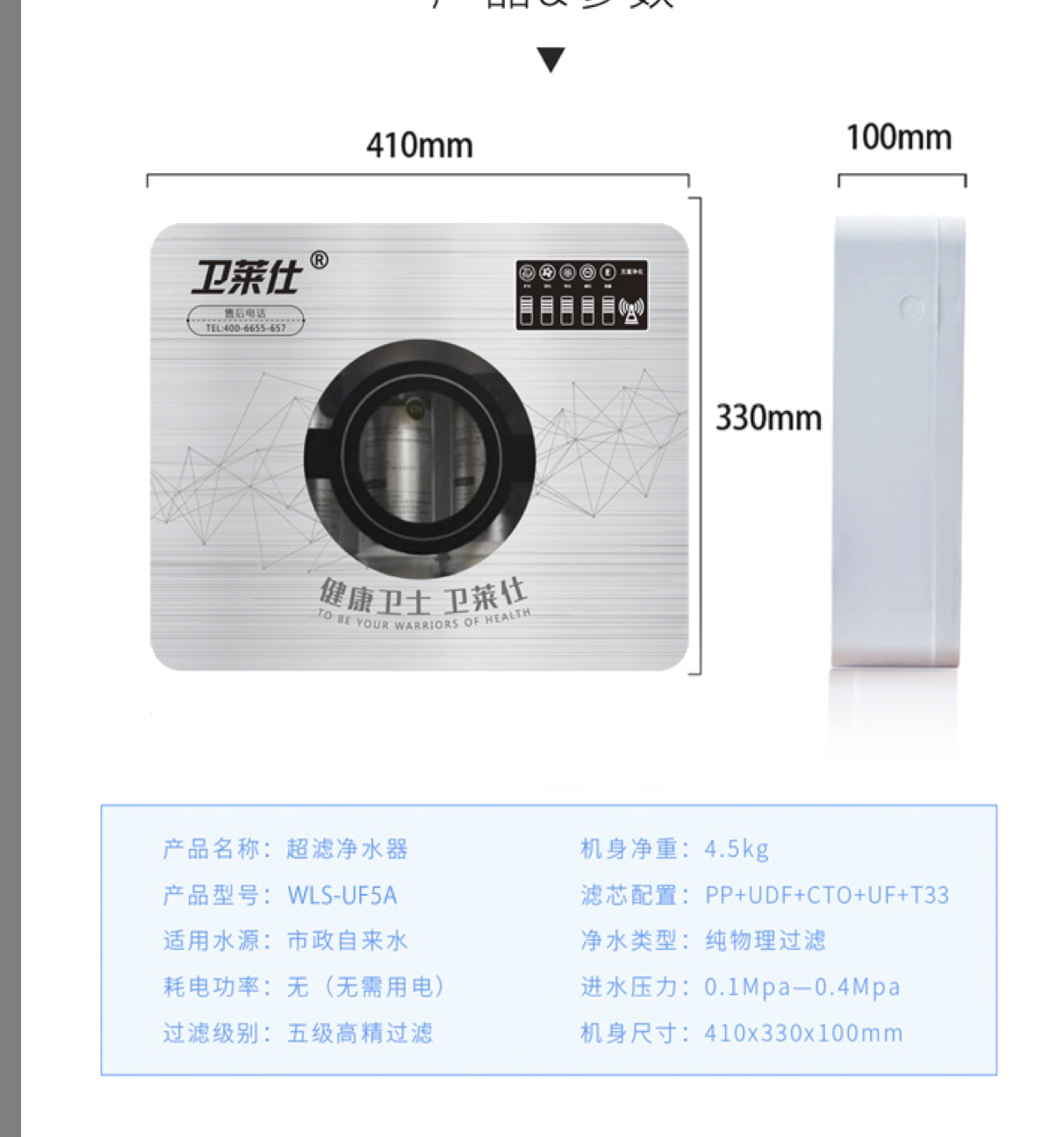 央视上榜品牌-家用五级超滤净水器-健康卫士卫莱士-1980元仅付一年质保+运费89!会员特权!