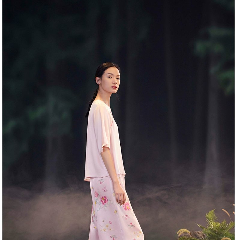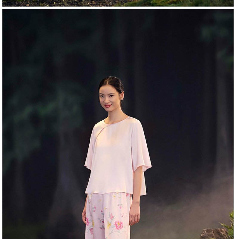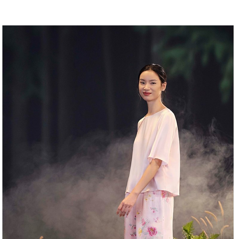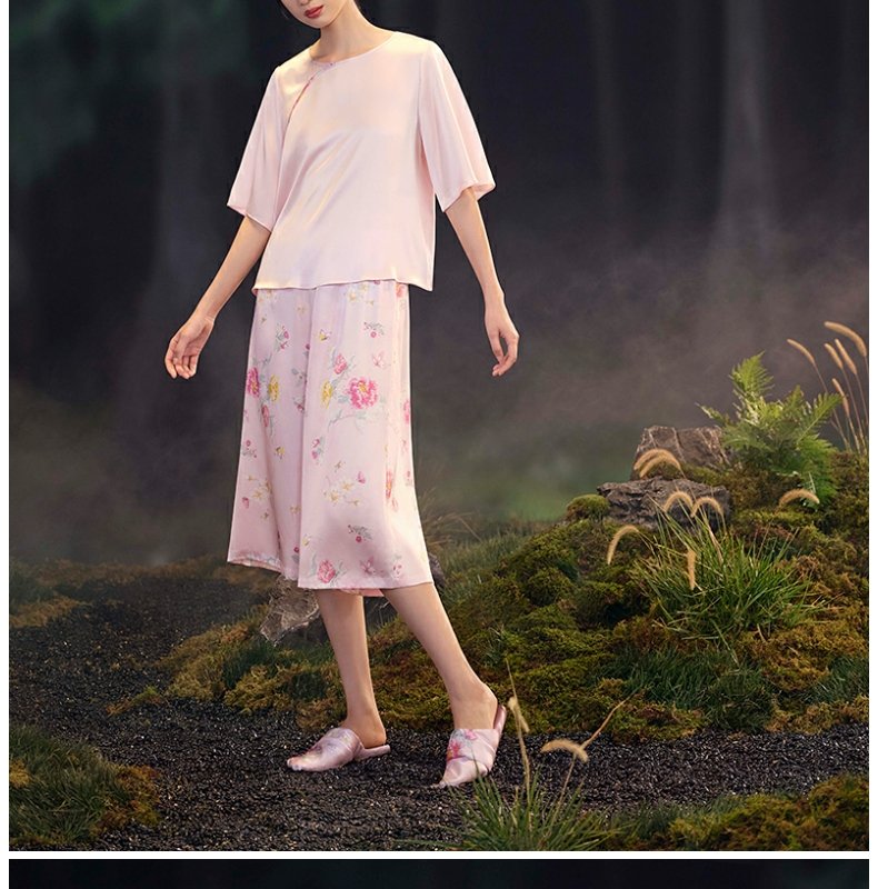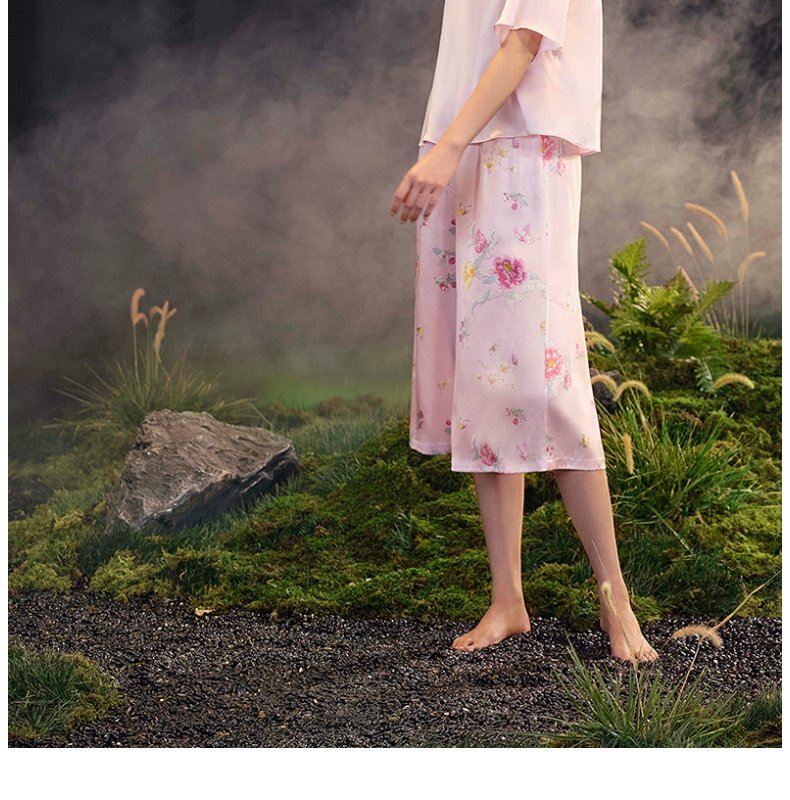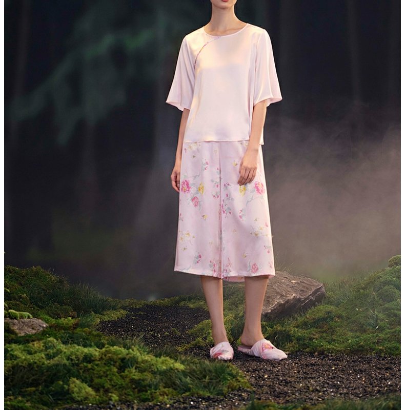 【皇锦】真丝印花五分短袖七分裤分身套装