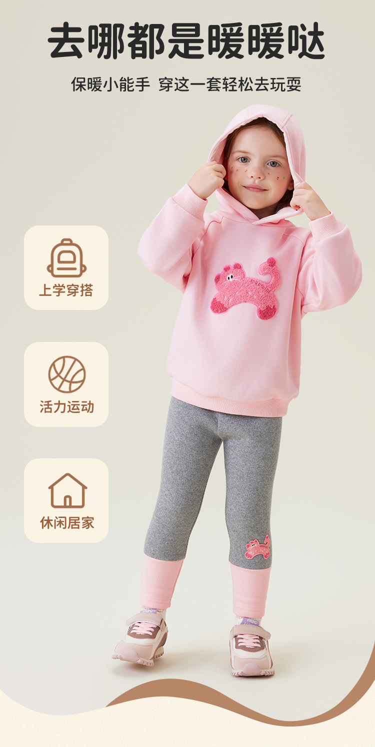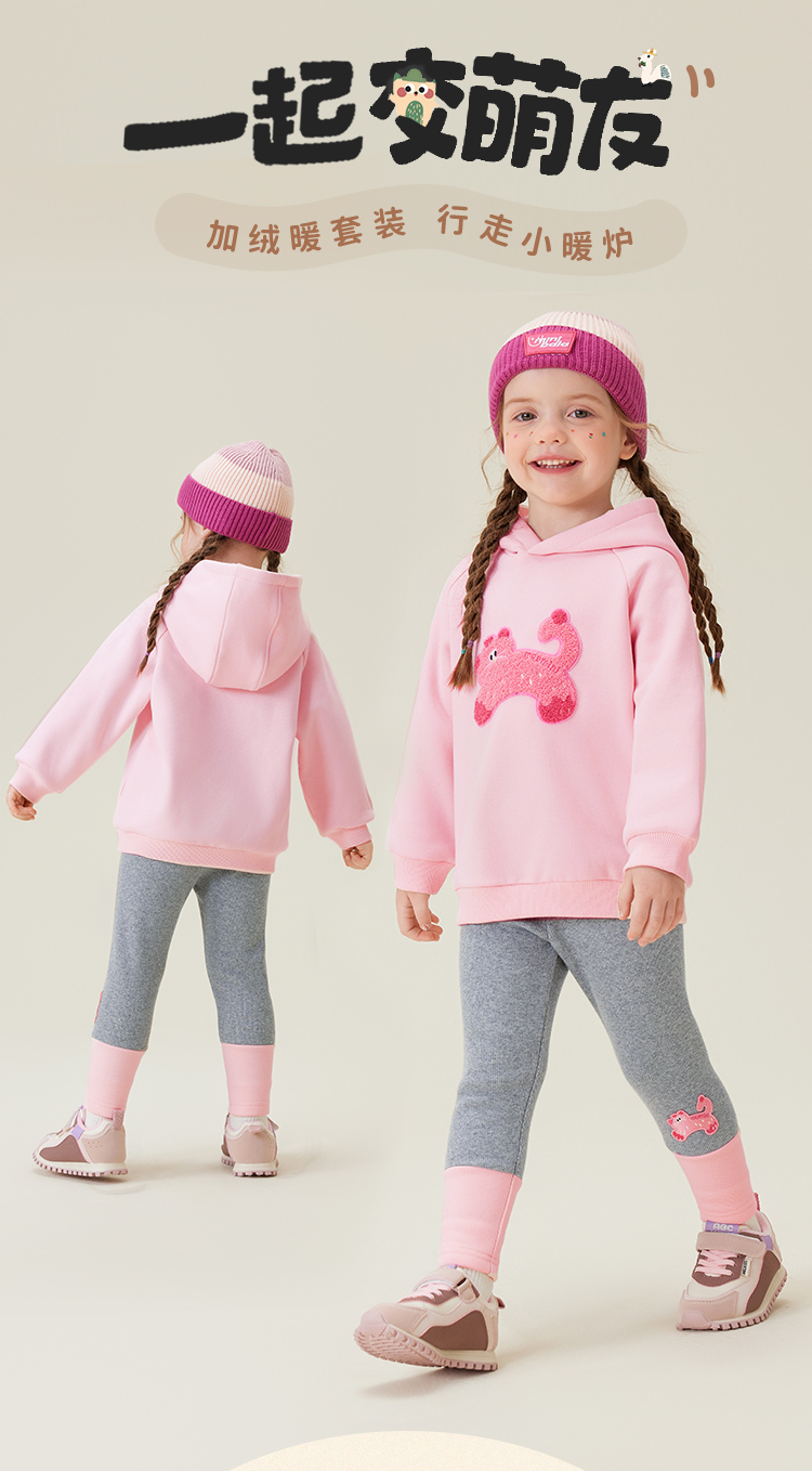【加绒2件套】【90-140】【MQDmini】女童加绒卫衣打底裤套装