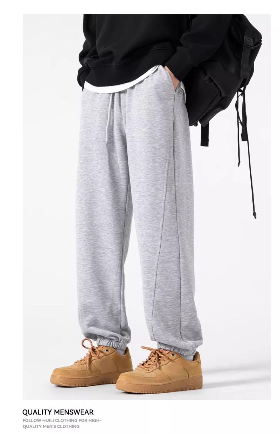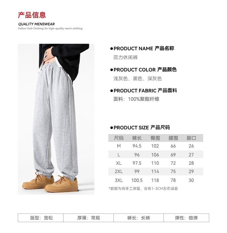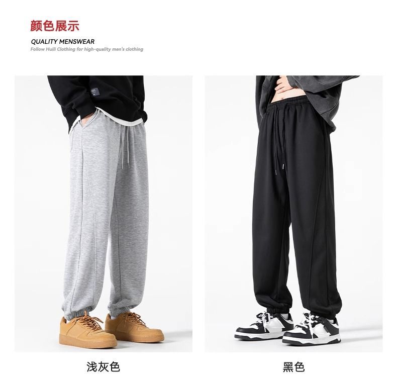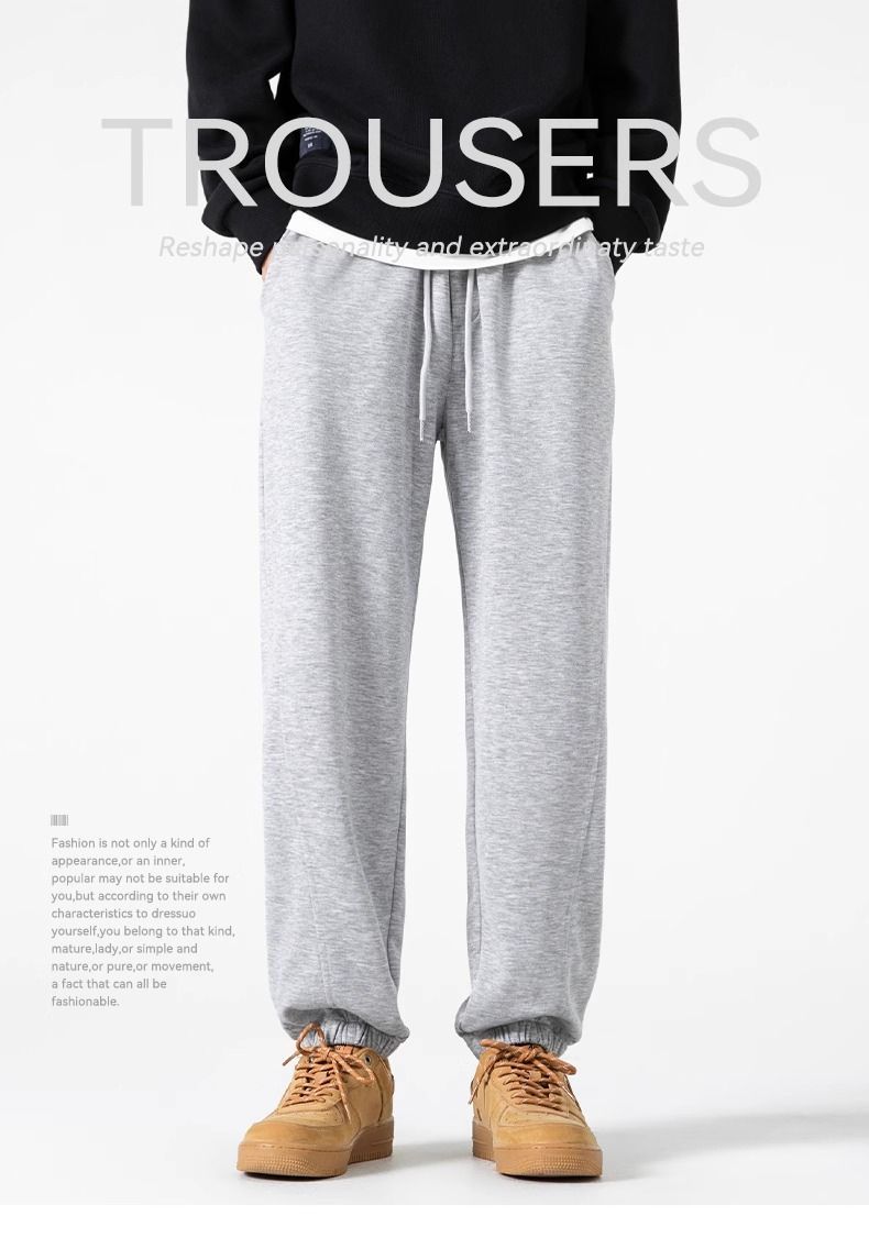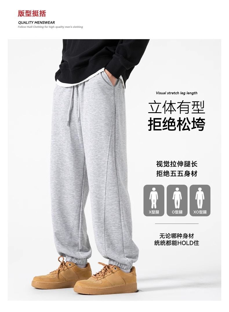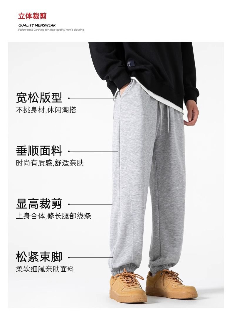 回力运动裤秋冬季裤子男加绒加厚保暖宽松休闲长裤灰色束脚卫裤男