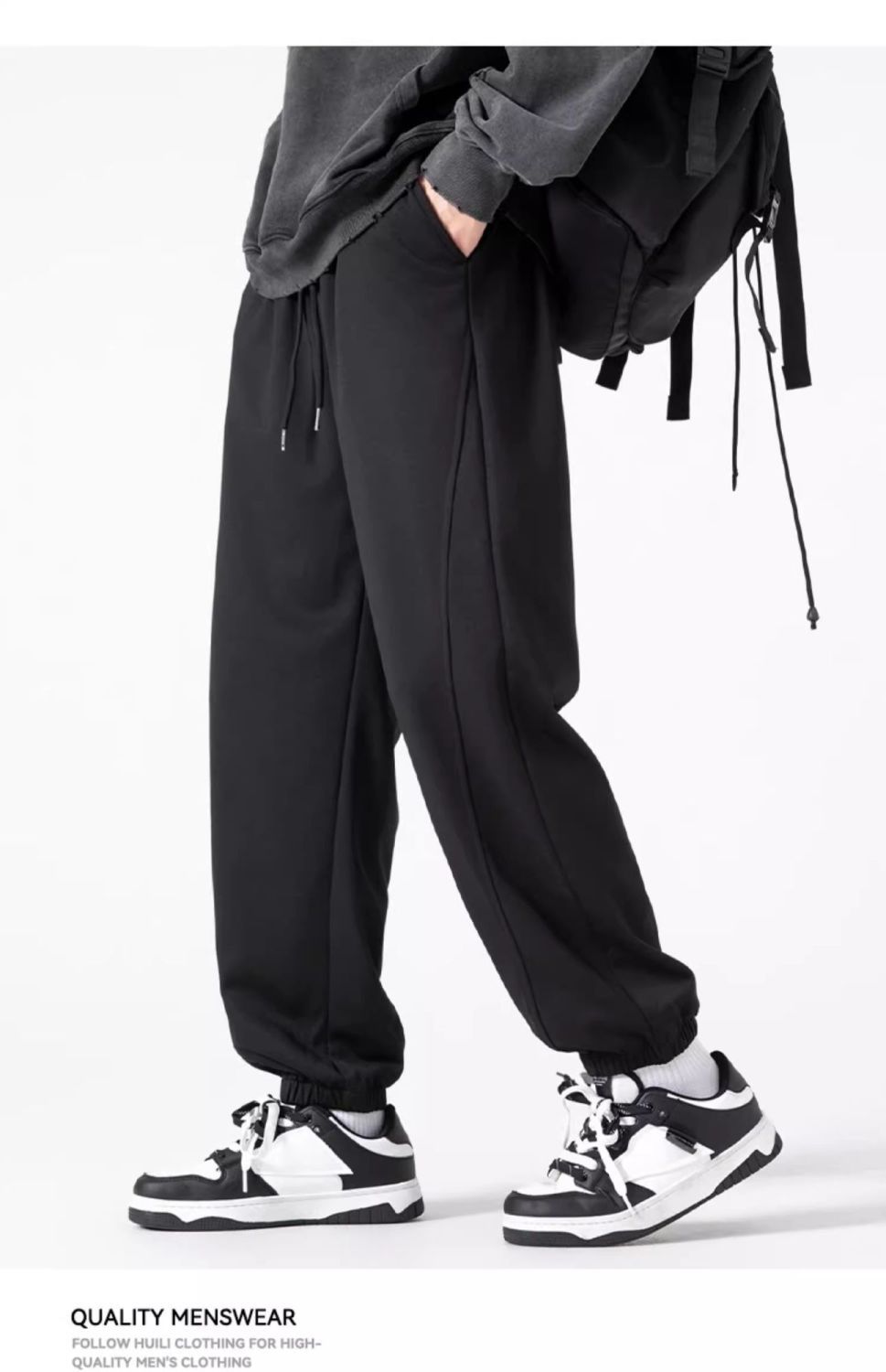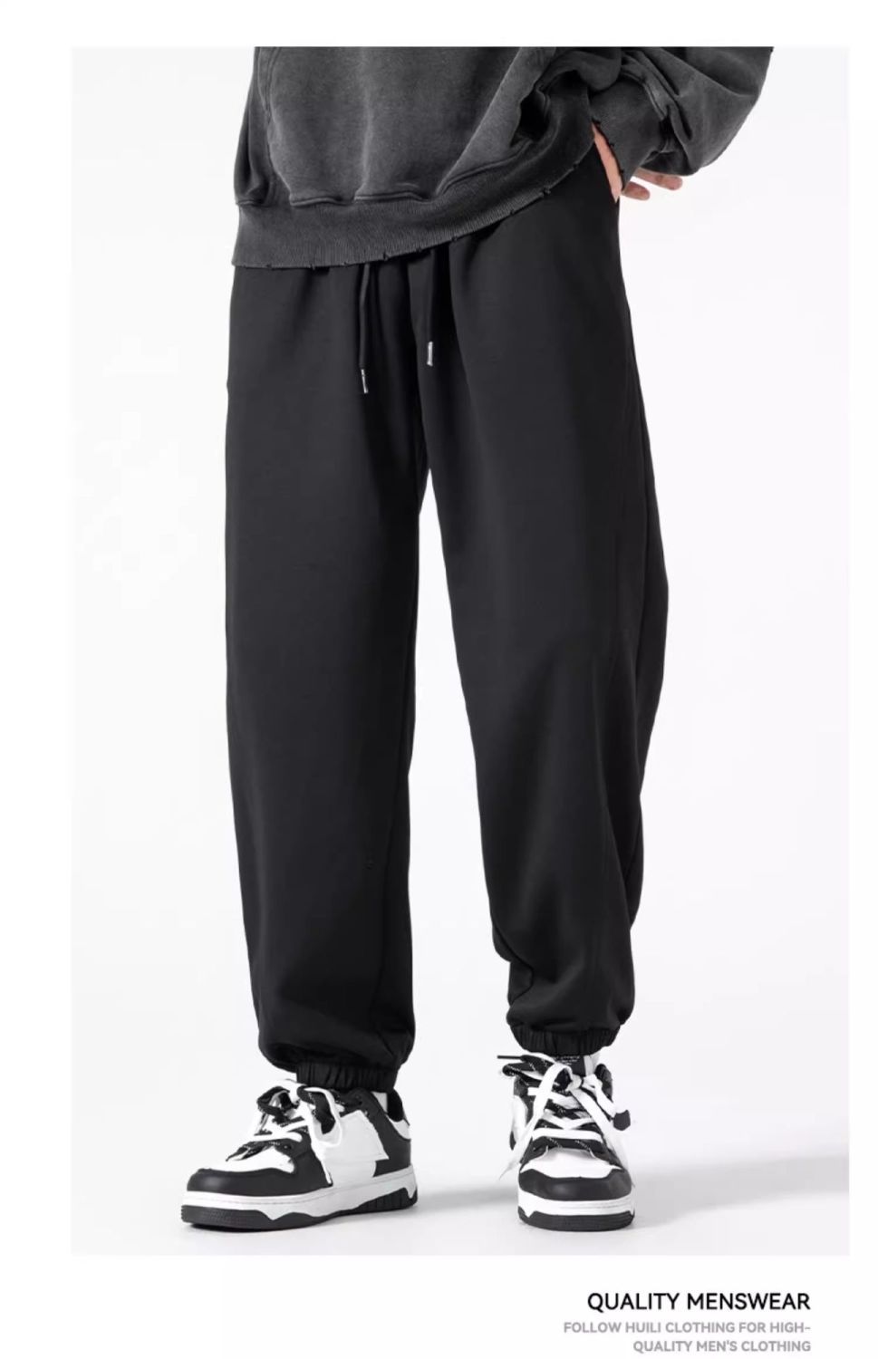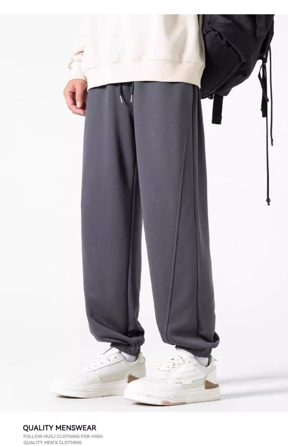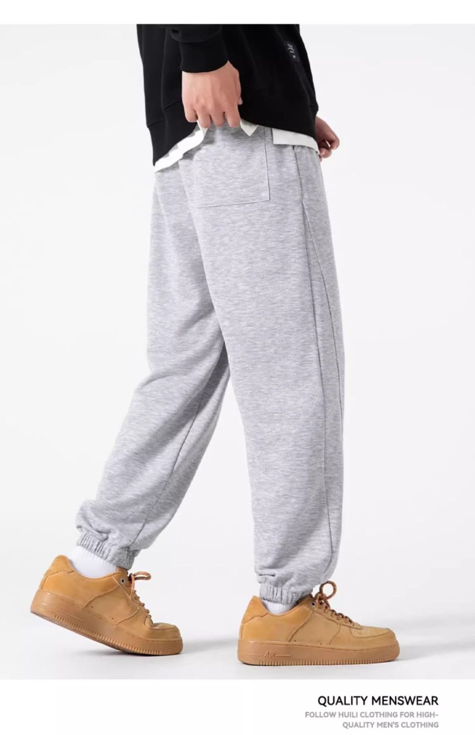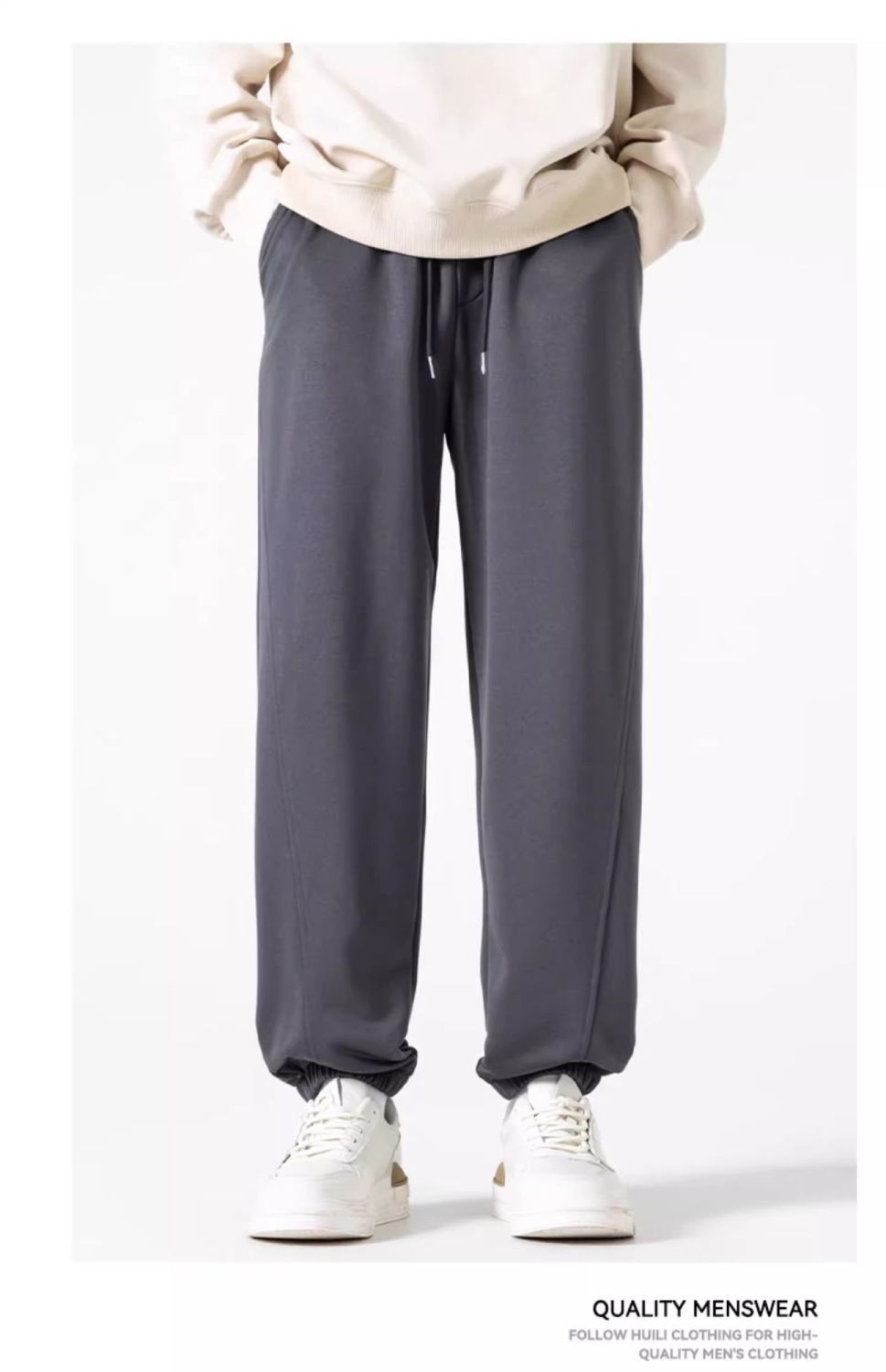 回力运动裤秋冬季裤子男加绒加厚保暖宽松休闲长裤灰色束脚卫裤男