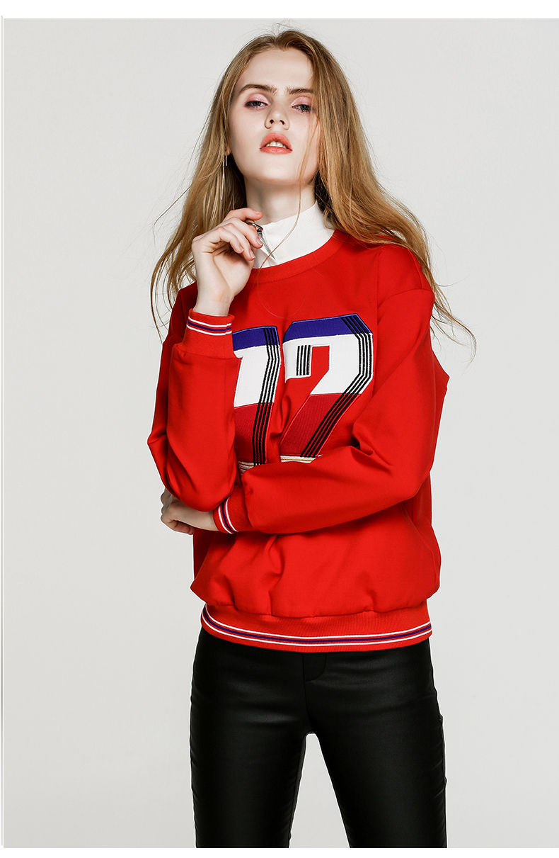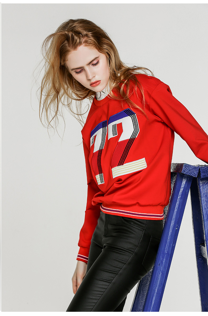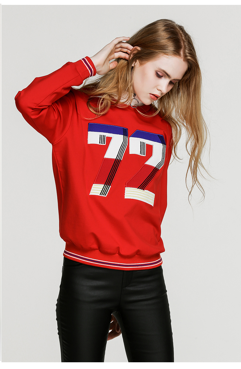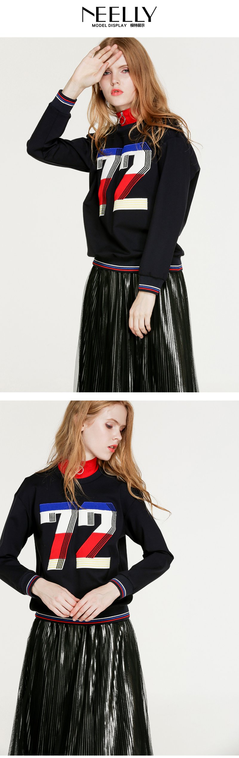 NEELLY纳俪新款女圆领数字印花T恤宽松显瘦套头短款卫衣