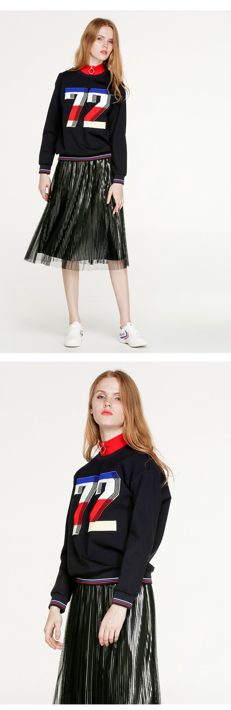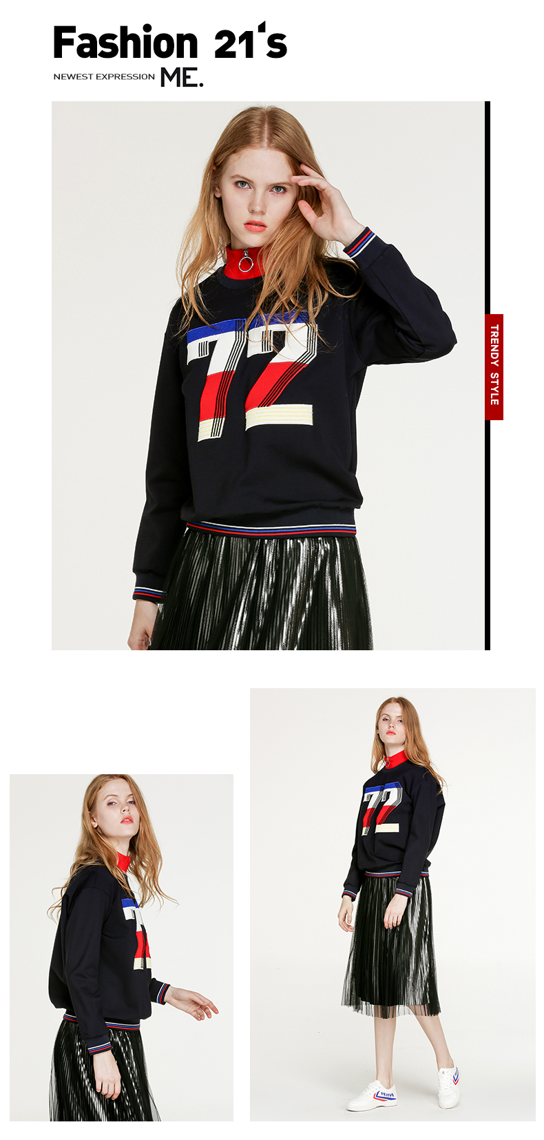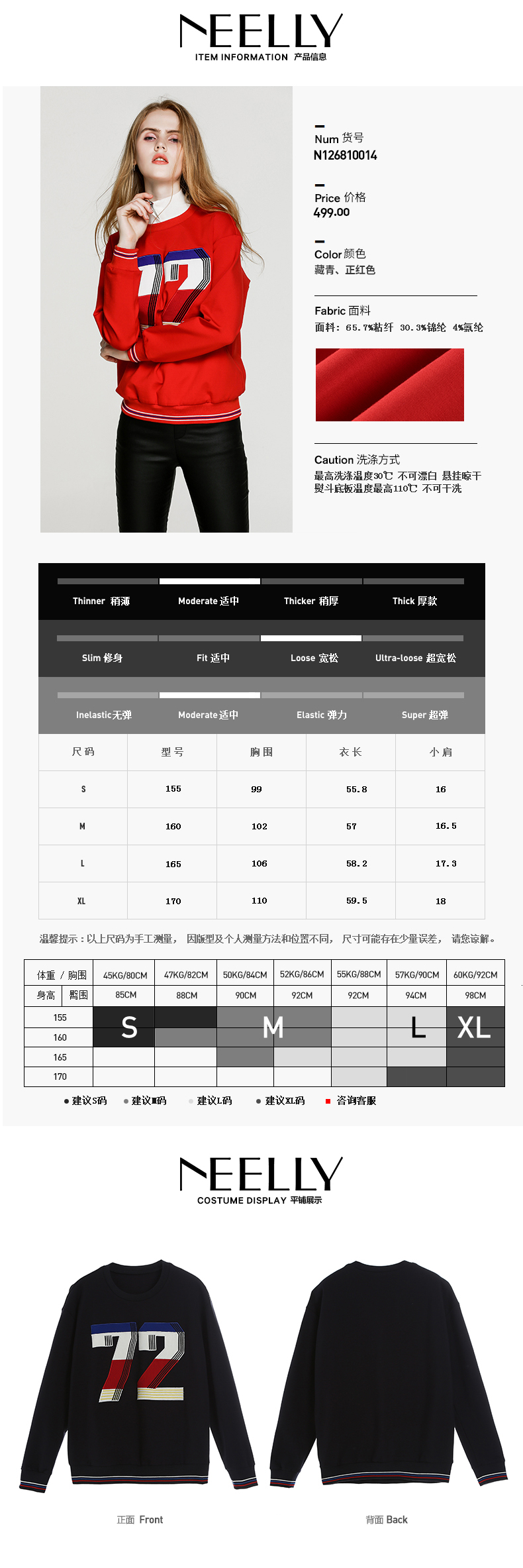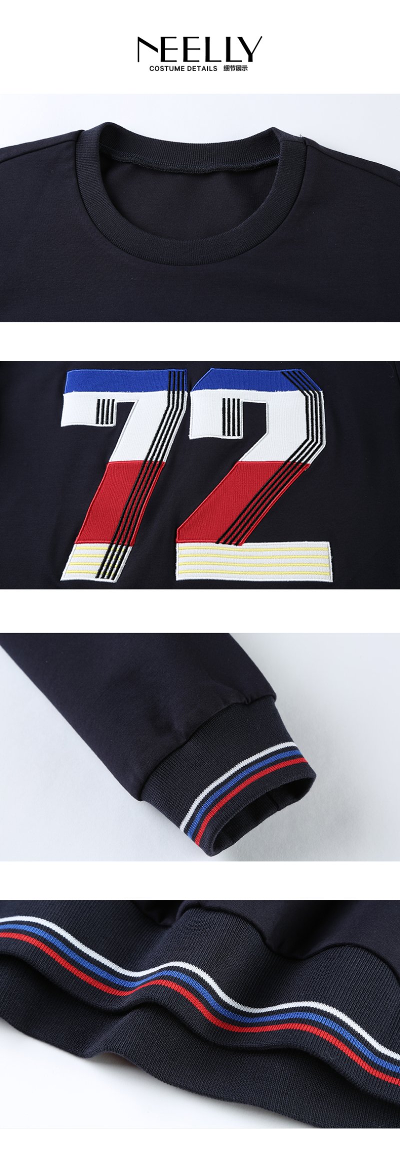 NEELLY纳俪新款女圆领数字印花T恤宽松显瘦套头短款卫衣