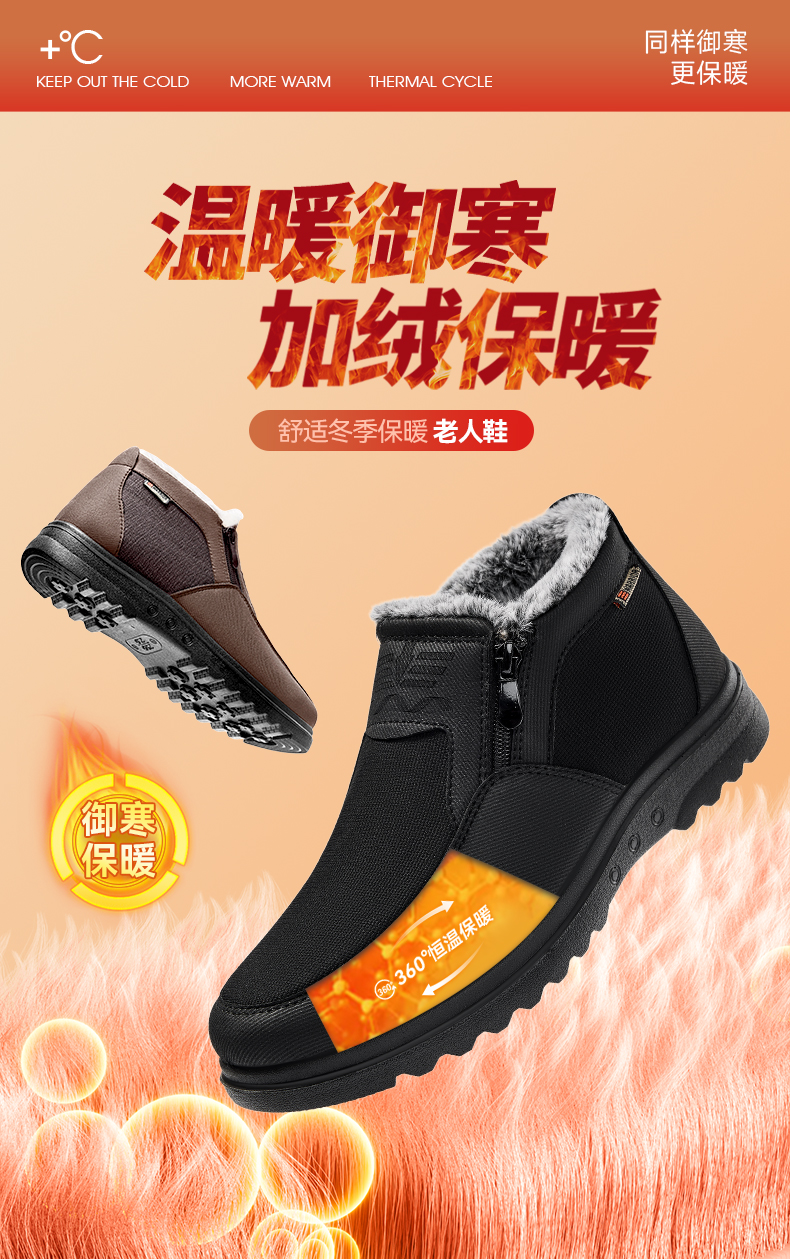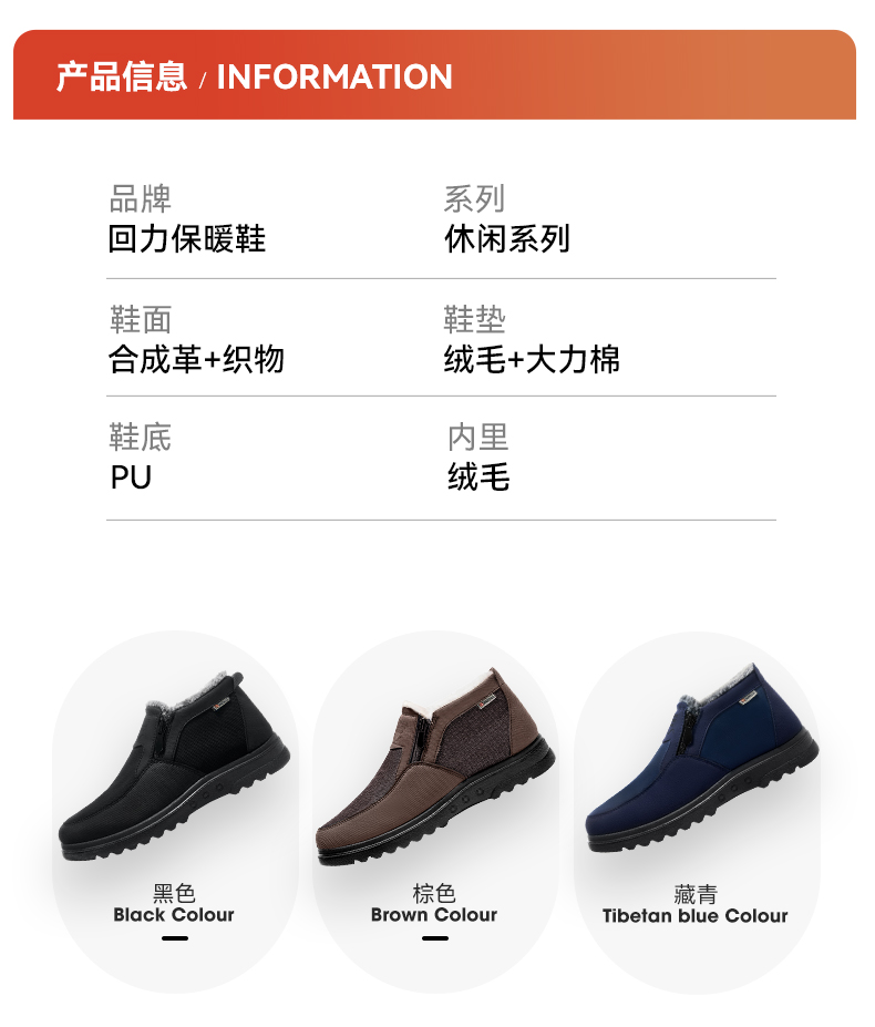 回力老北京布鞋冬季棉鞋男加绒加厚中老年爸爸鞋保暖老人鞋雪地靴