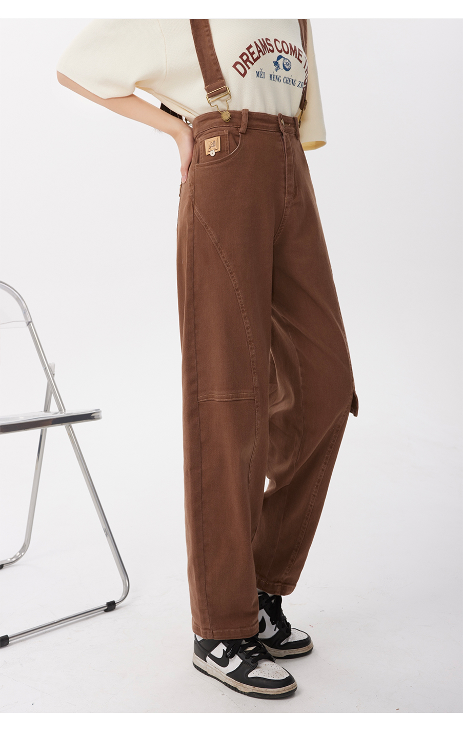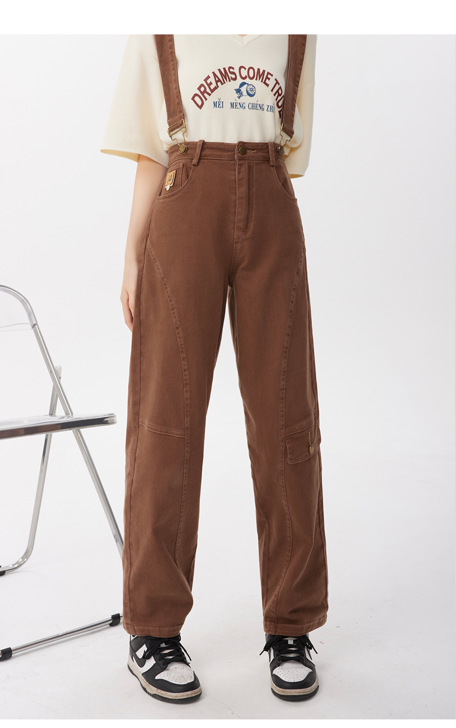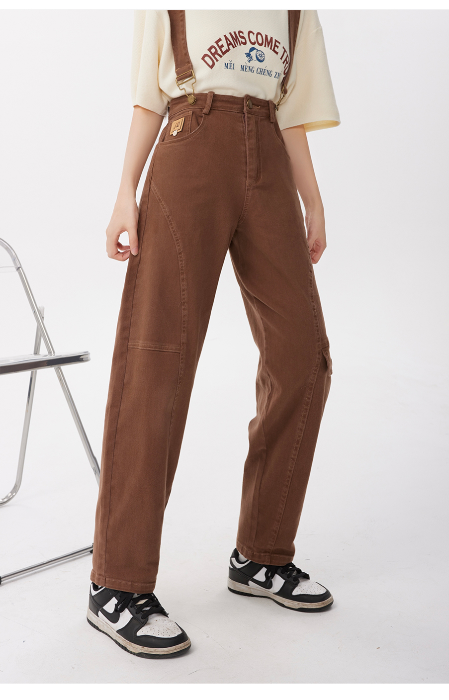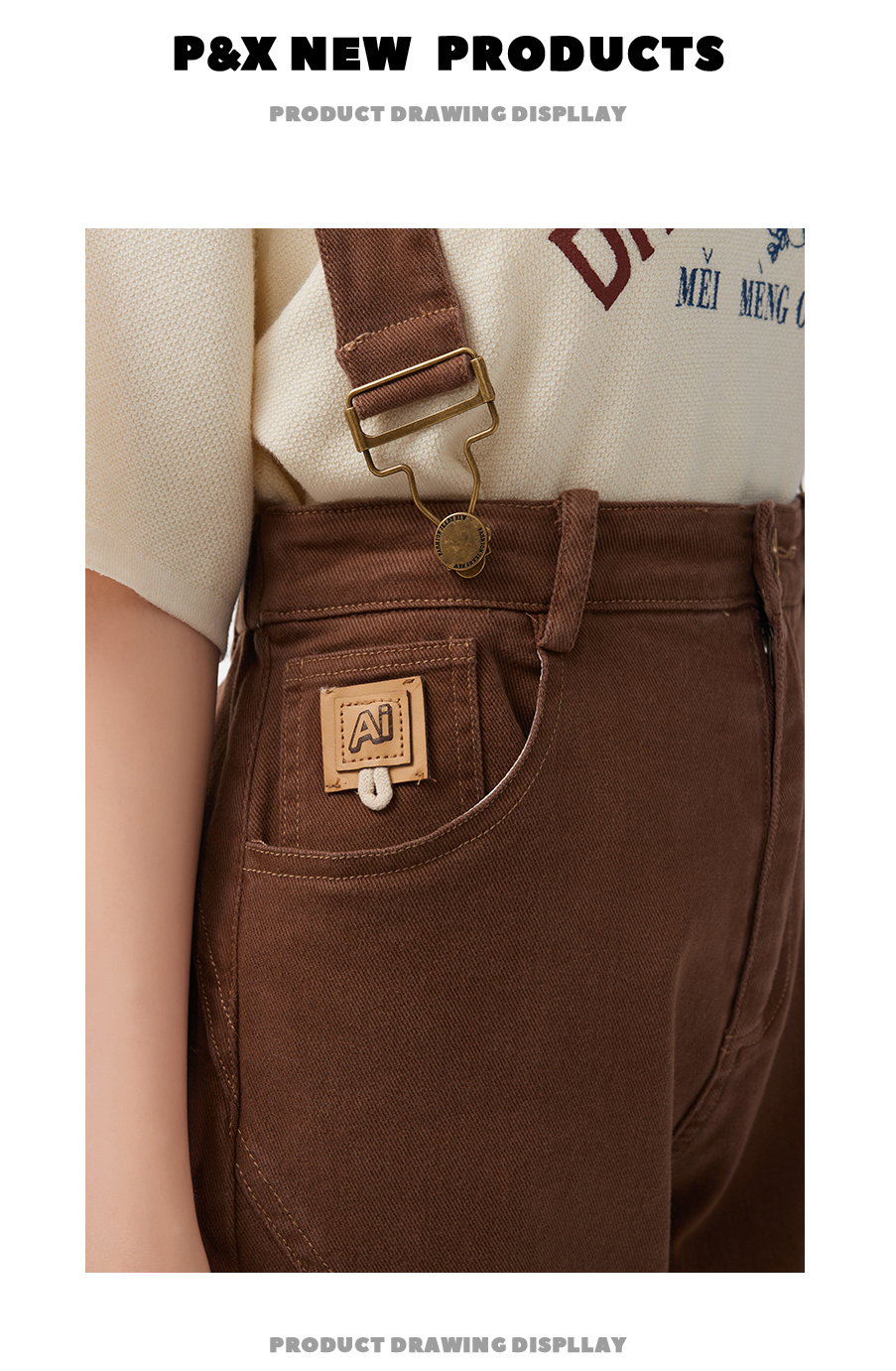 P&X设计师女装2023夏季 牛仔背带长裤H型休闲 823230163 咖啡