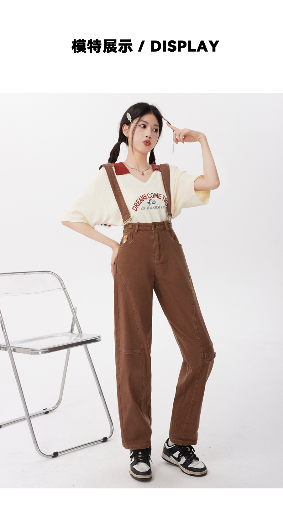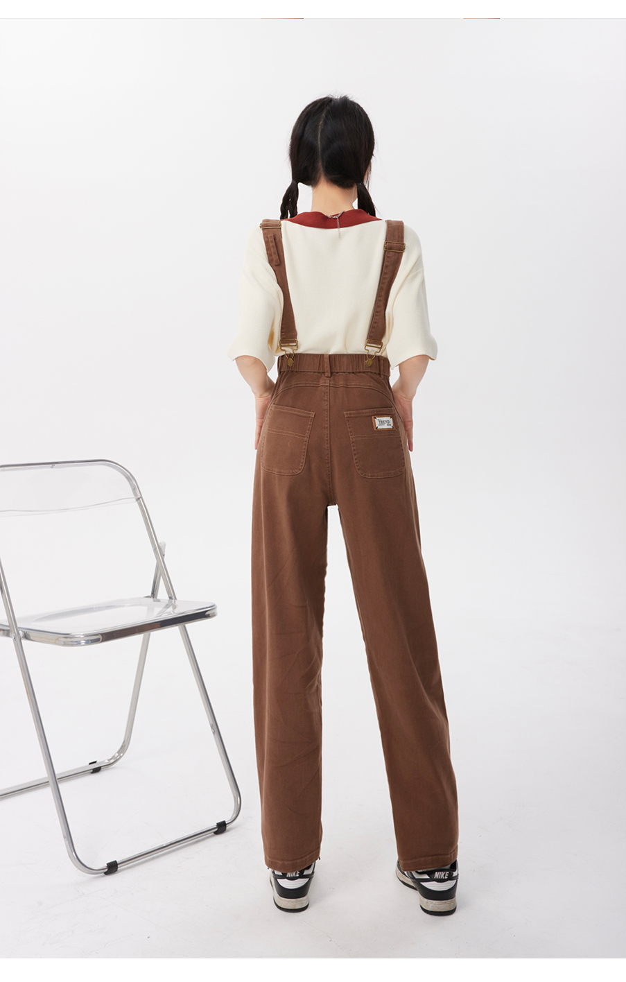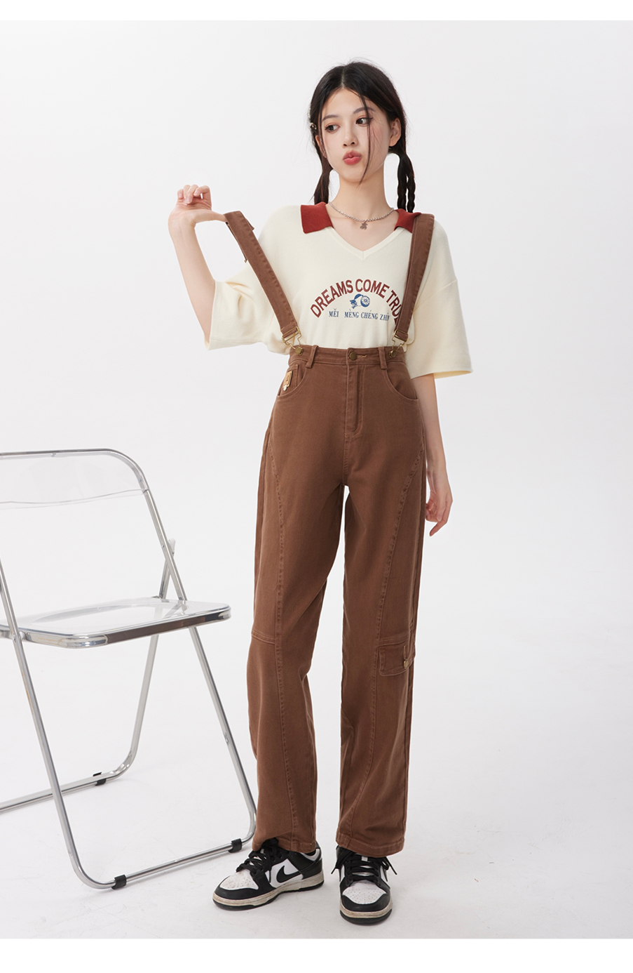 P&X设计师女装2023夏季 牛仔背带长裤H型休闲 823230163 咖啡