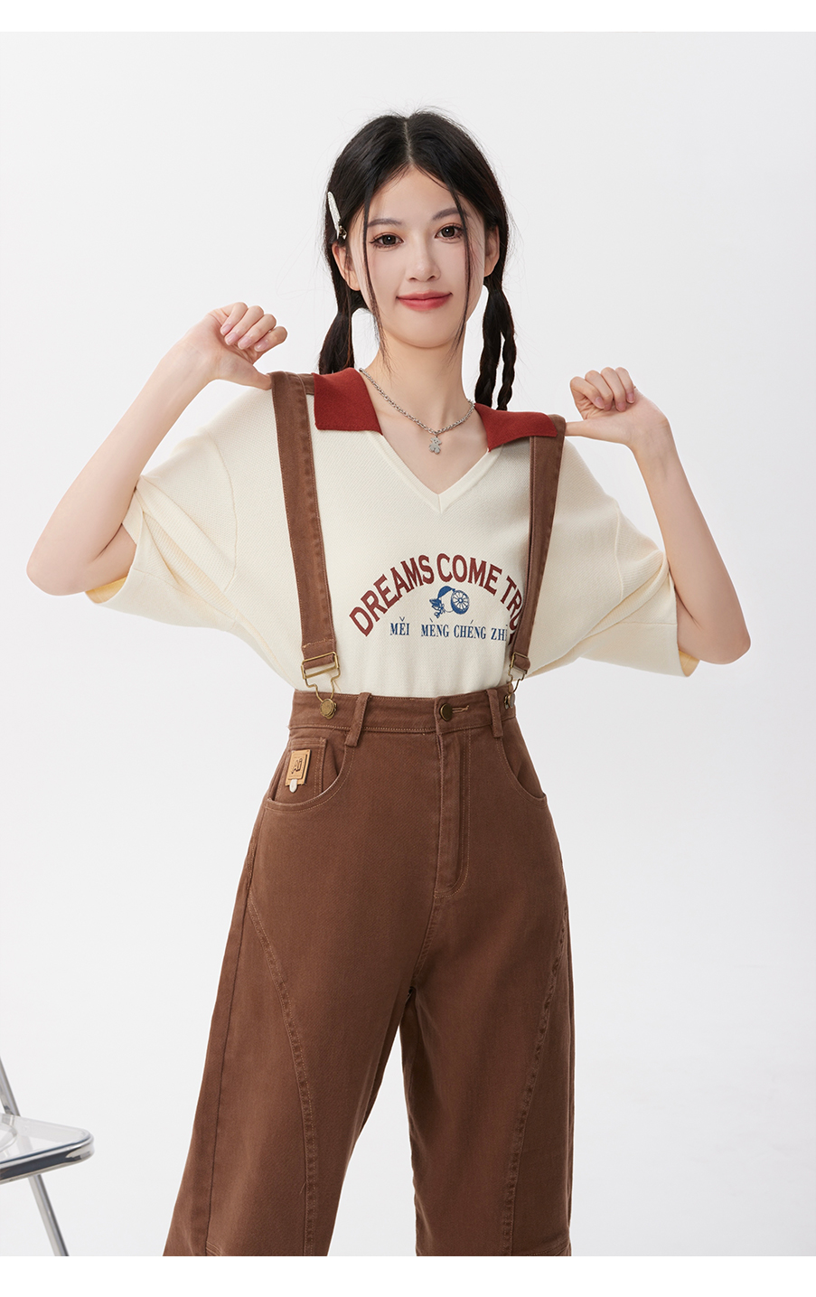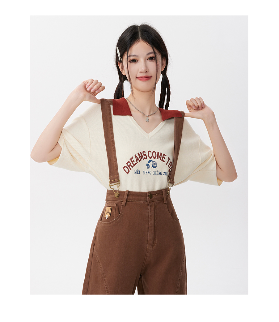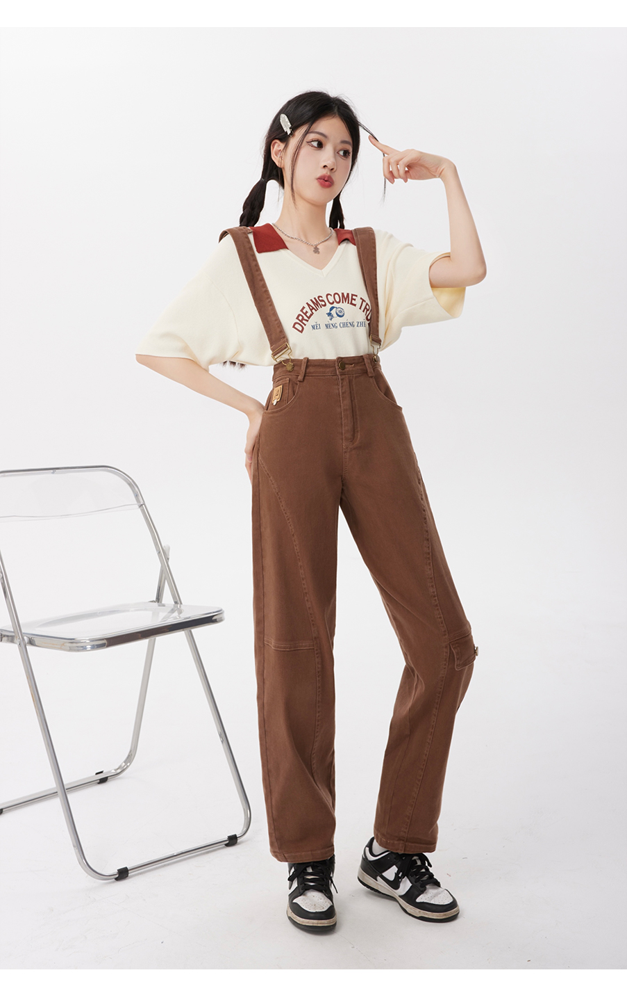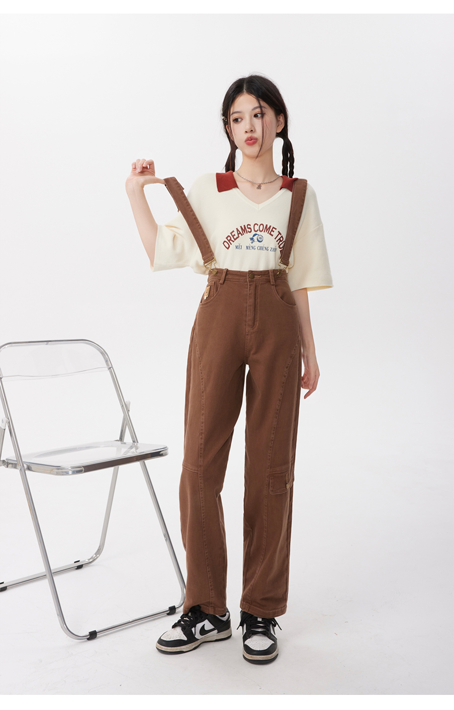 P&X设计师女装2023夏季 牛仔背带长裤H型休闲 823230163 咖啡