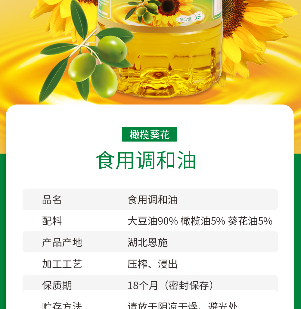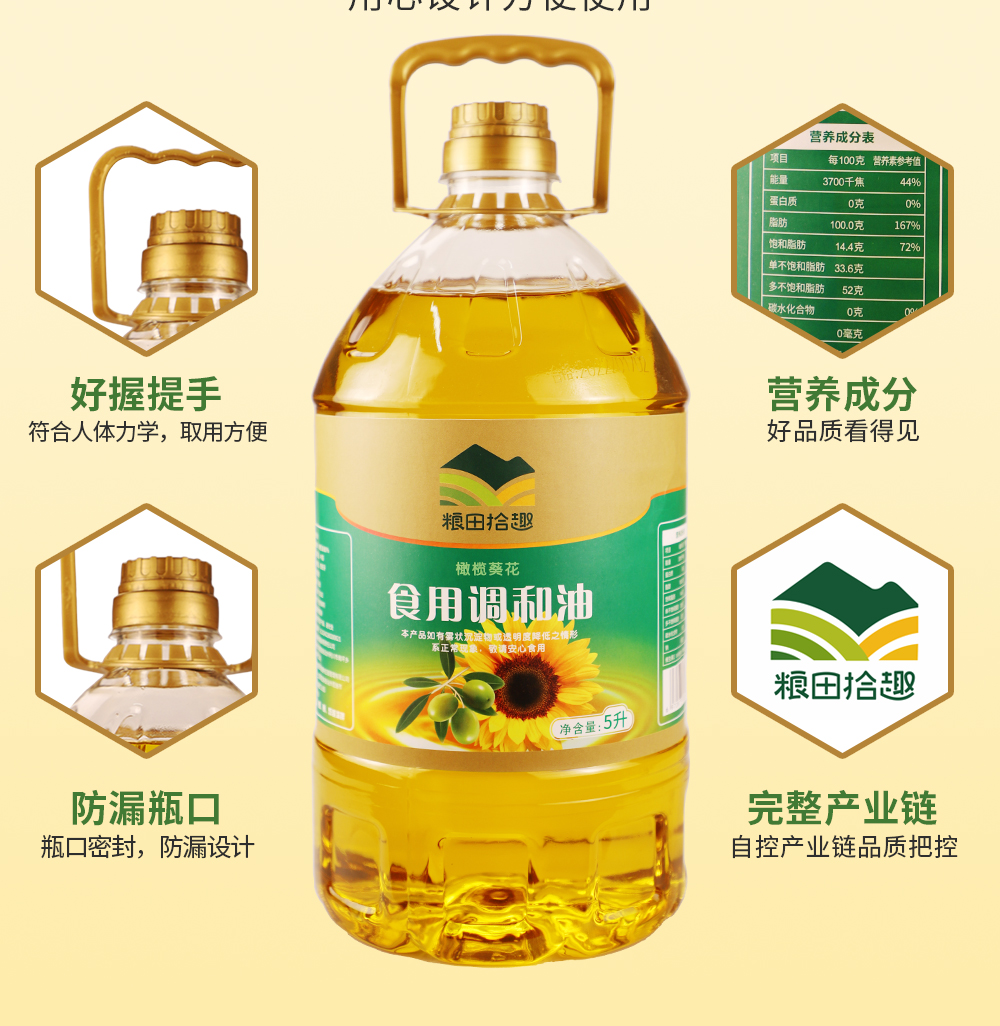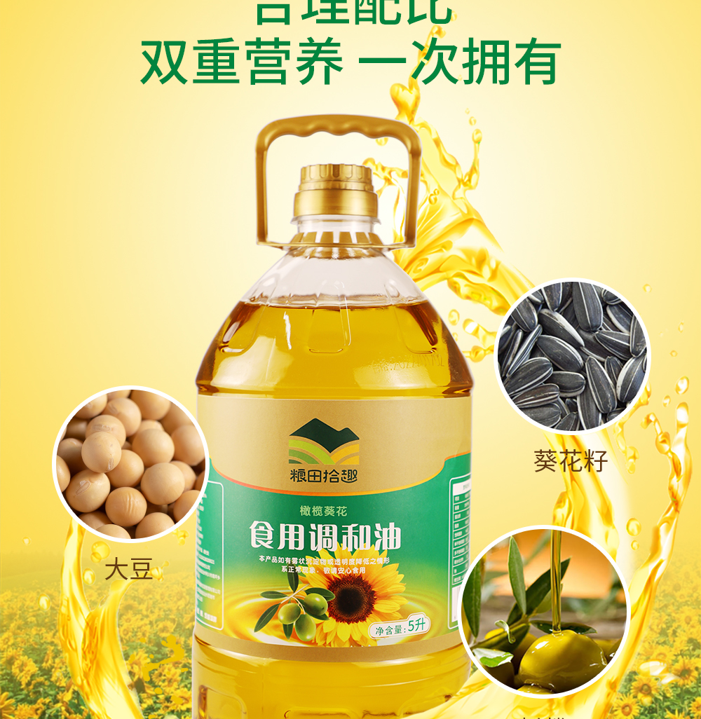 【恩施】粮田拾趣大豆葵花籽橄榄食用调和油5L