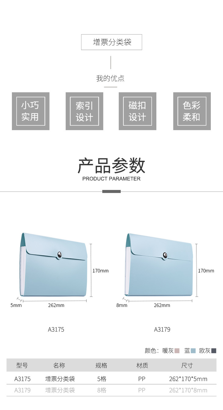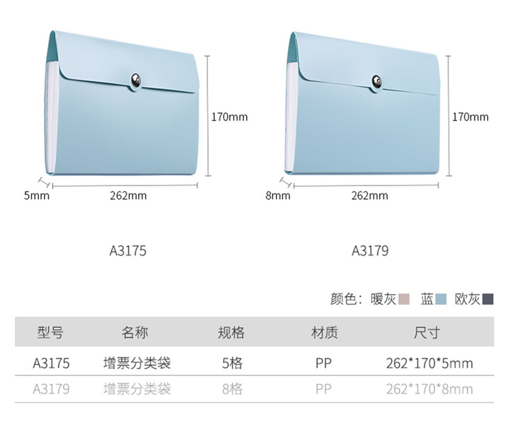 齐心风琴式增票分类袋5格A3175收纳文件袋多层文件夹