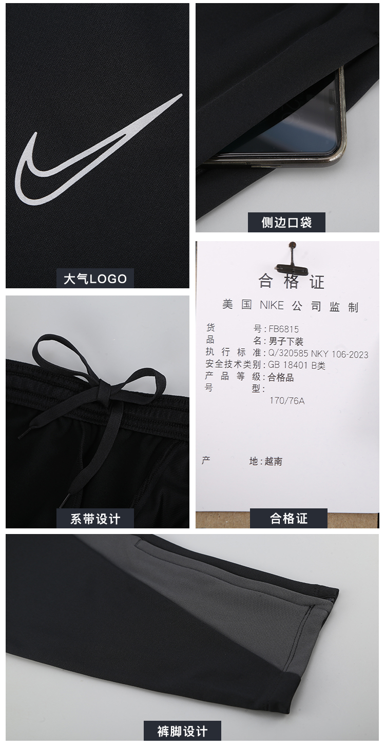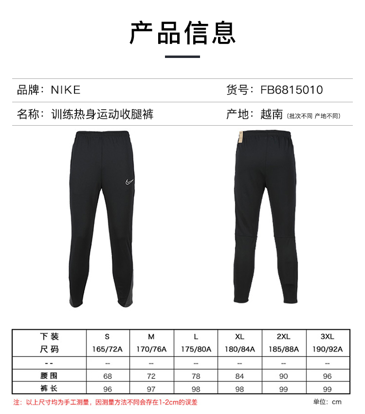 小李子NIKE耐克足球运动训练热身收腿裤成人男FB6815-010