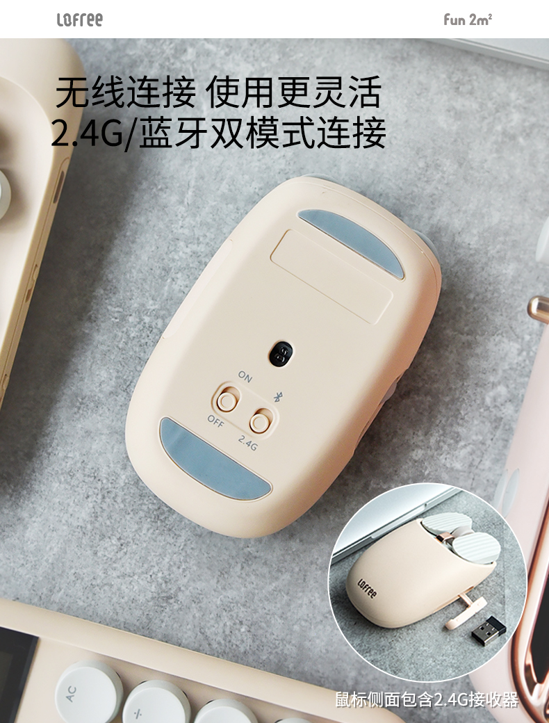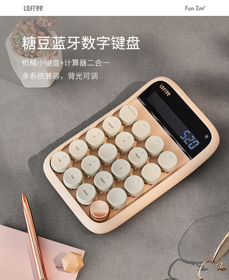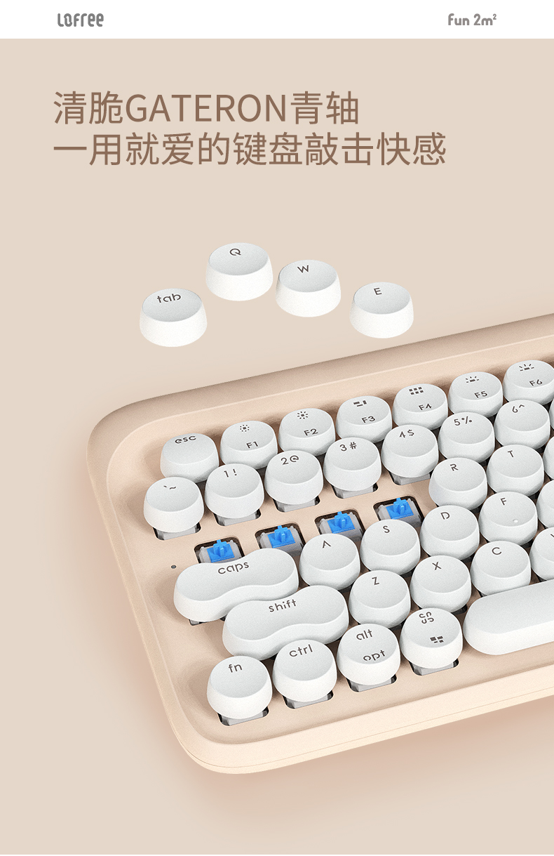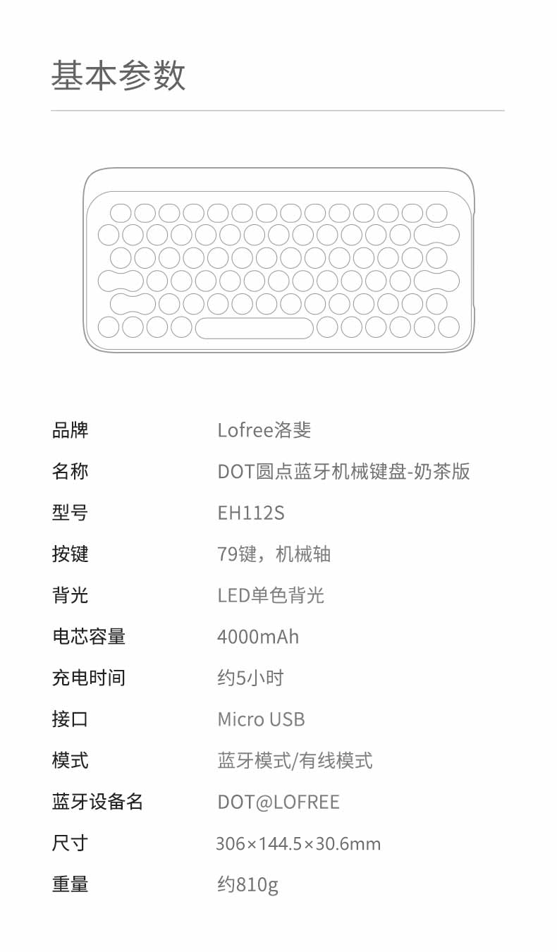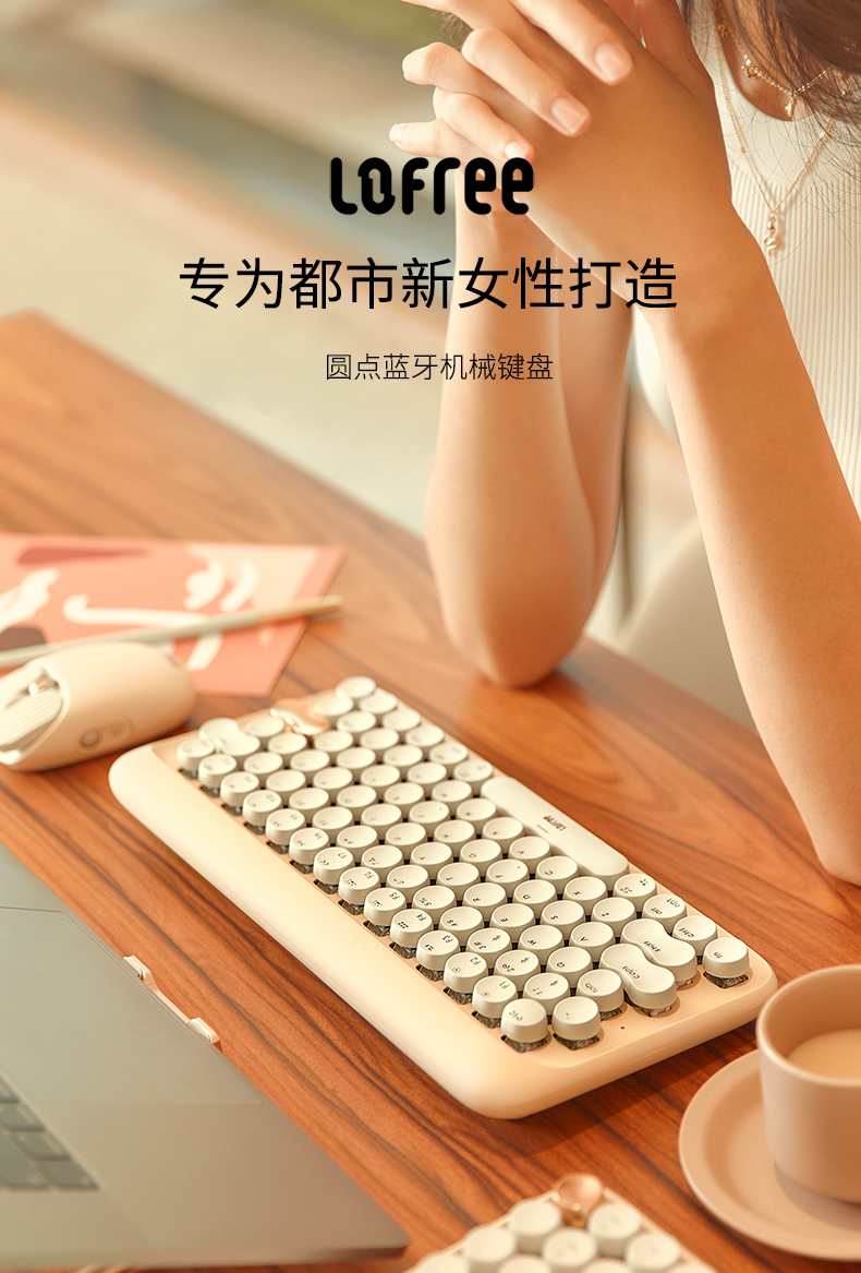 洛斐圆点蓝牙机械键盘EH112S-奶茶无线女生办公家用电竞笔记本
