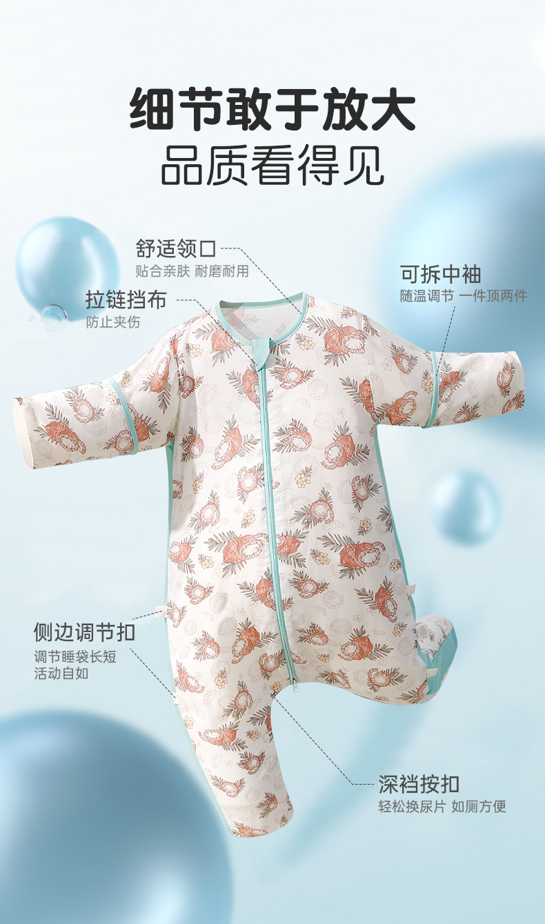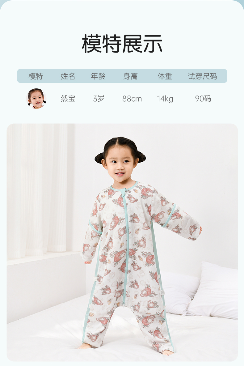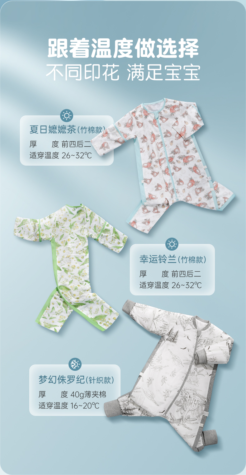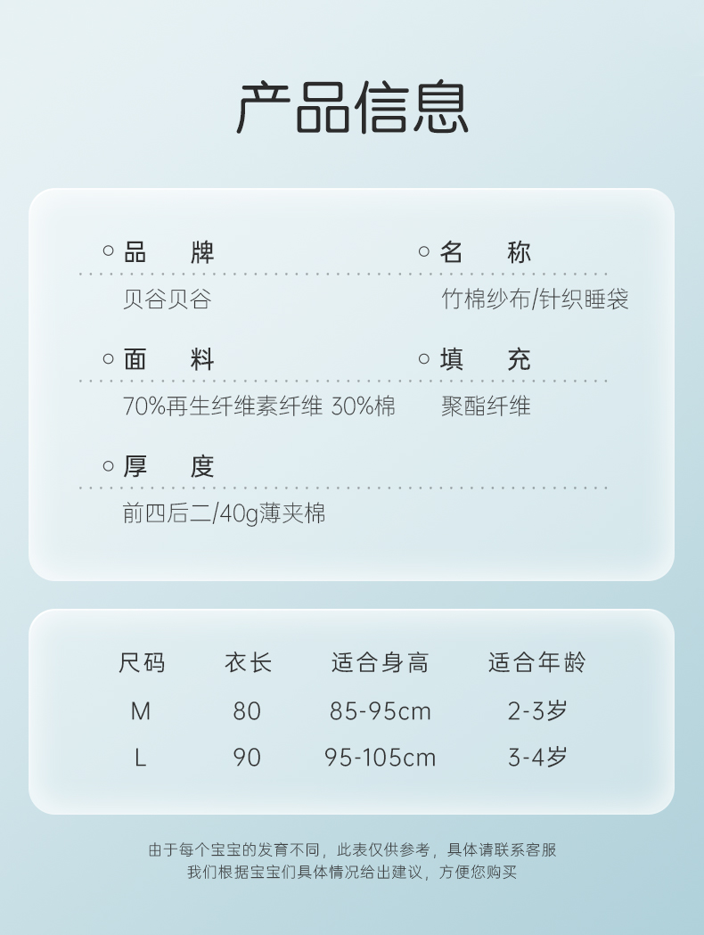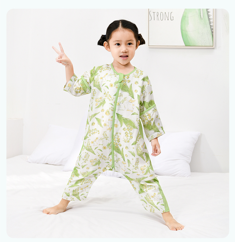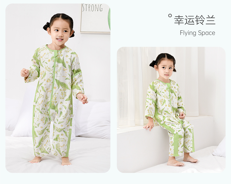 23X贝谷贝谷幸运铃兰竹棉纱布分腿睡袋草绿色L码(不夹棉)( 90cm*38cm )
