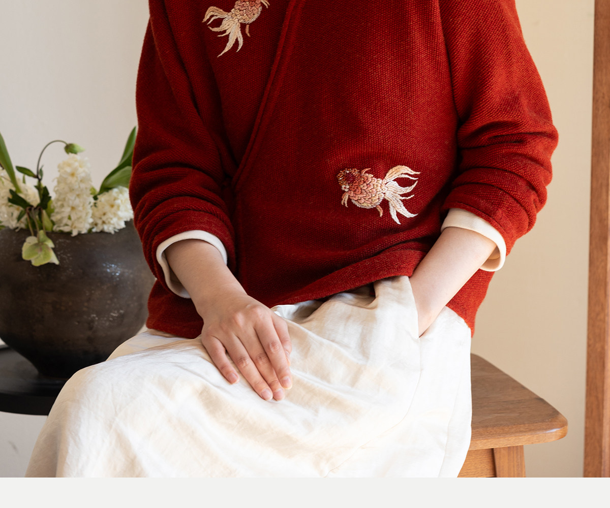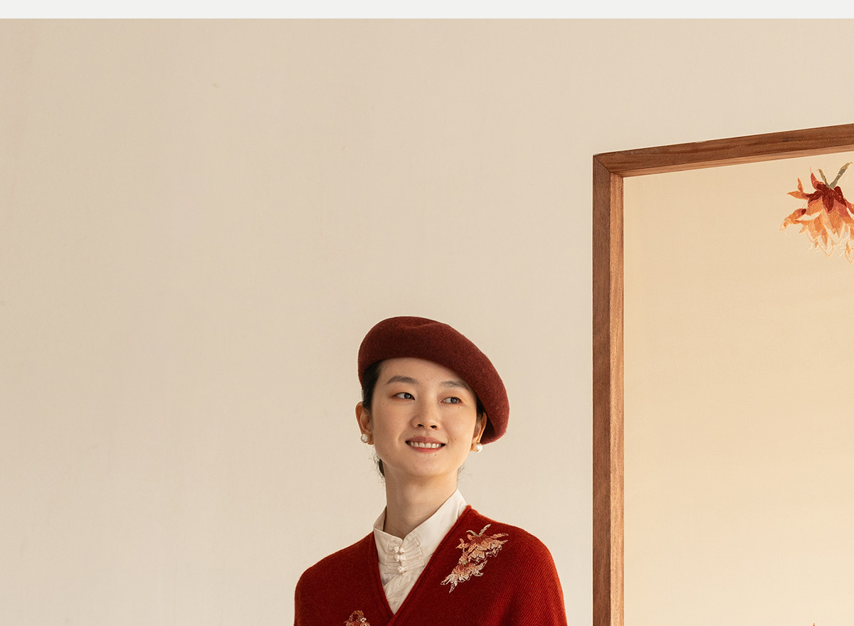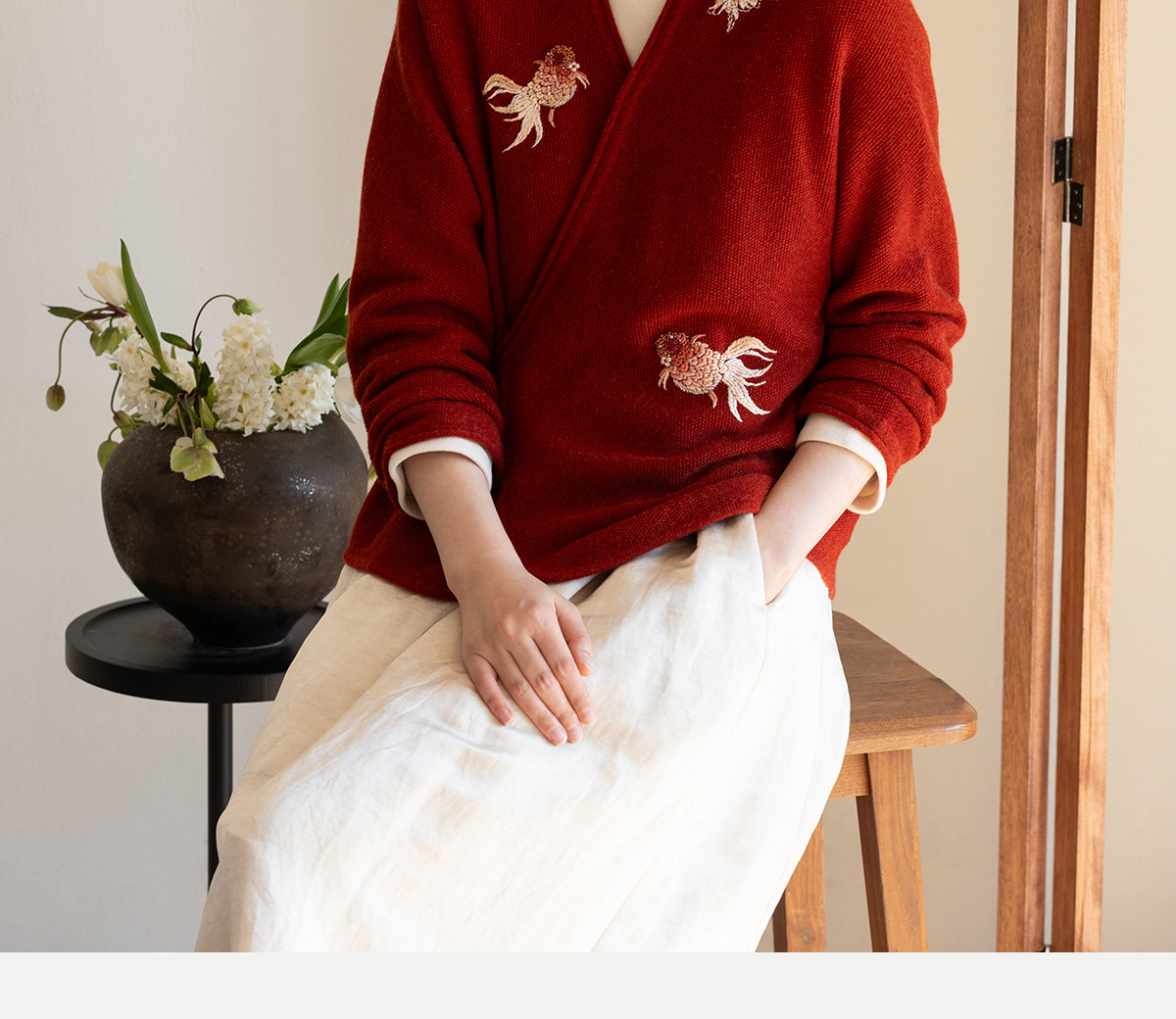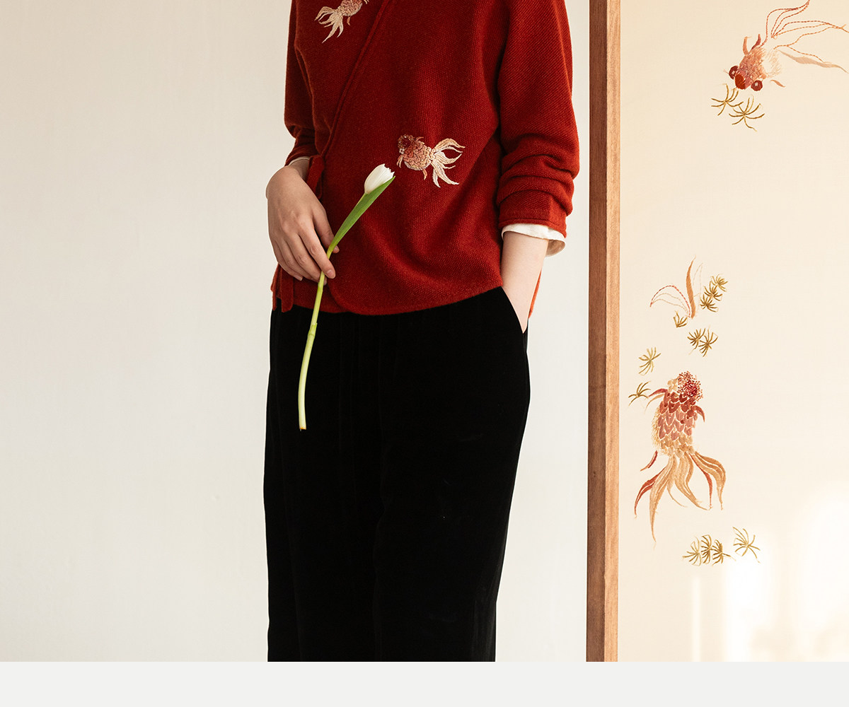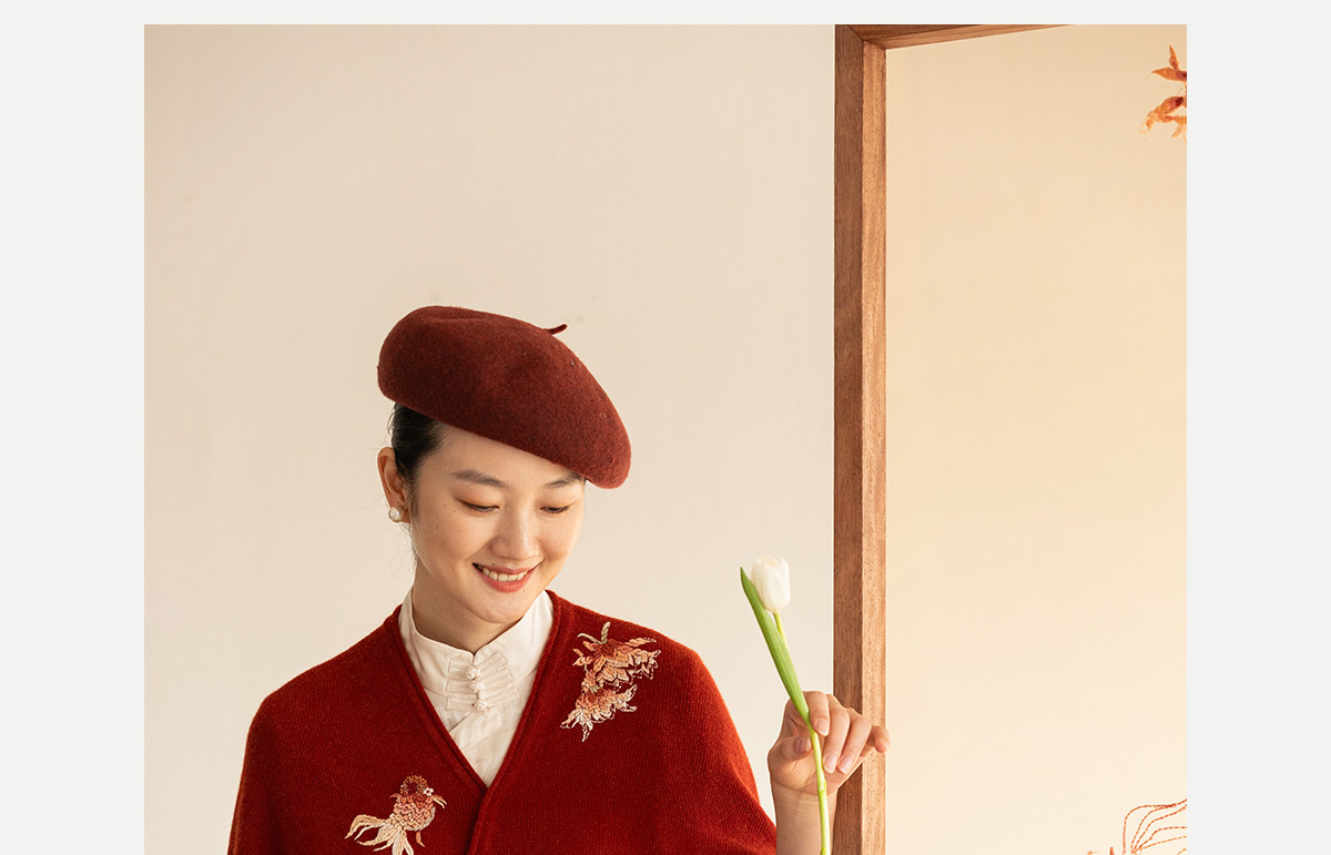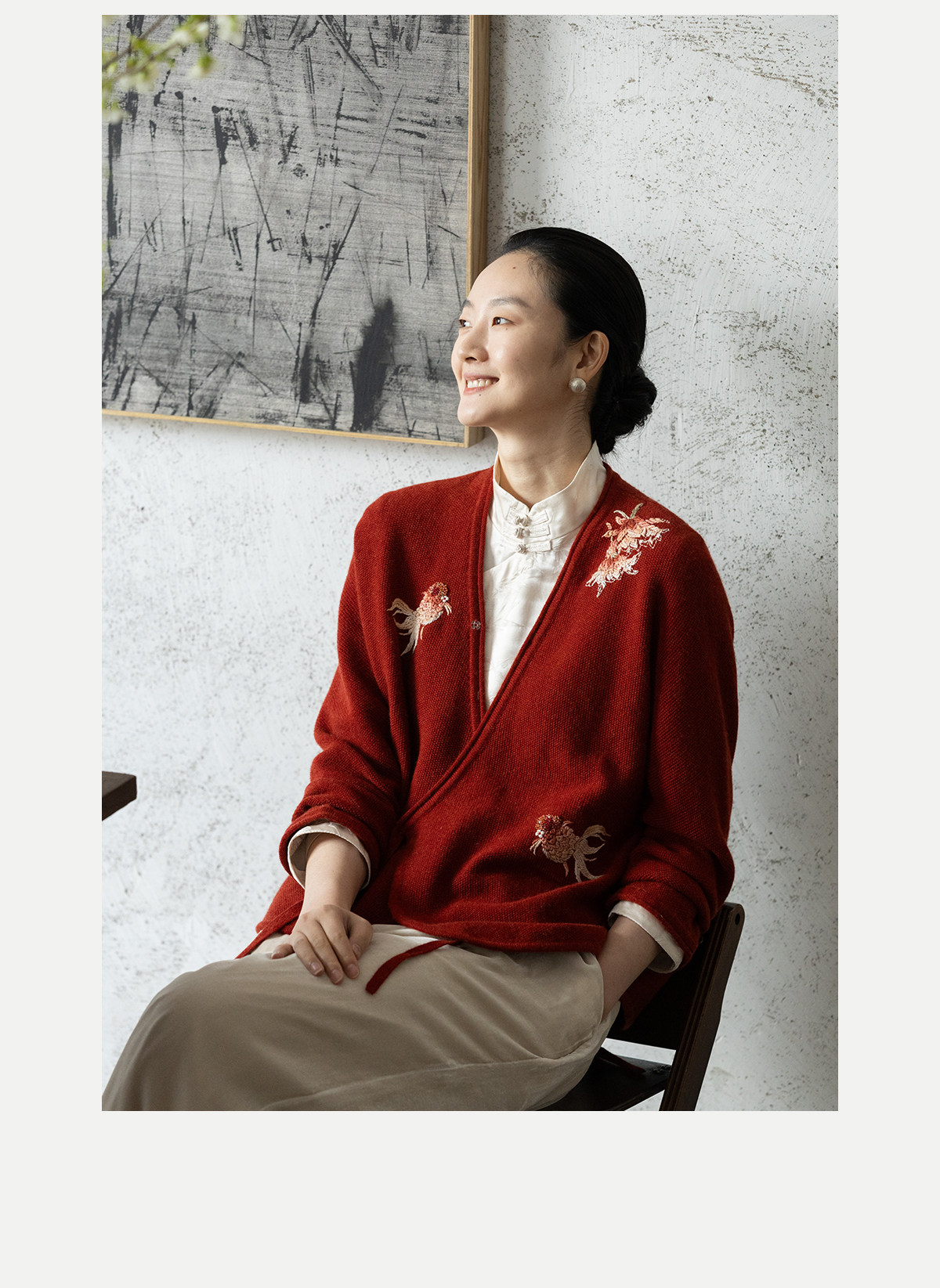 牧衣游原创 羊绒混织重工手绣毛织外套新年红色系带百搭开衫 音逸