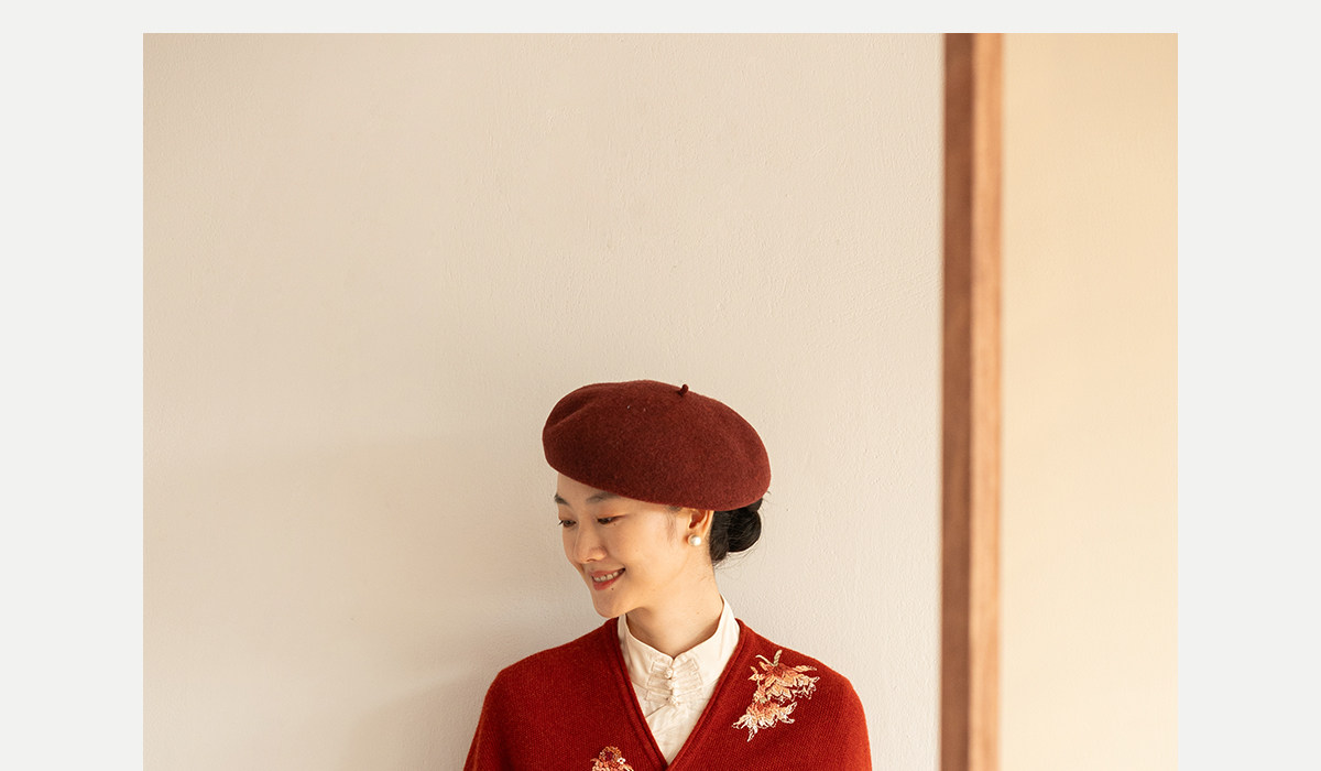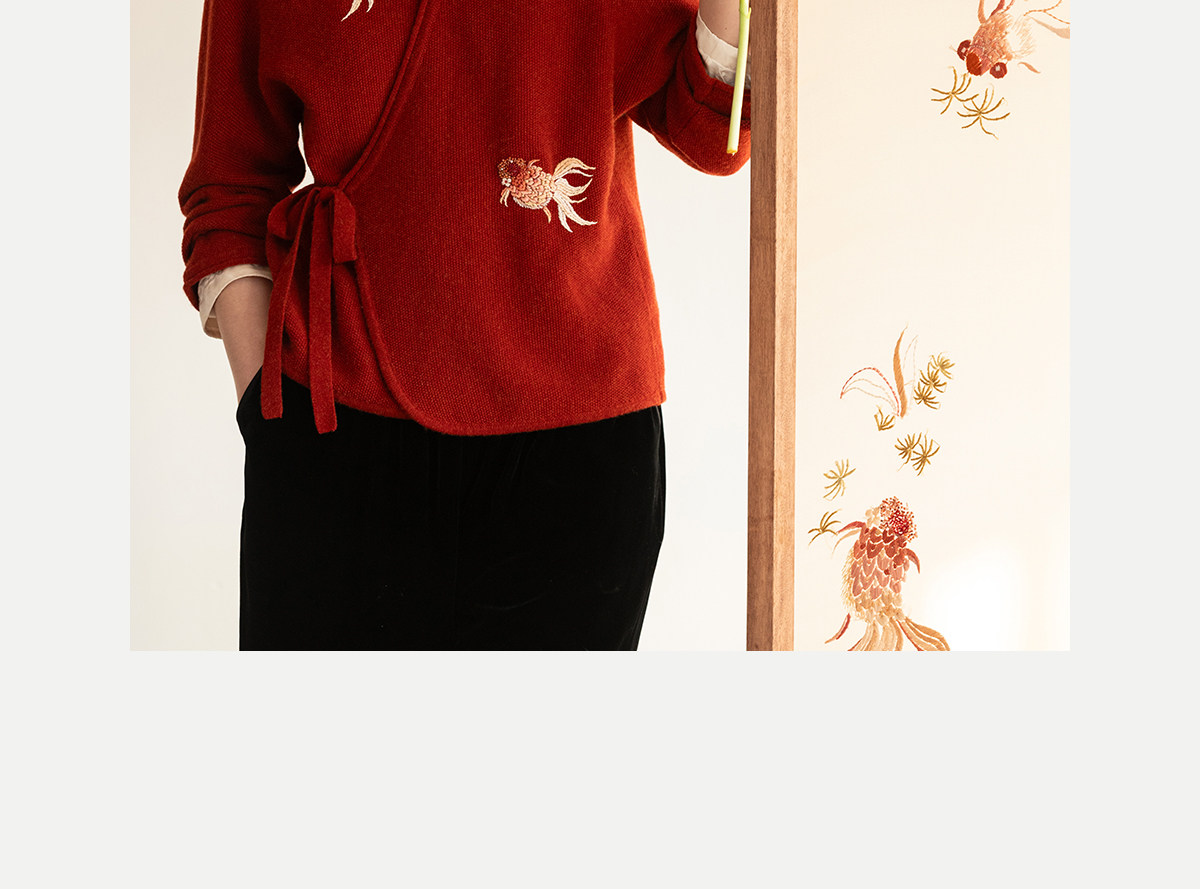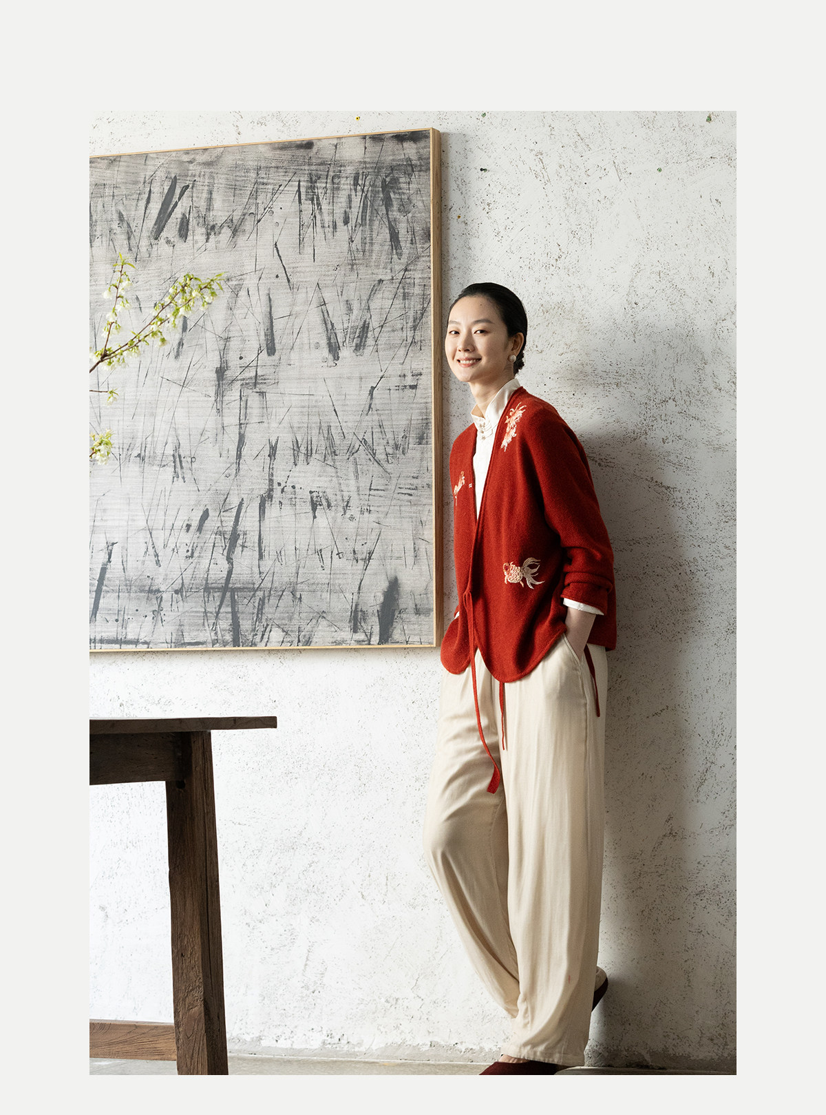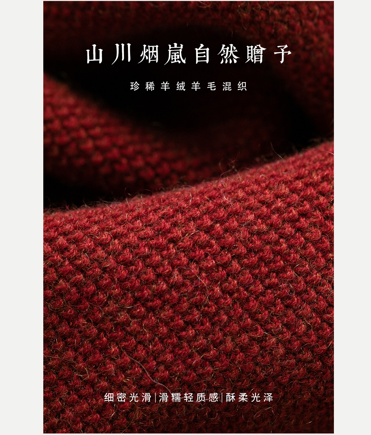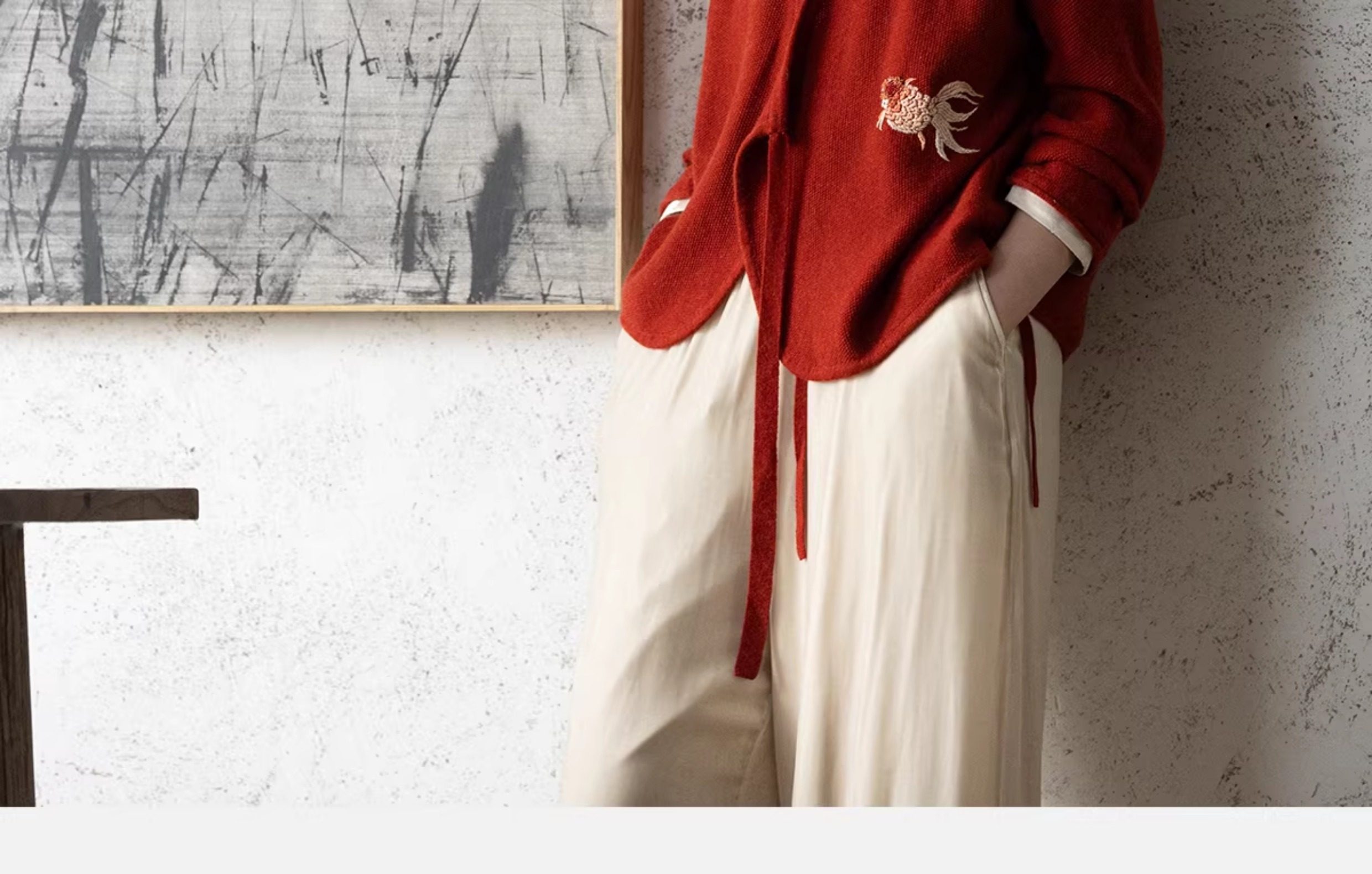 牧衣游原创 羊绒混织重工手绣毛织外套新年红色系带百搭开衫 音逸