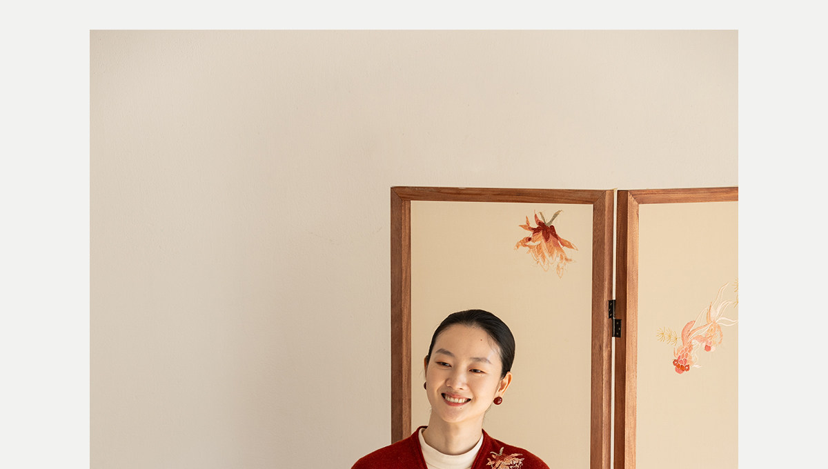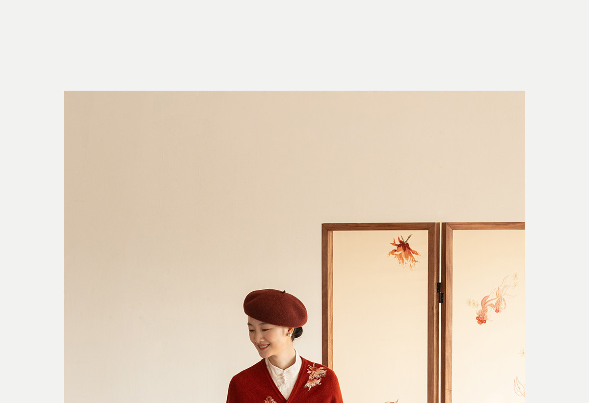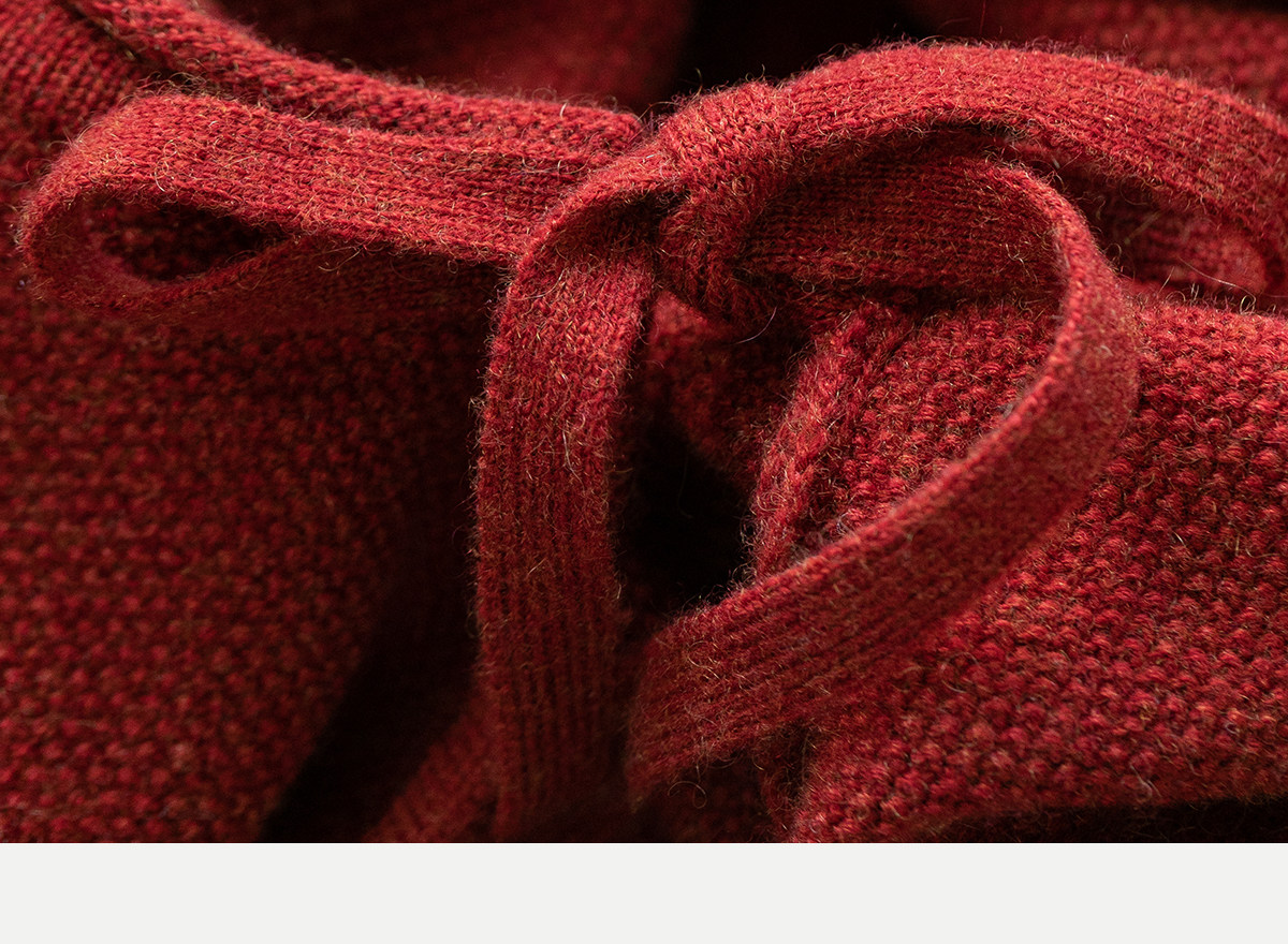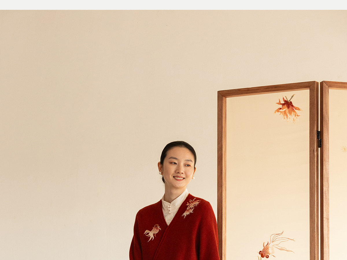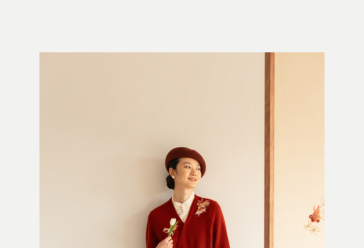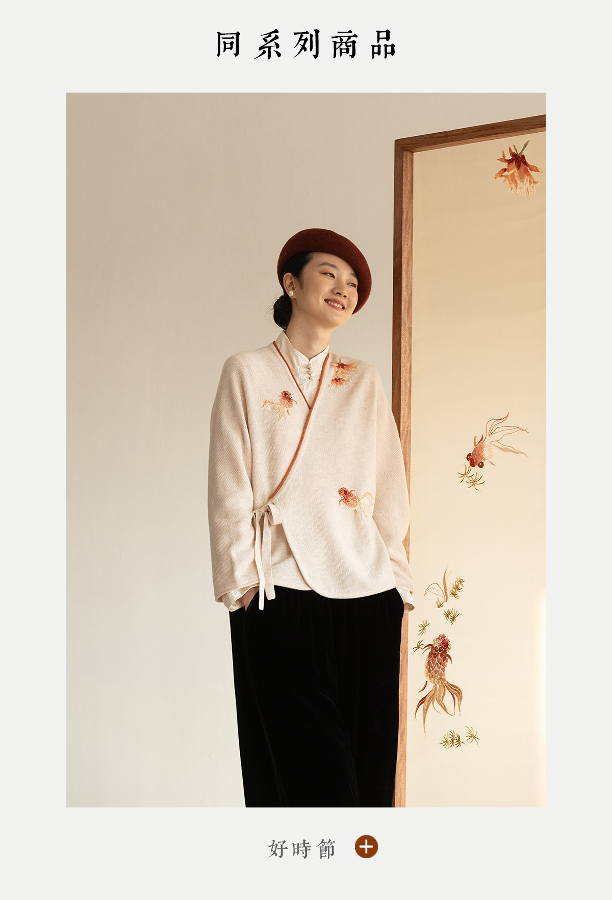 牧衣游原创 羊绒混织重工手绣毛织外套新年红色系带百搭开衫 音逸