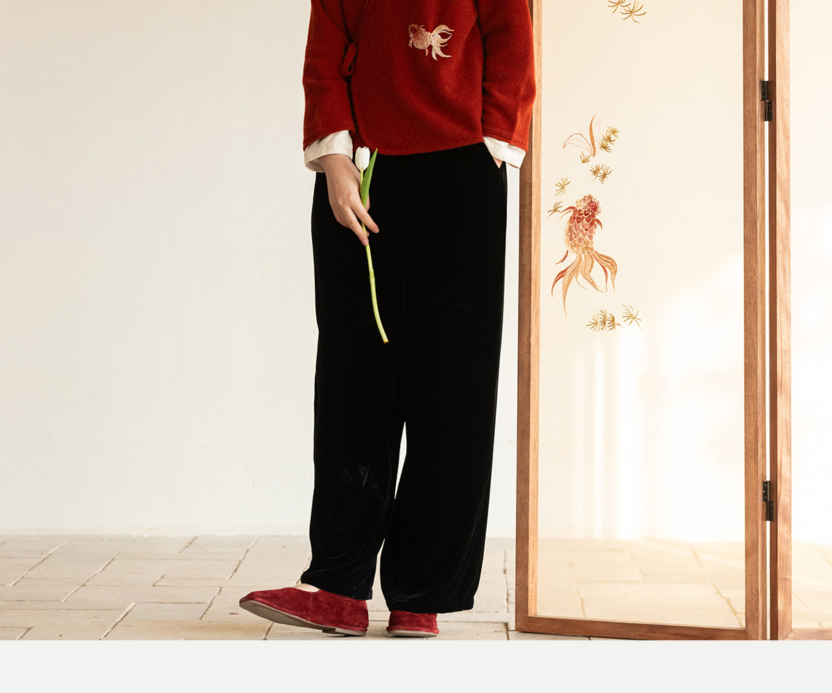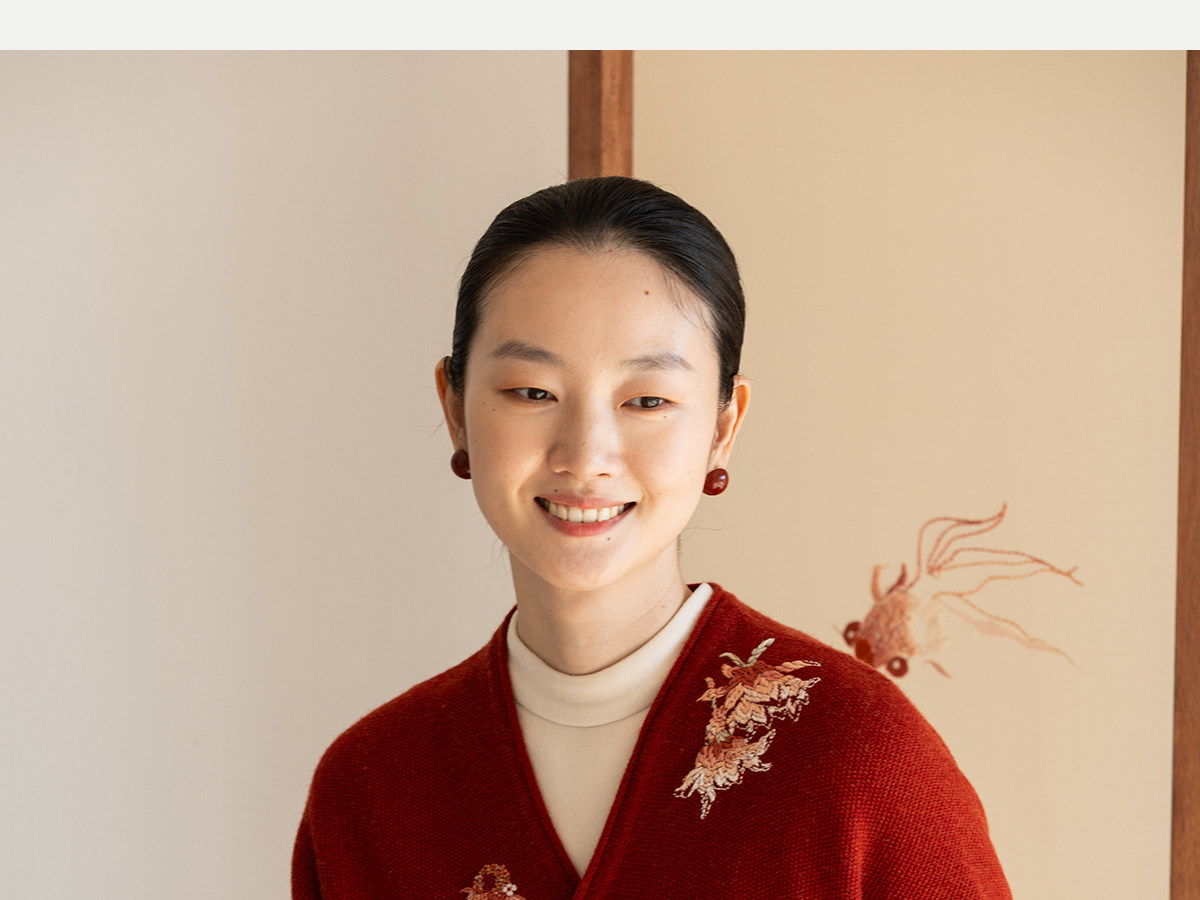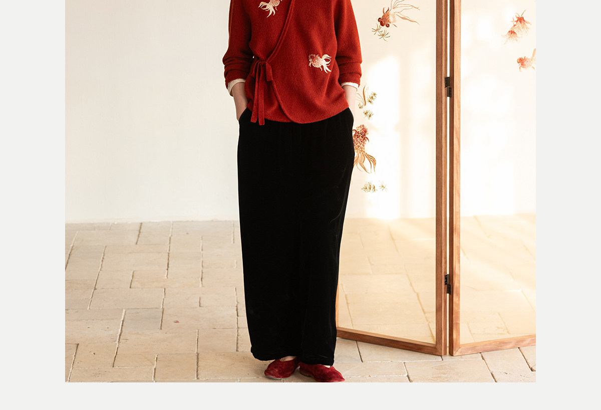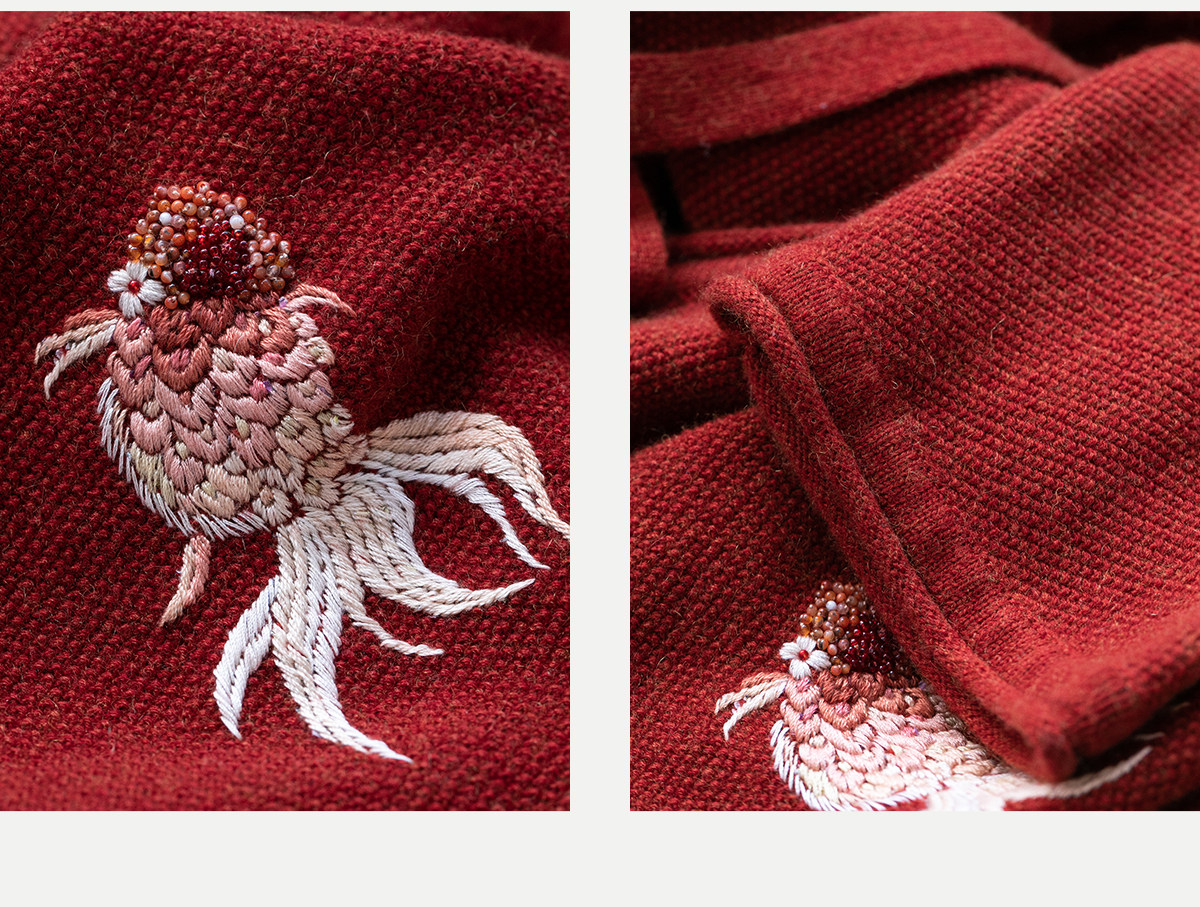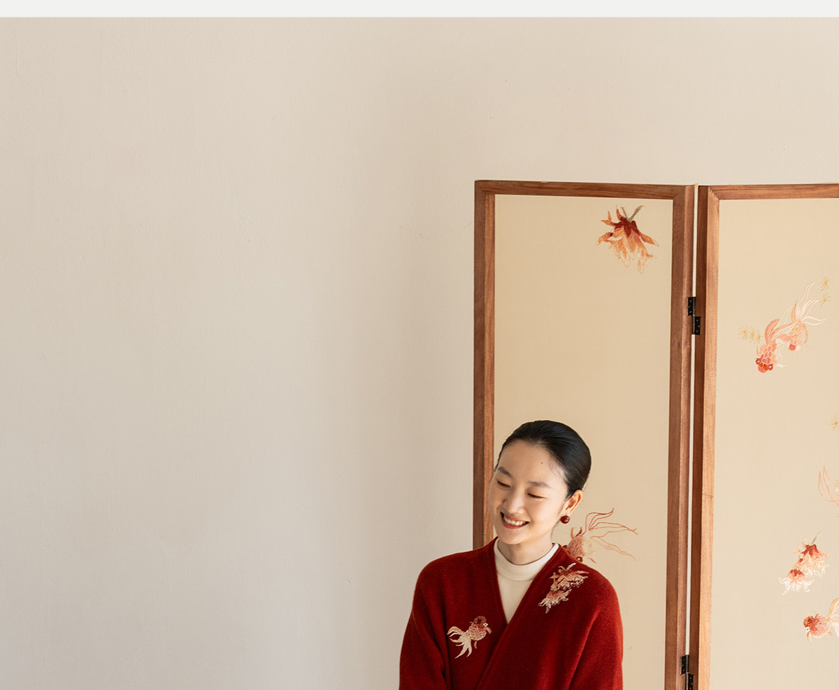 牧衣游原创 羊绒混织重工手绣毛织外套新年红色系带百搭开衫 音逸