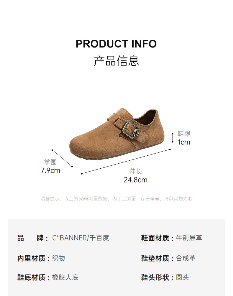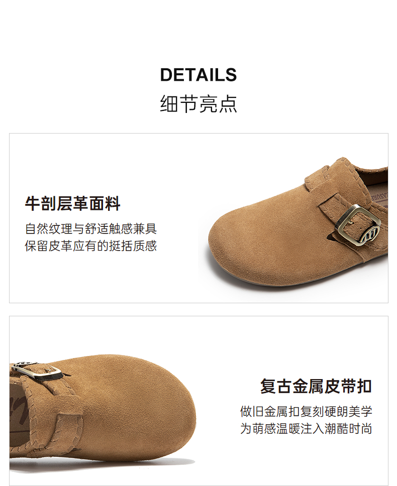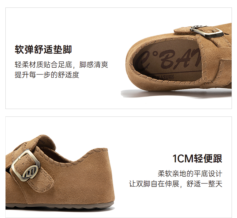 千百度全包勃肯鞋女薄底轻便平底休闲单鞋A25480807